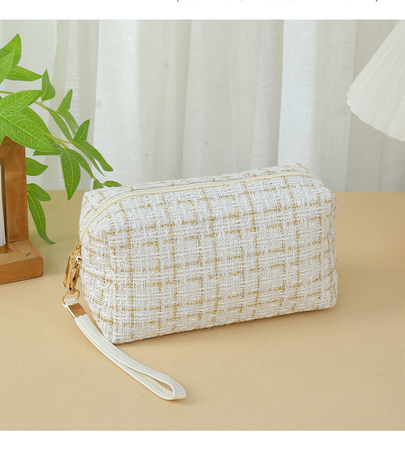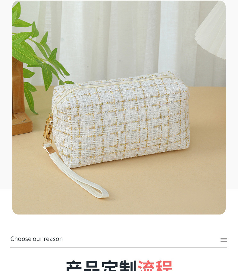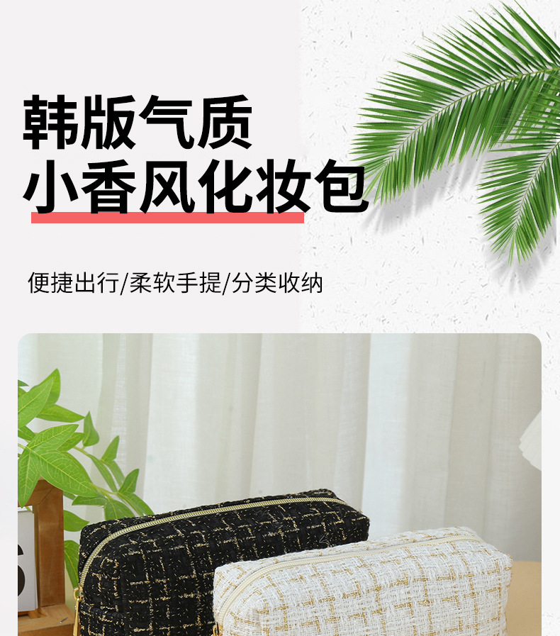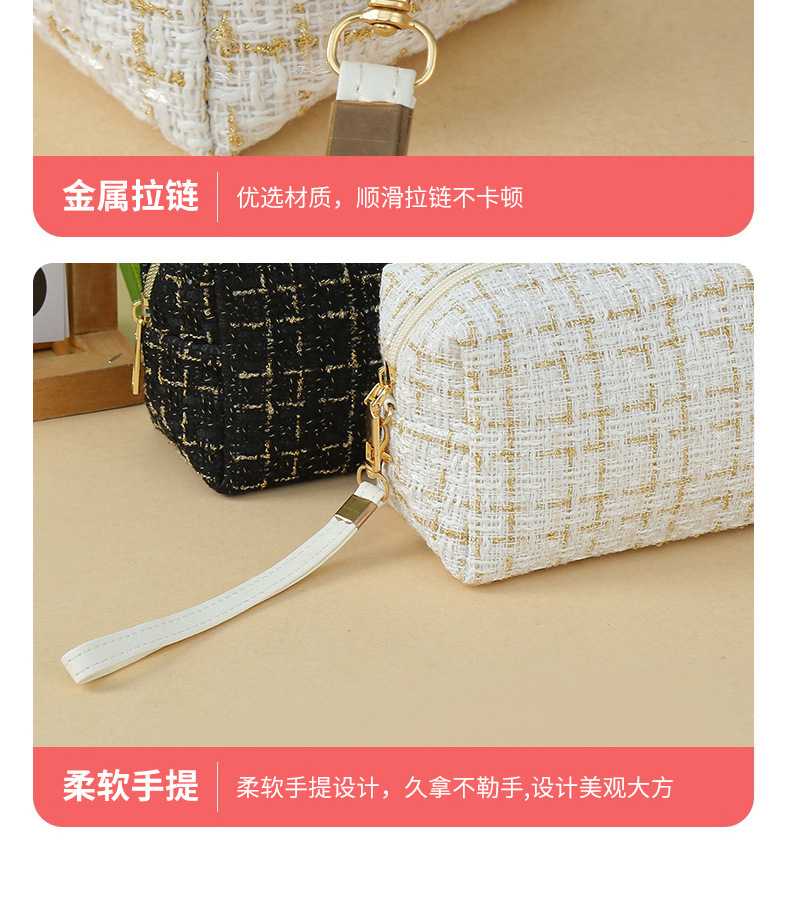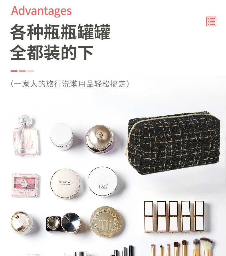 한국 스타일 우아한 샤넬 스타일 화장품 가방 휴대용 대용량 격자 무늬 클러치 백 유행 동전 지갑 세탁 가방