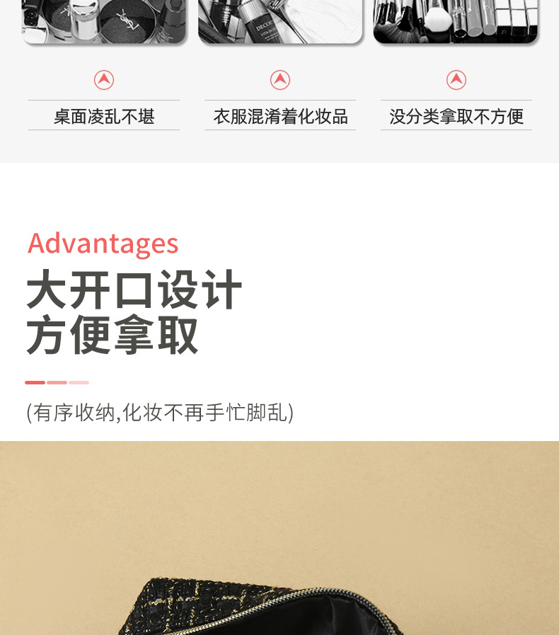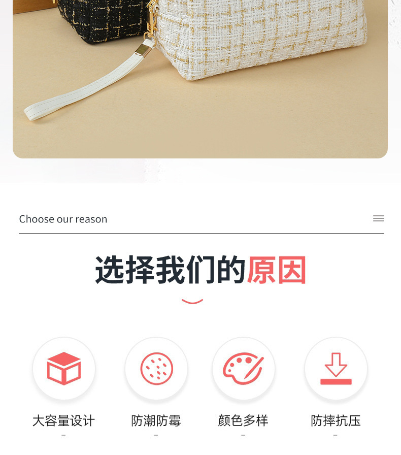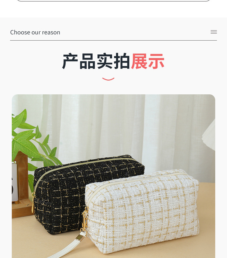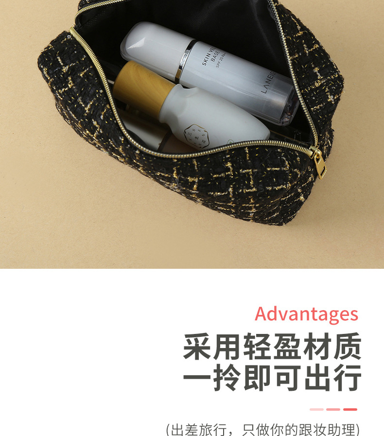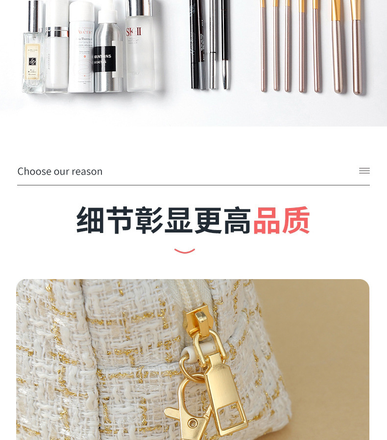 한국 스타일 우아한 샤넬 스타일 화장품 가방 휴대용 대용량 격자 무늬 클러치 백 유행 동전 지갑 세탁 가방