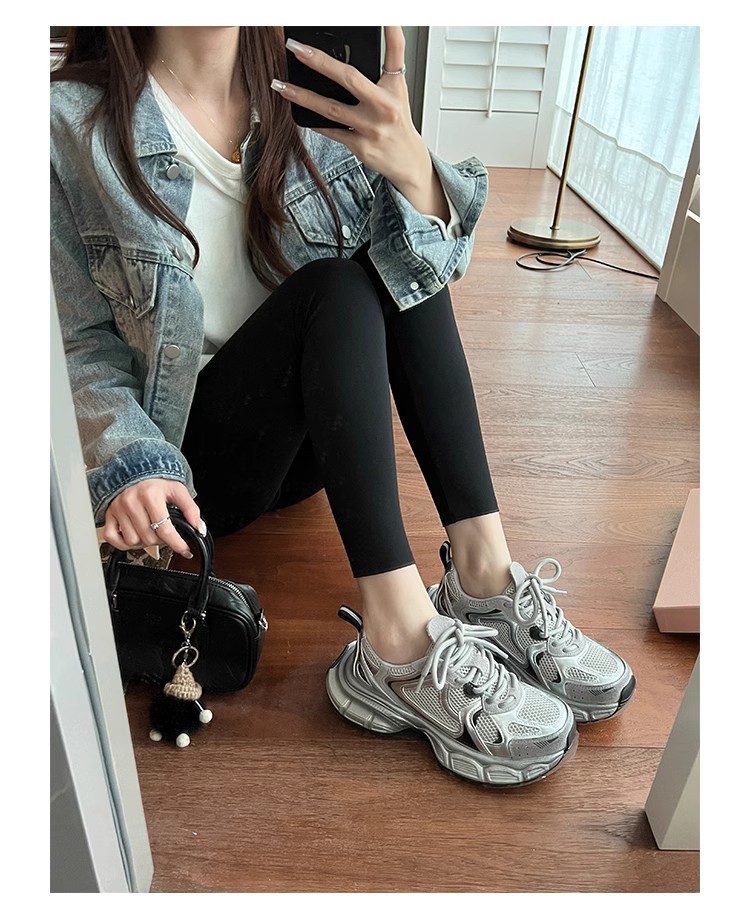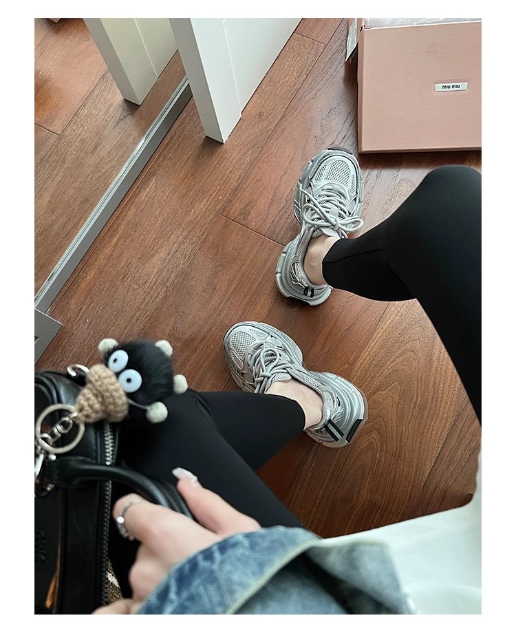드롭쉬핑 지원--실버 컬러의 러닝화 2024 여름 신상 두꺼운 밑창 키높이 캐주얼 운동화, 다용도 미끄럼 방지