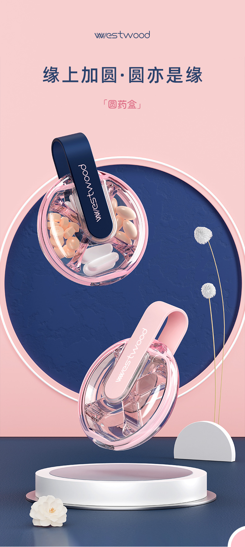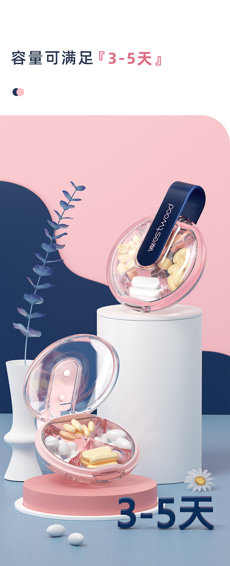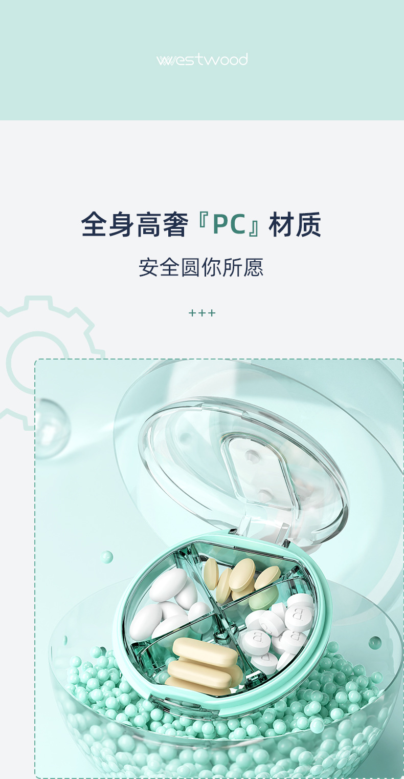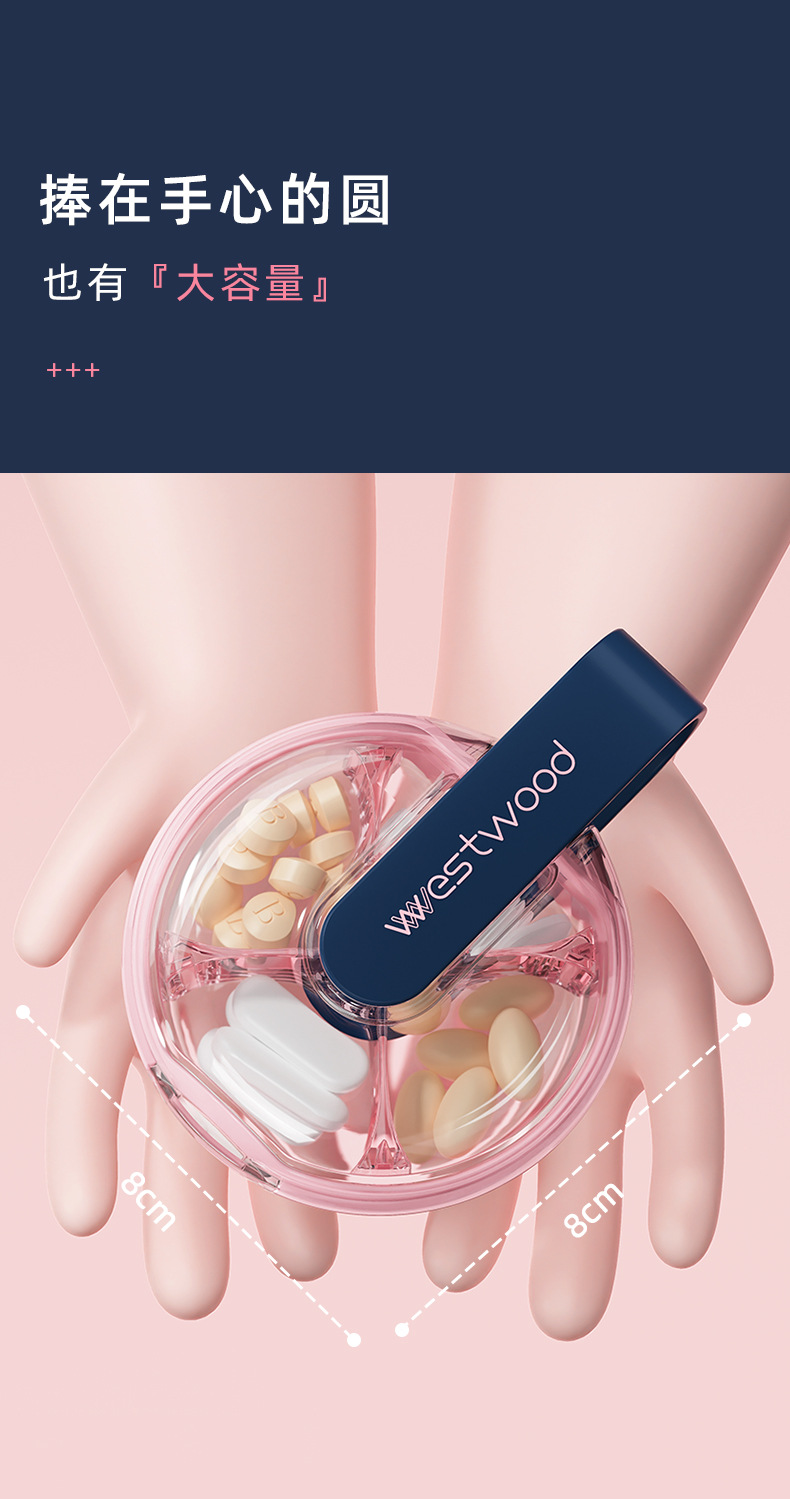 국경을 넘어 인기 있는 4칸 원형 약통, 고급스러운 고급 품질의 약 보관함, 방습 휴대용 분리형 수납함