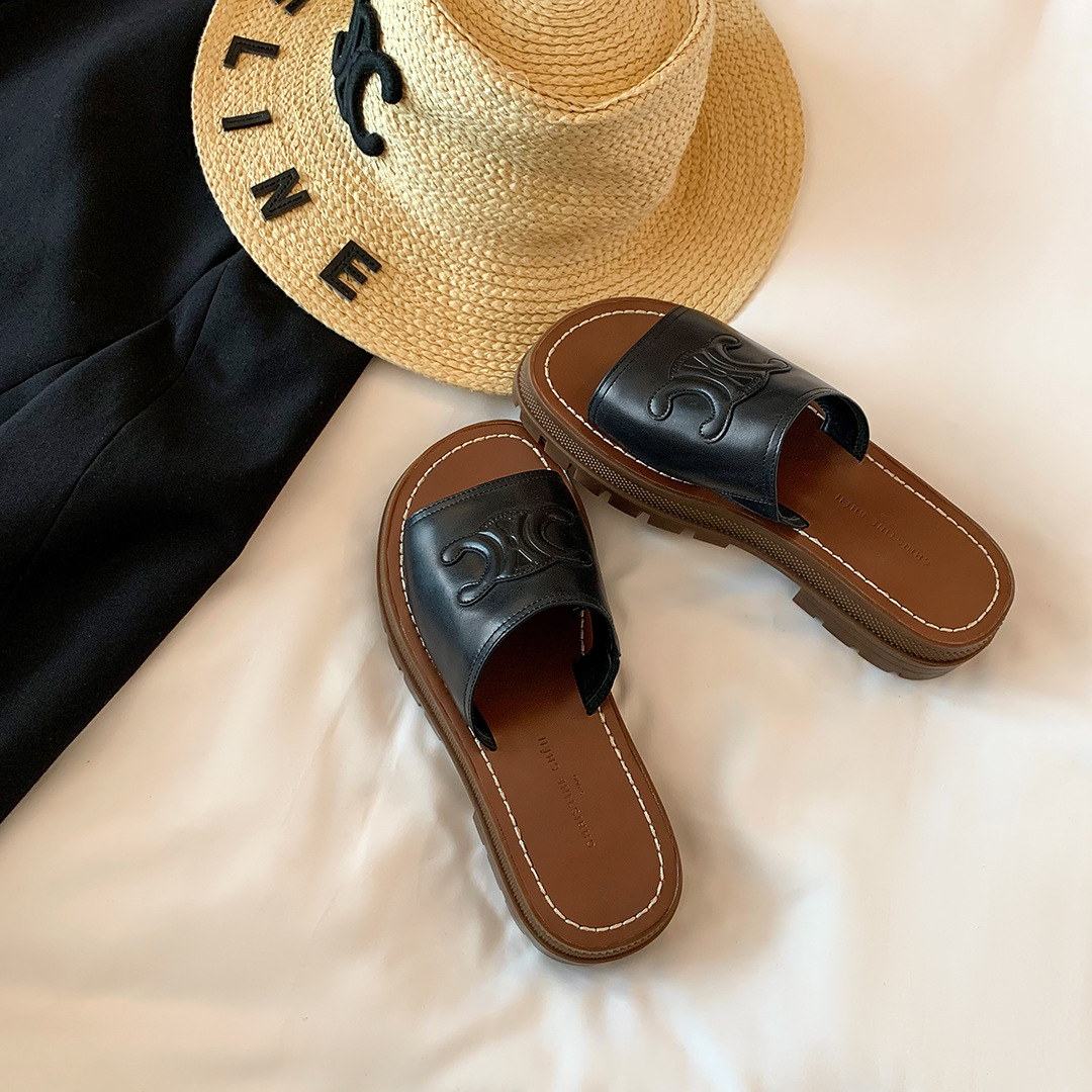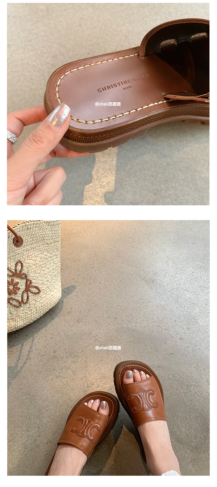 [셰이크 수 이닌] 섬 홀리데이 ~ 개선문 레트로 두꺼운 바닥 슬리퍼 여름 여성용 샌들
