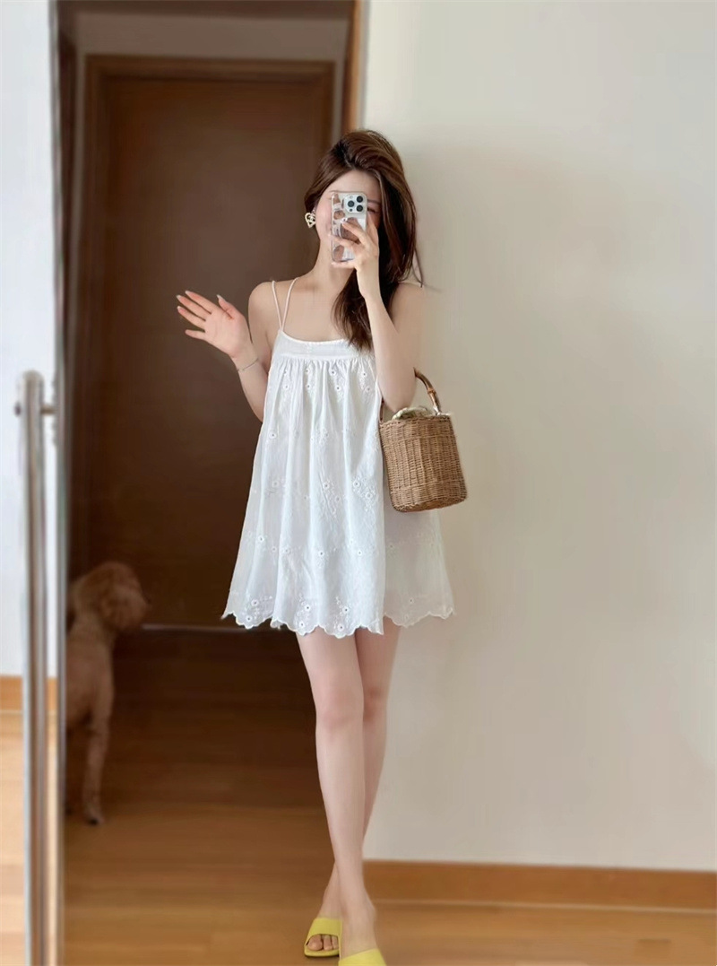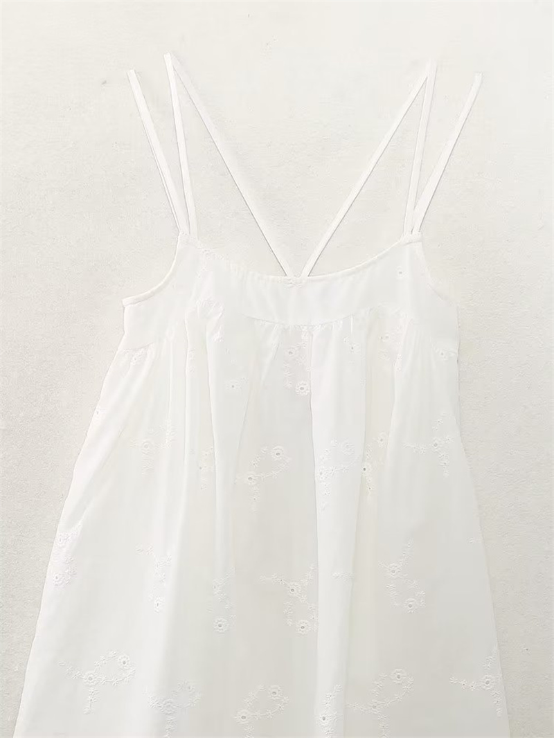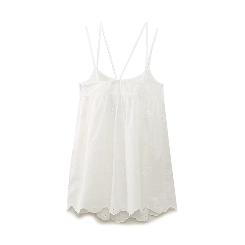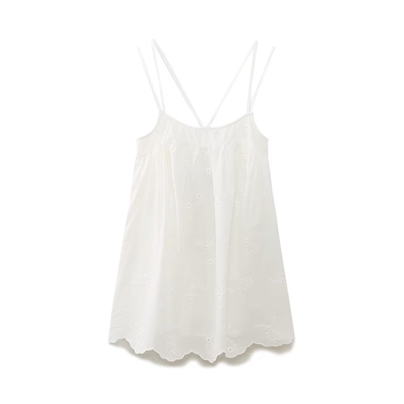 유럽과 미국 여성의 여름 순수 바람 백리스 속이 빈 자수가 짧은 원피스 중단하는 해외 무역 국경 도매 공급