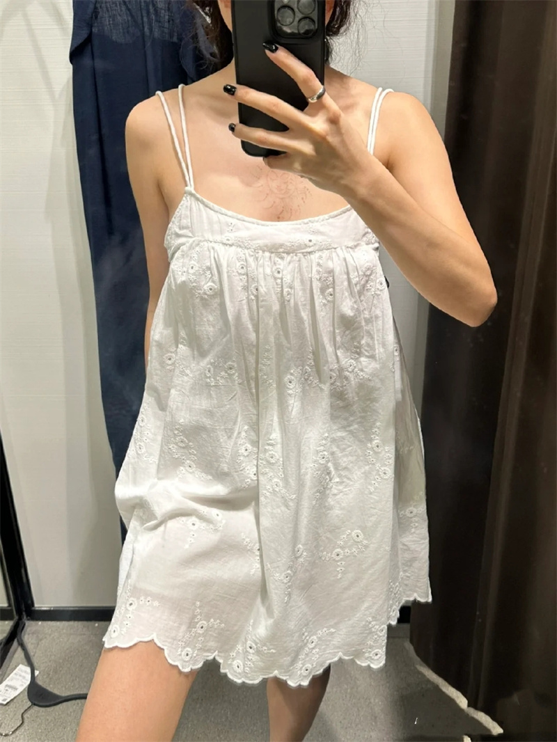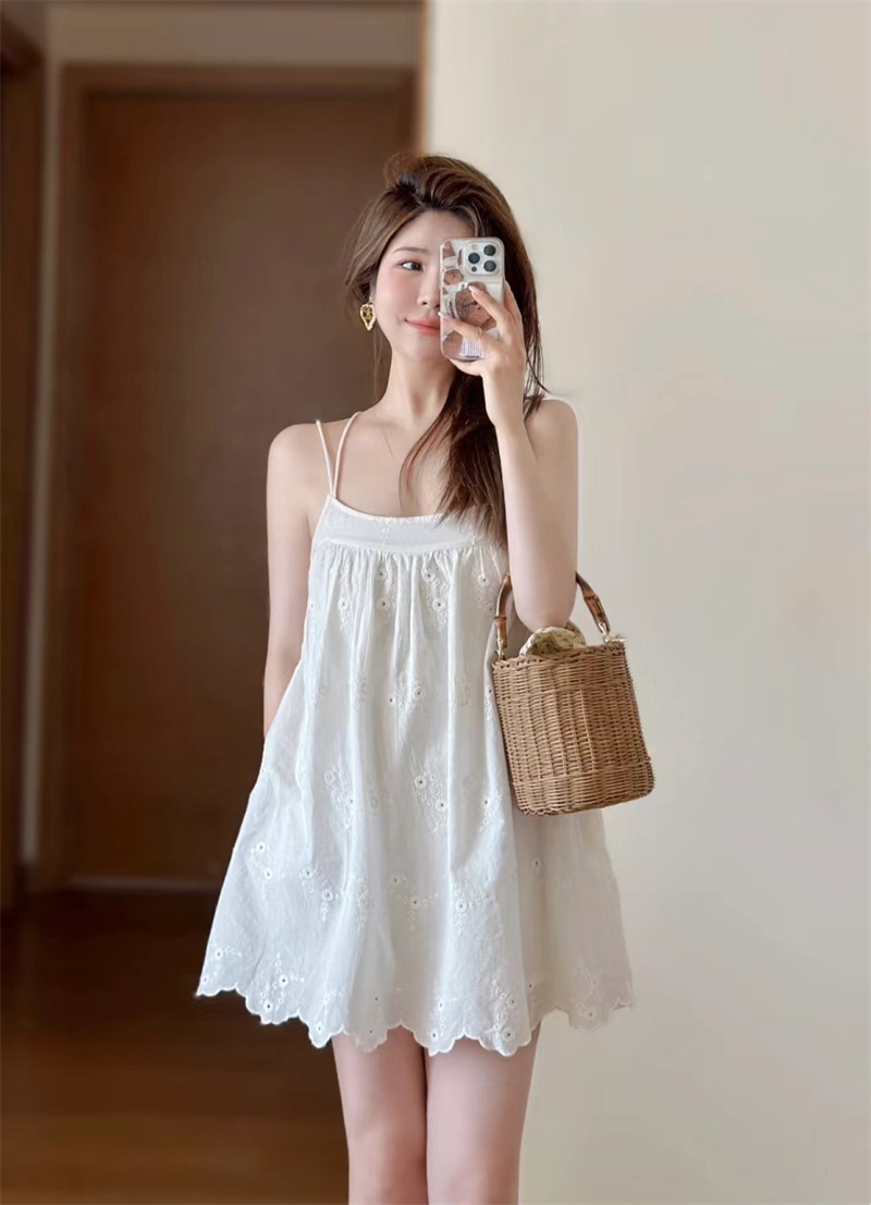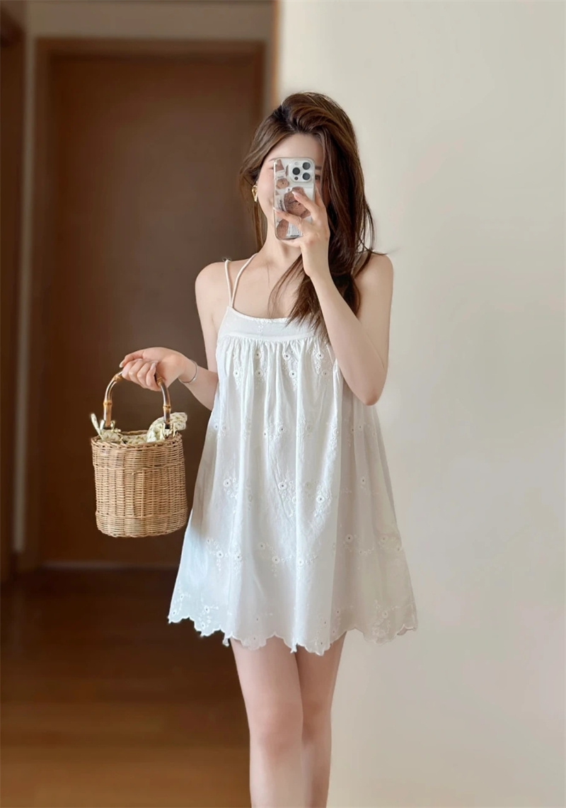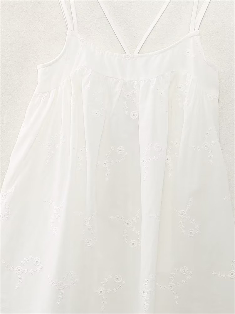 유럽과 미국 여성의 여름 순수 바람 백리스 속이 빈 자수가 짧은 원피스 중단하는 해외 무역 국경 도매 공급