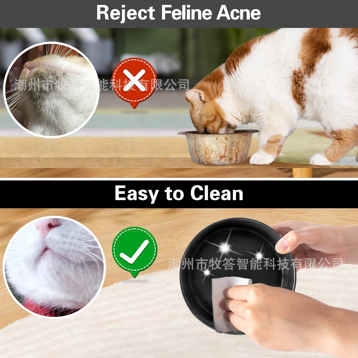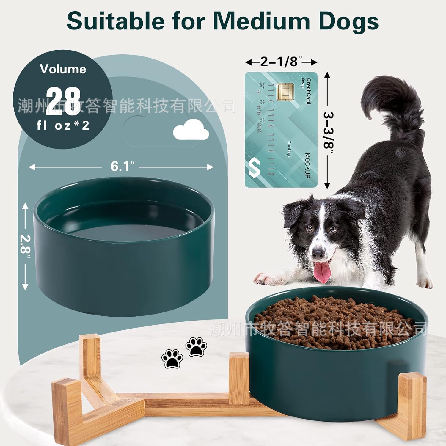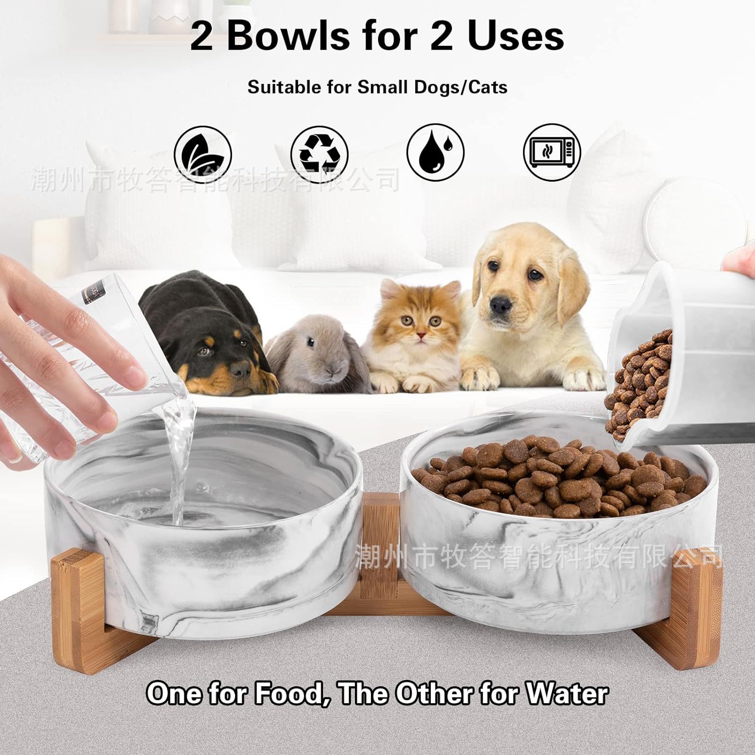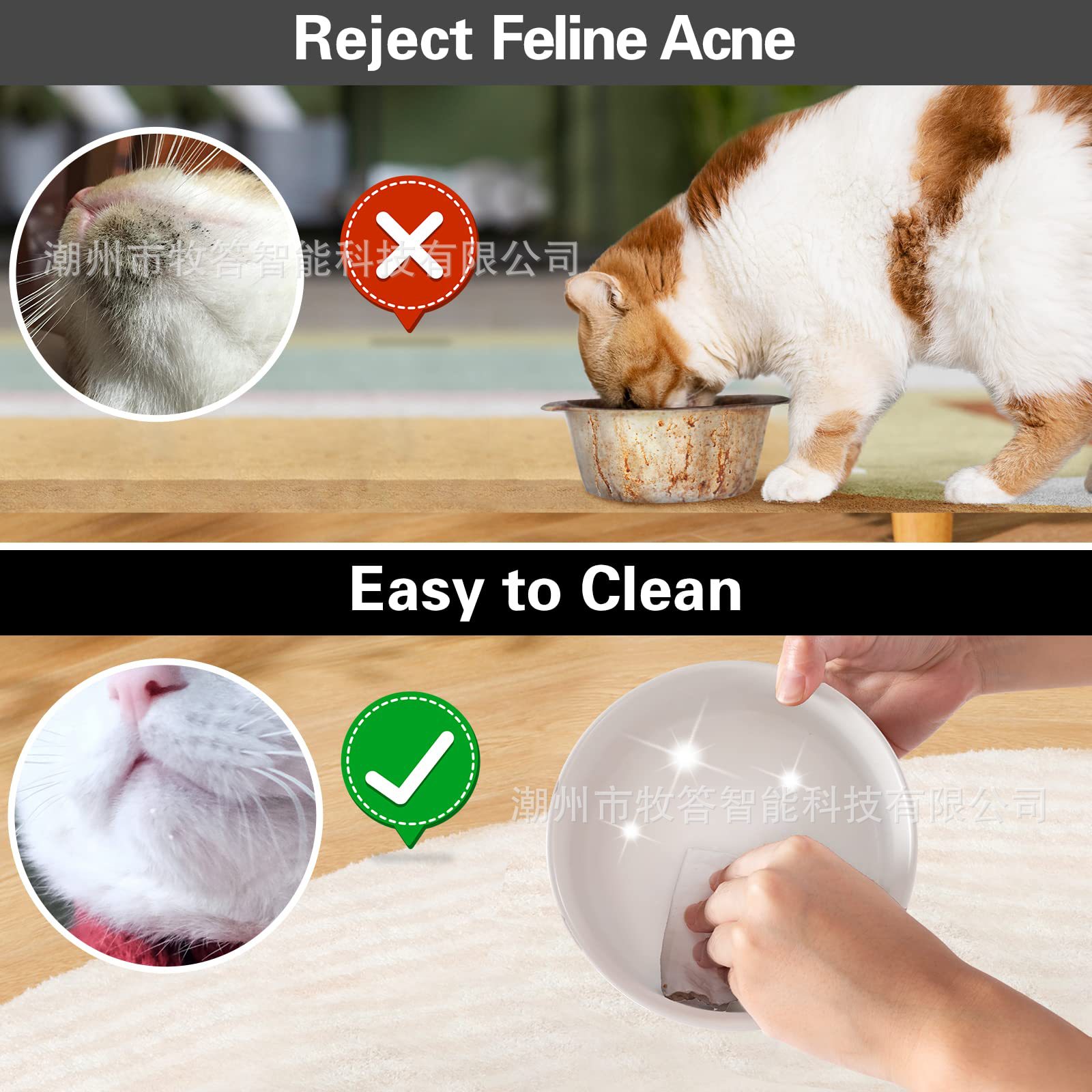 【尺寸和容量】 - 每个宠物碗的容量约为 13.5 液体盎司(1-3/4 杯),尺寸为 5.1 英寸直径 x 2 英寸高,适合中小型猫和小型犬。
