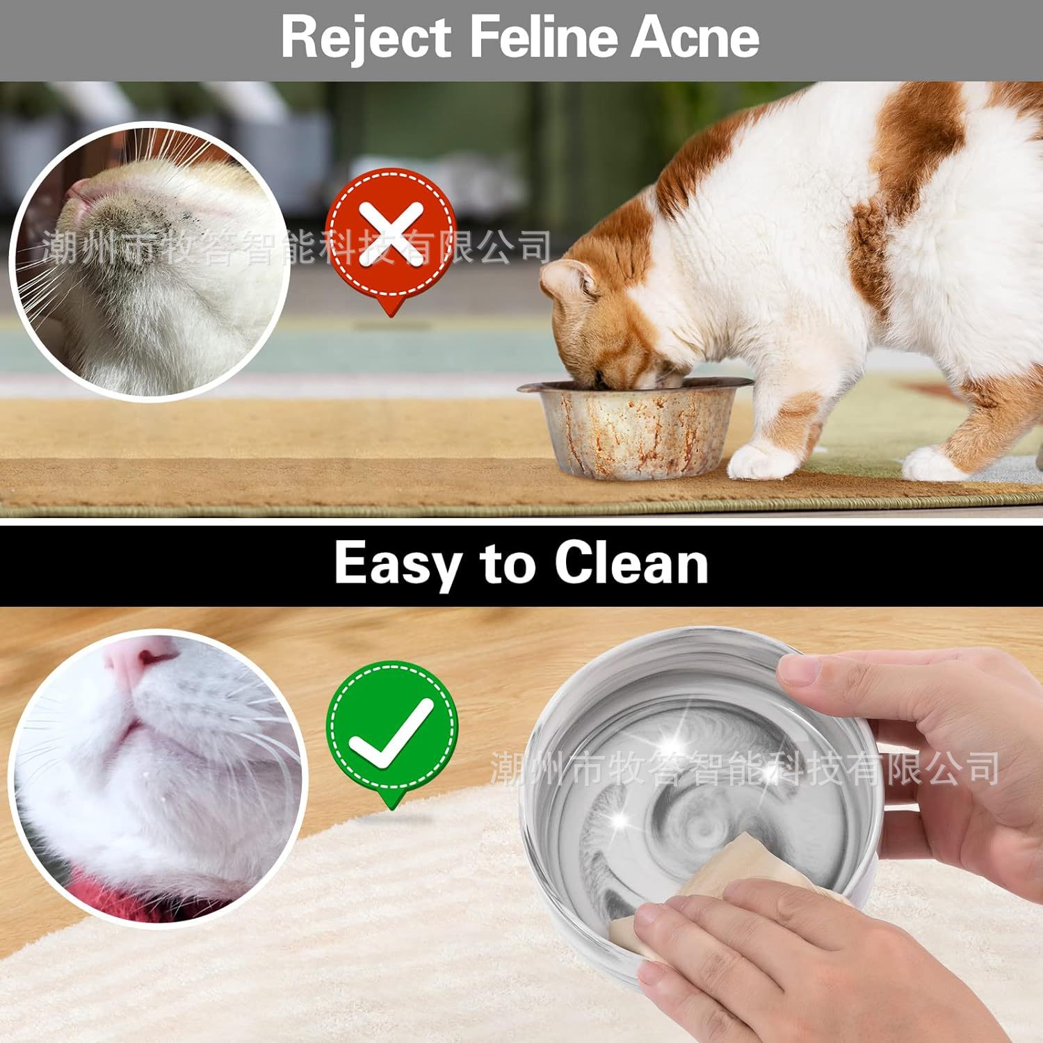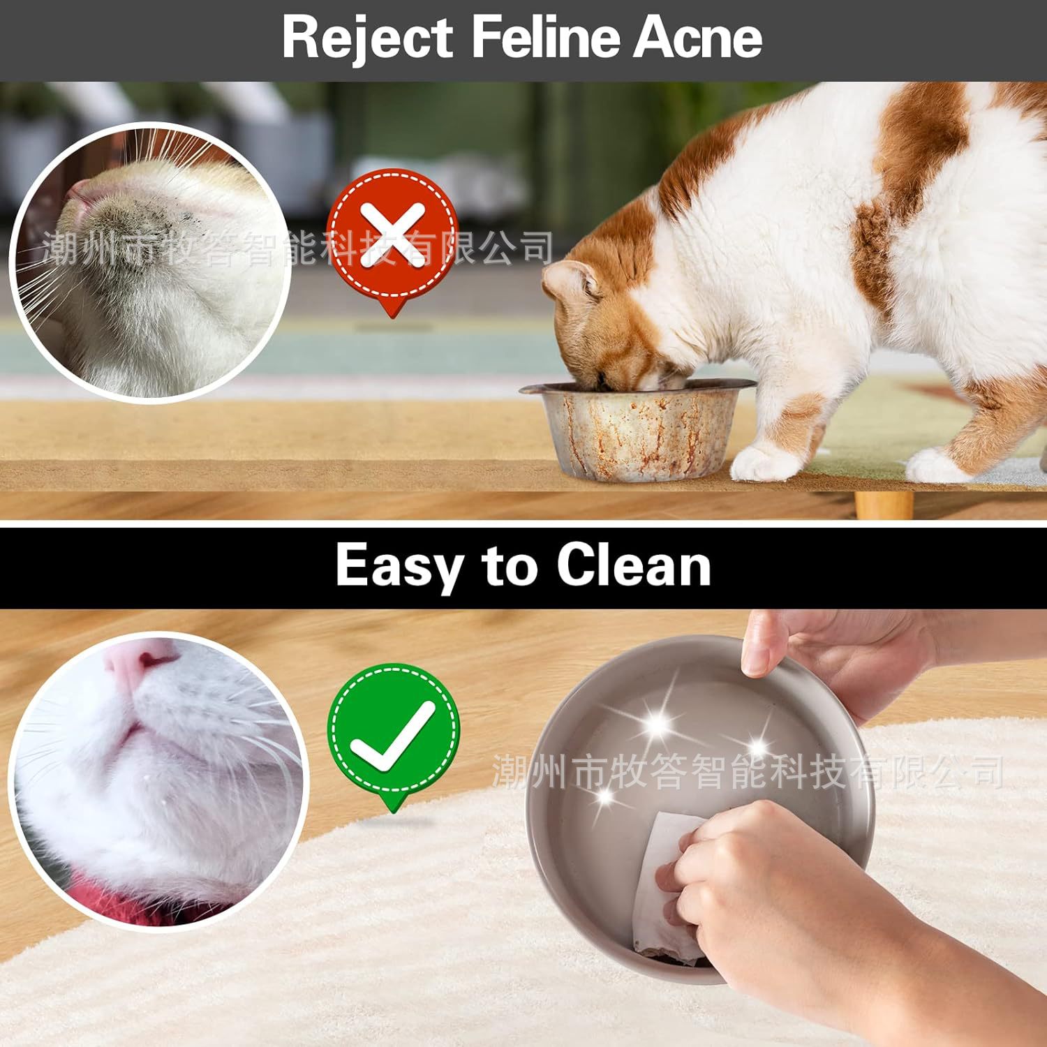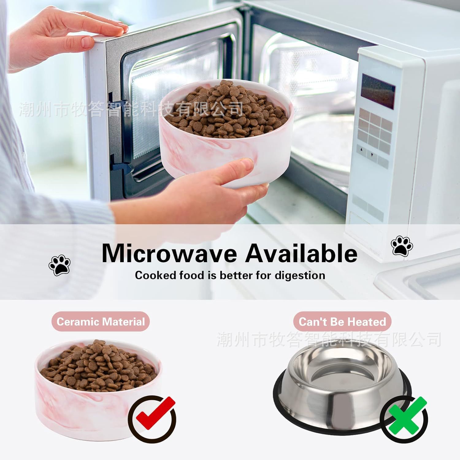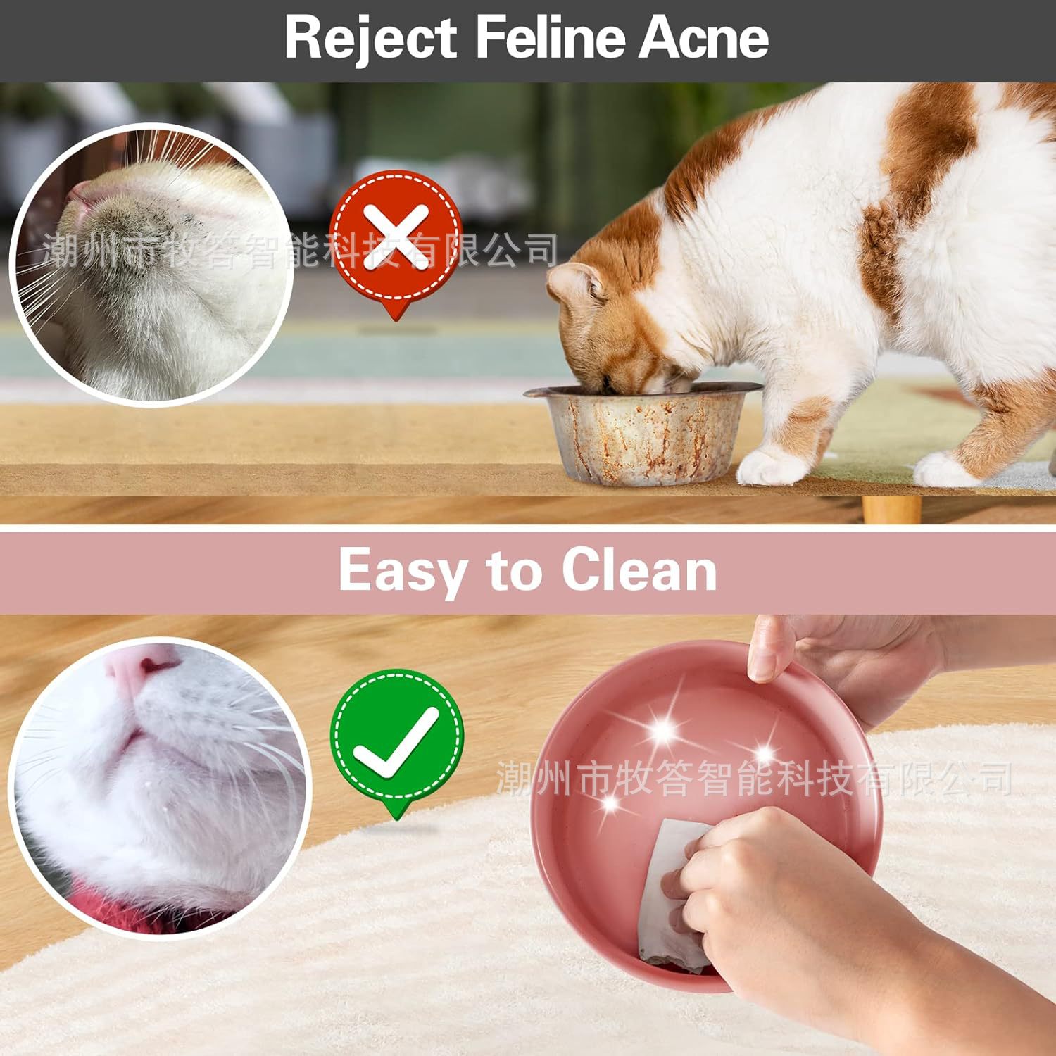 【尺寸和容量】 - 每个宠物碗的容量约为 13.5 液体盎司(1-3/4 杯),尺寸为 5.1 英寸直径 x 2 英寸高,适合中小型猫和小型犬。