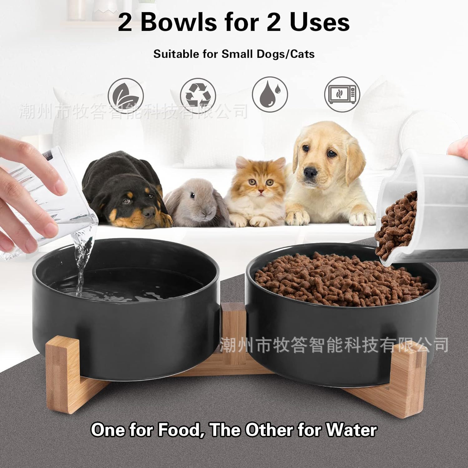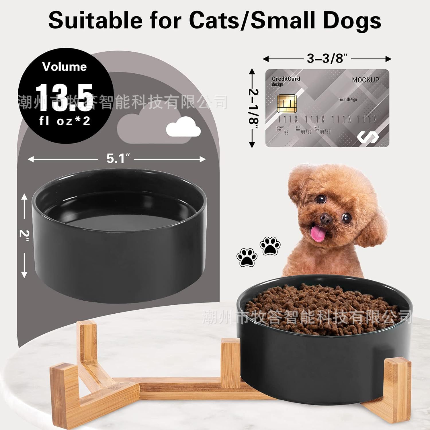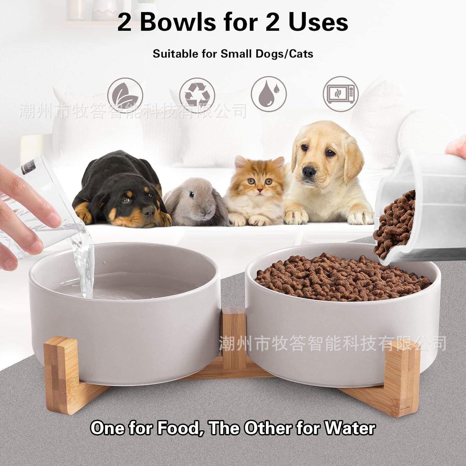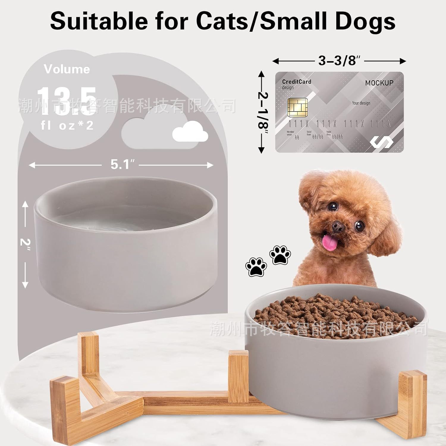 【您将得到】 - 木质支架*1,小号宠物碗*2。