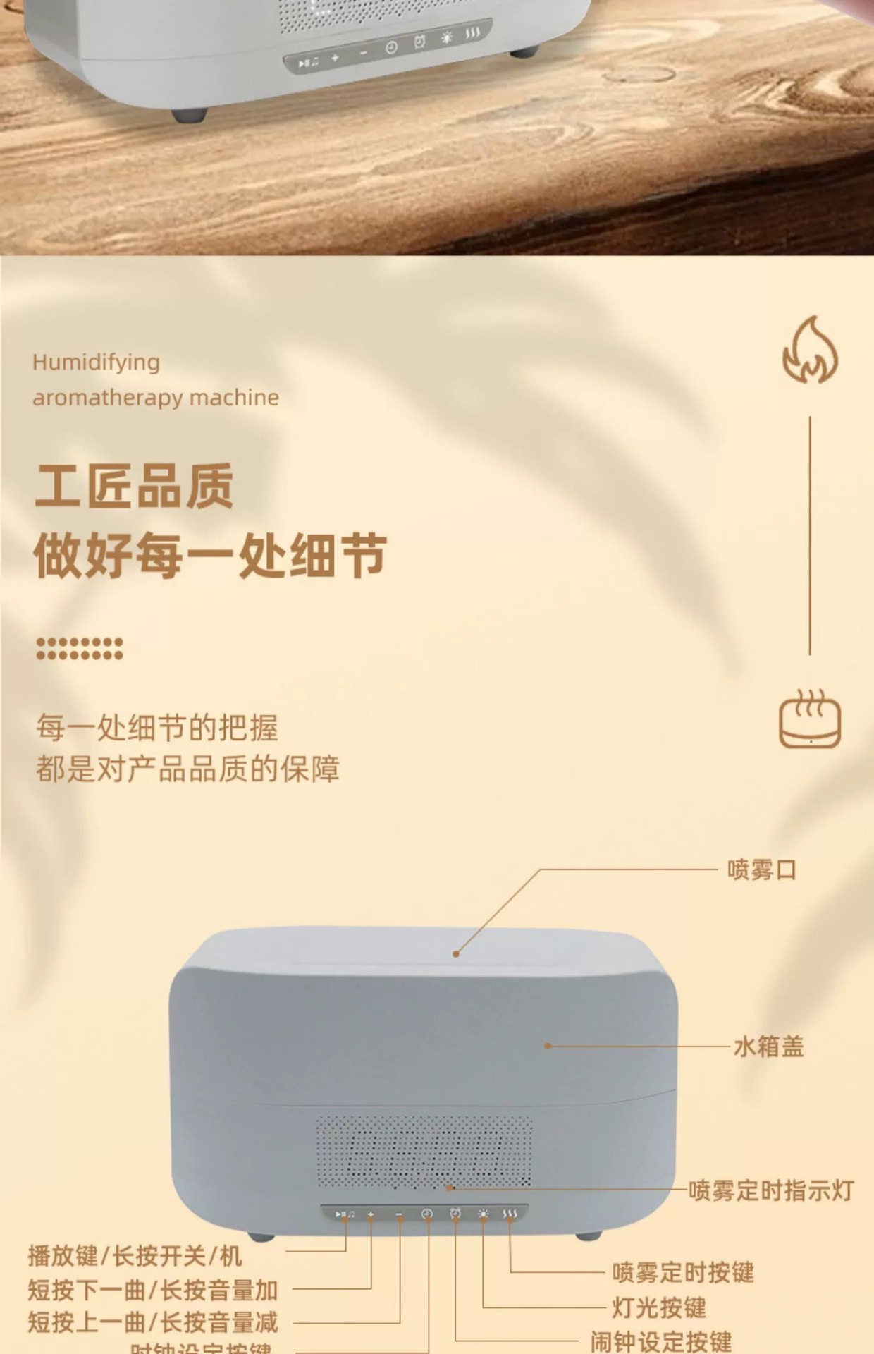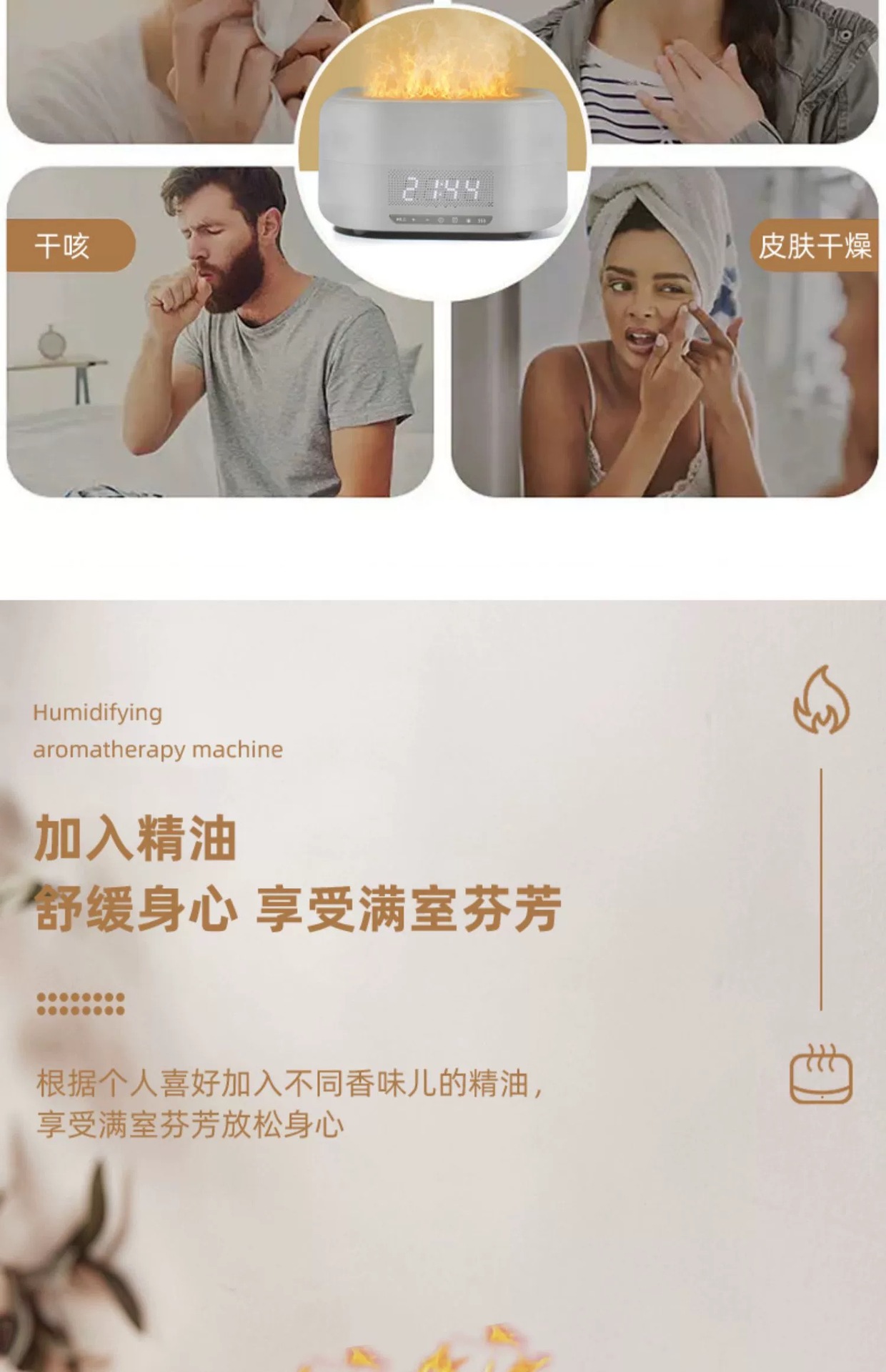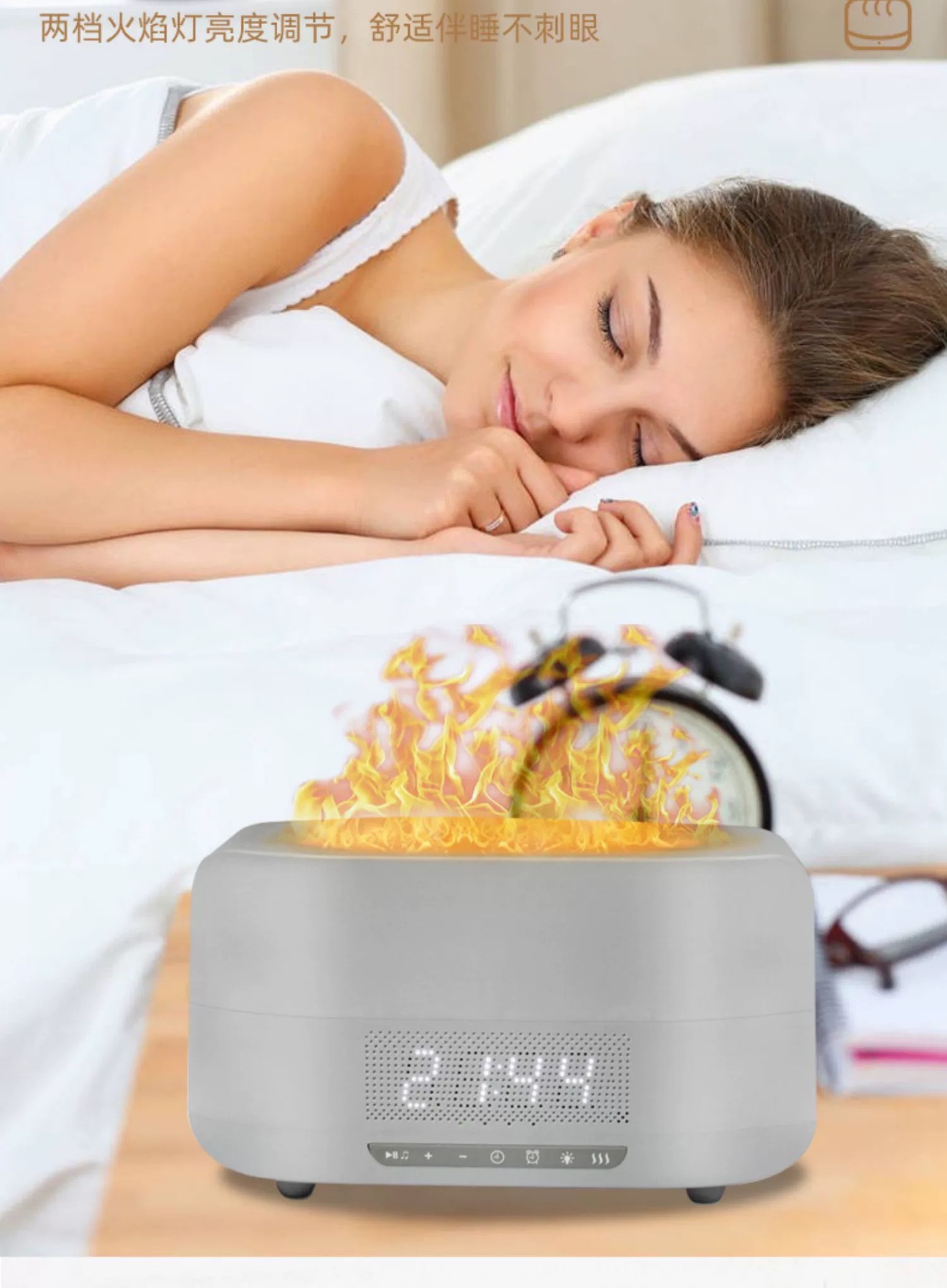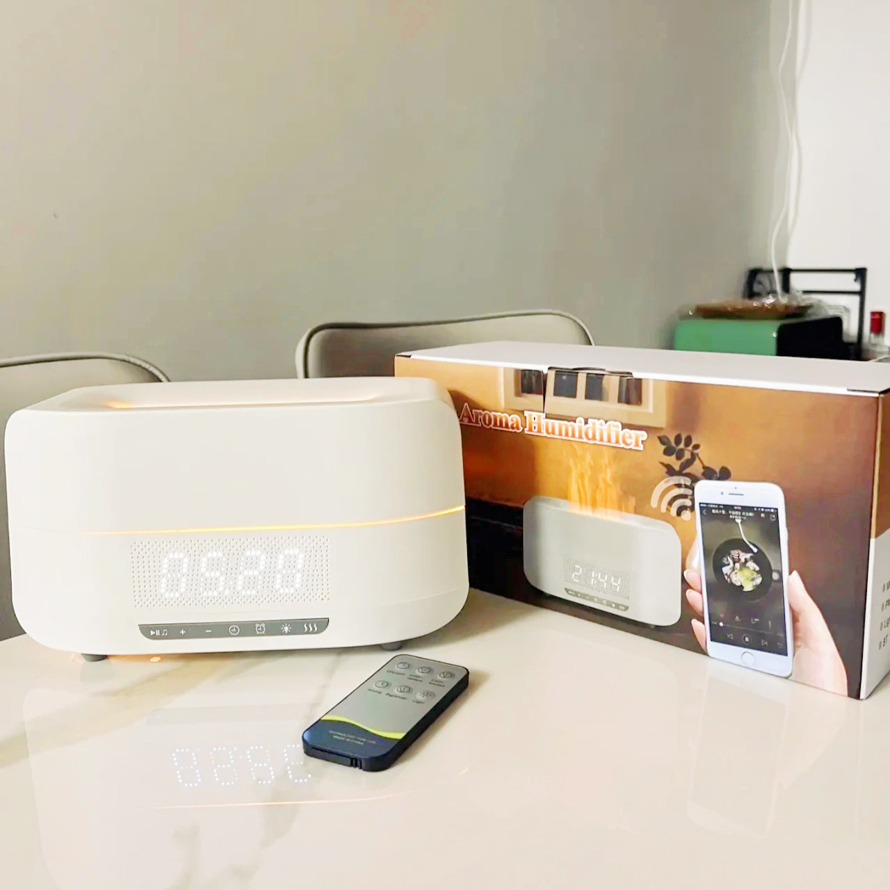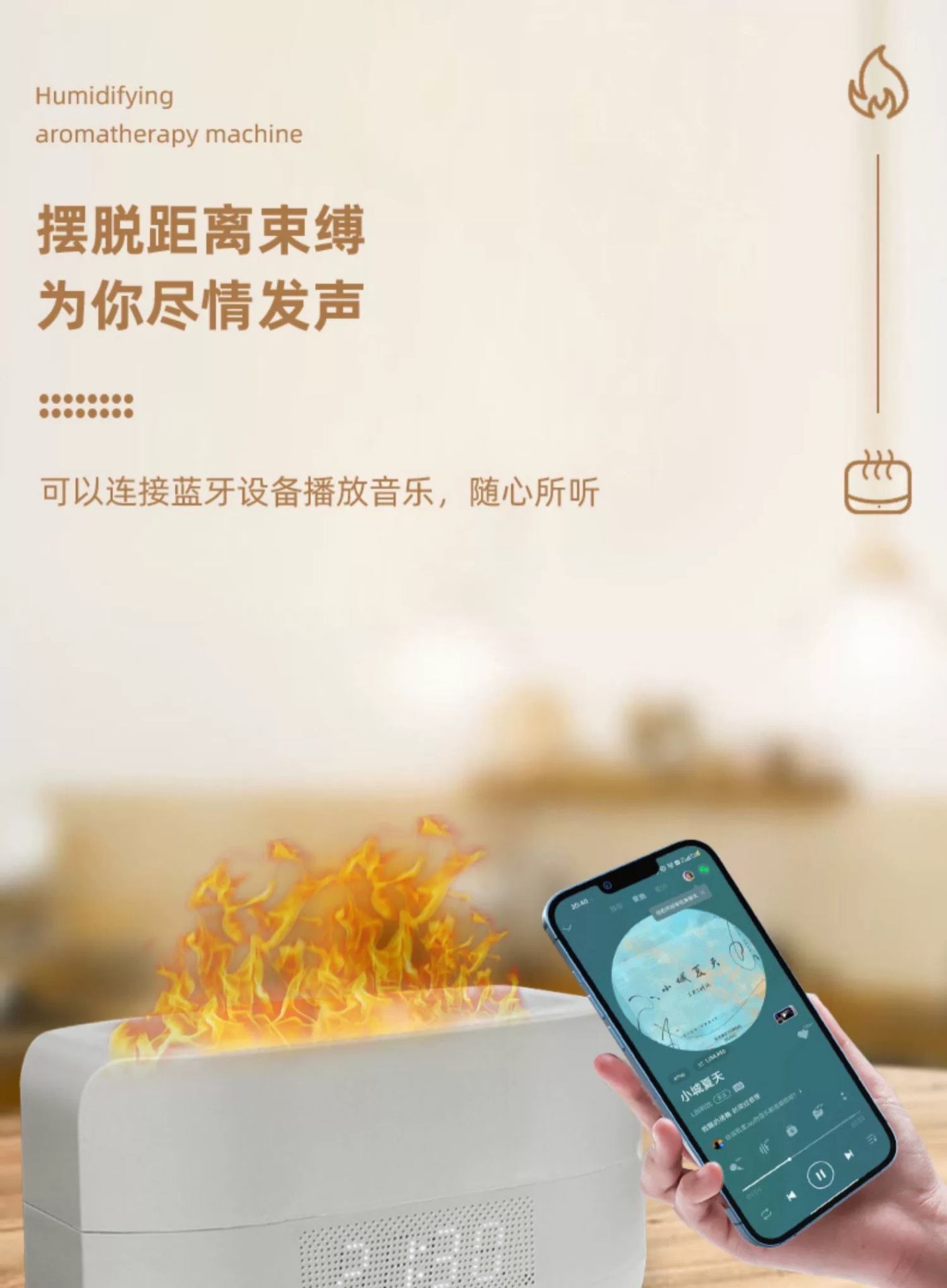 다채로운 시뮬레이션 불꽃 아로마 테라피 가습기 블루투스 오디오 아로마 테라피 기계 침실 분위기 램프 선물 생일 선물