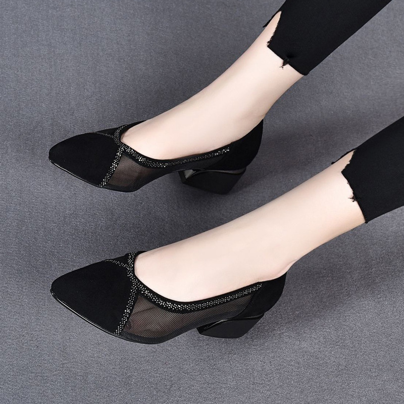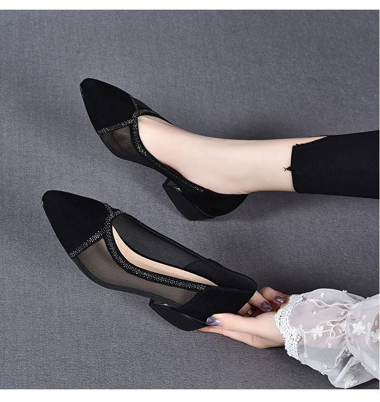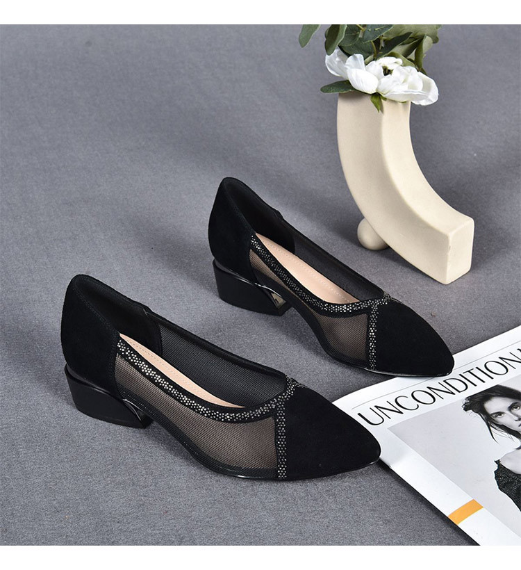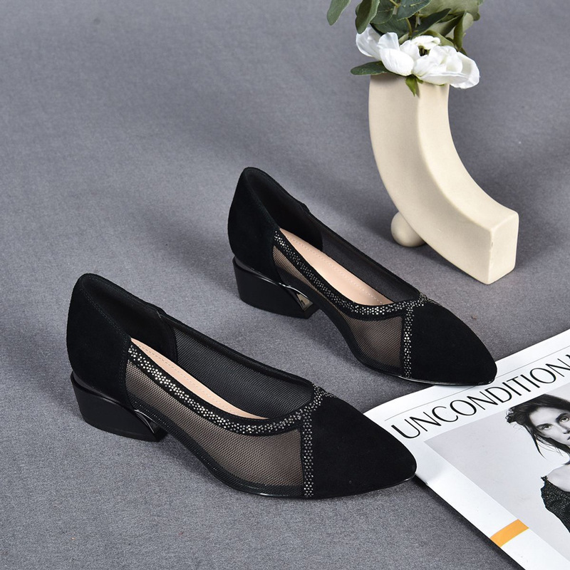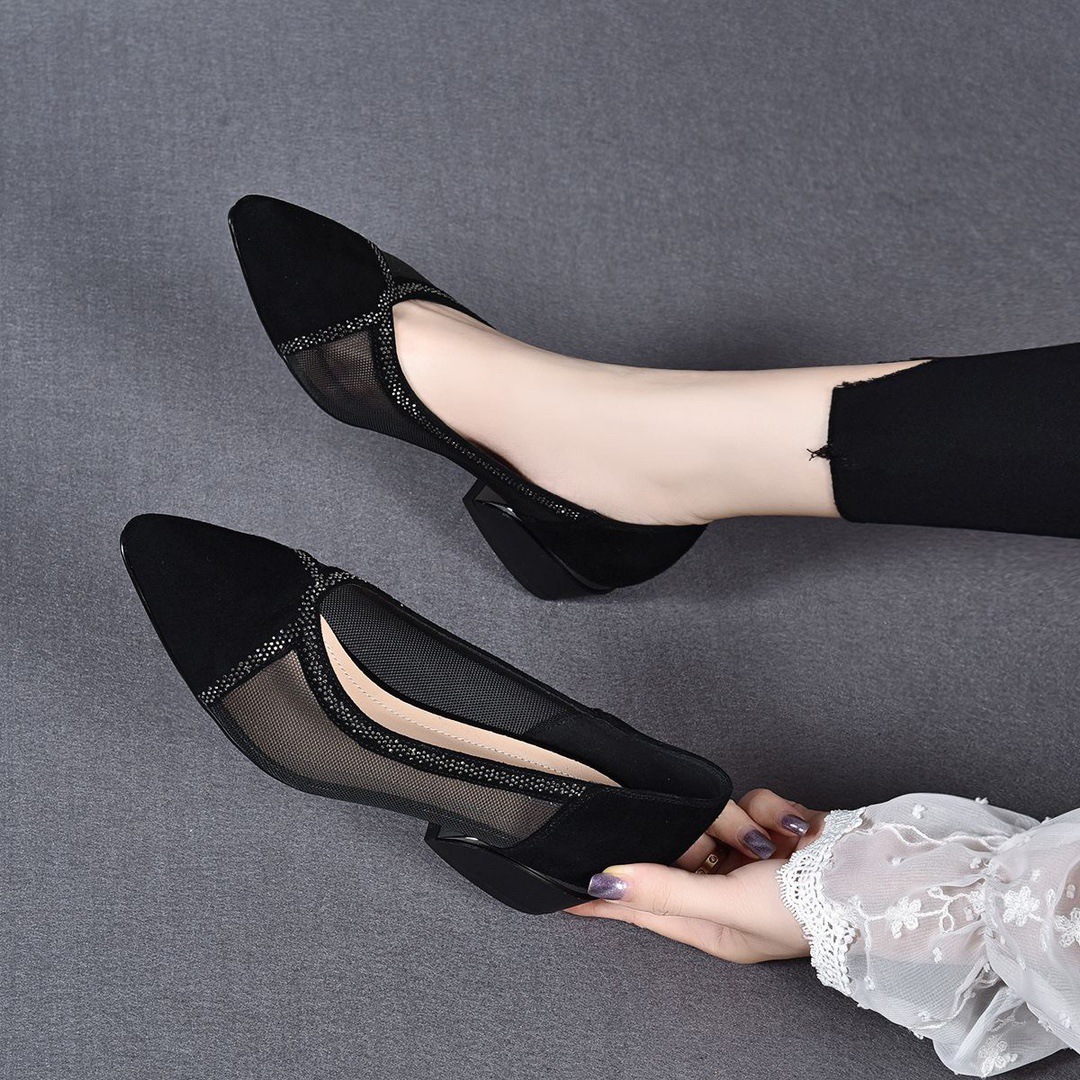 2026년 신상 여름 메쉬 샌들 여성용 로우힐 부드러운 밑창 가죽 속이 빈 싱글 슈즈 포인티드 토 플랫 통기성 가죽 신발