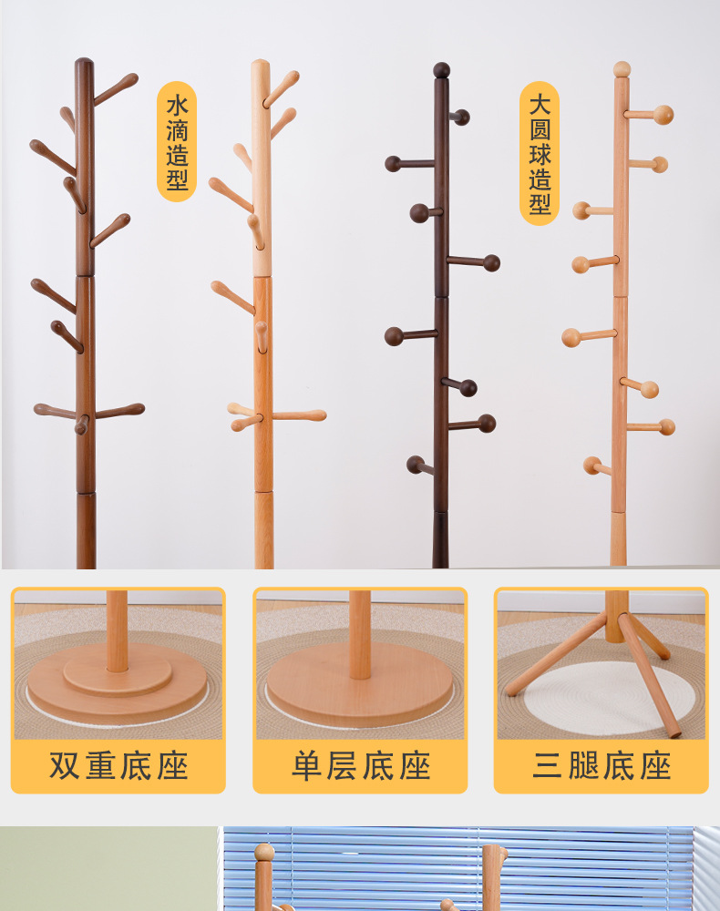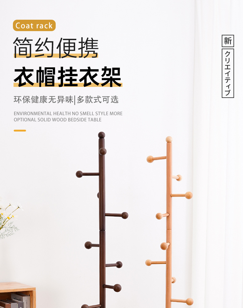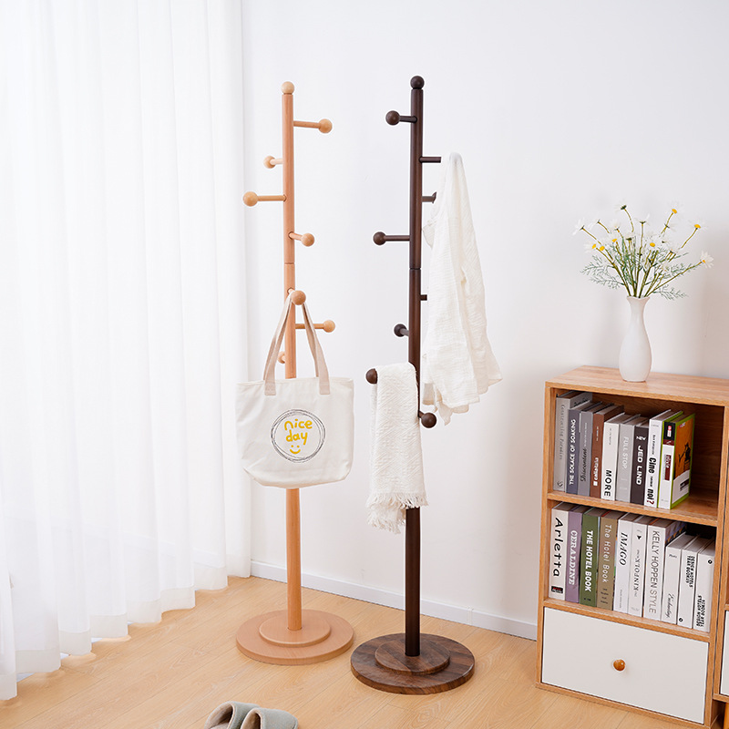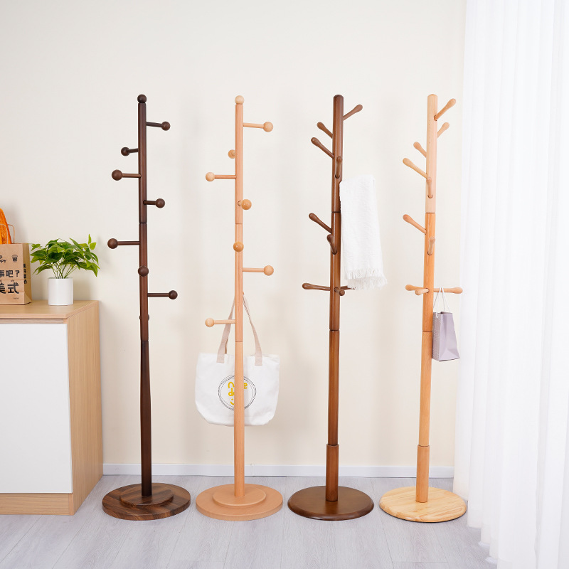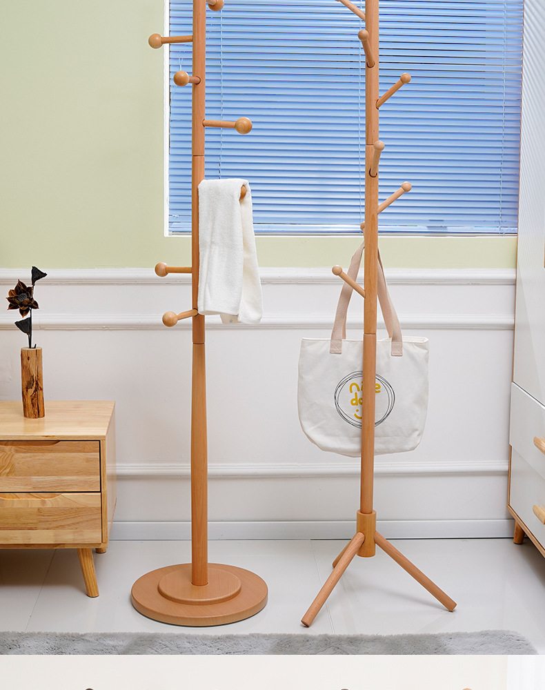 단단한 나무 코트 랙 침실 간단한 단단한 나무 옷걸이 너도밤 코트 랙 거실 침실 바닥 코트 랙