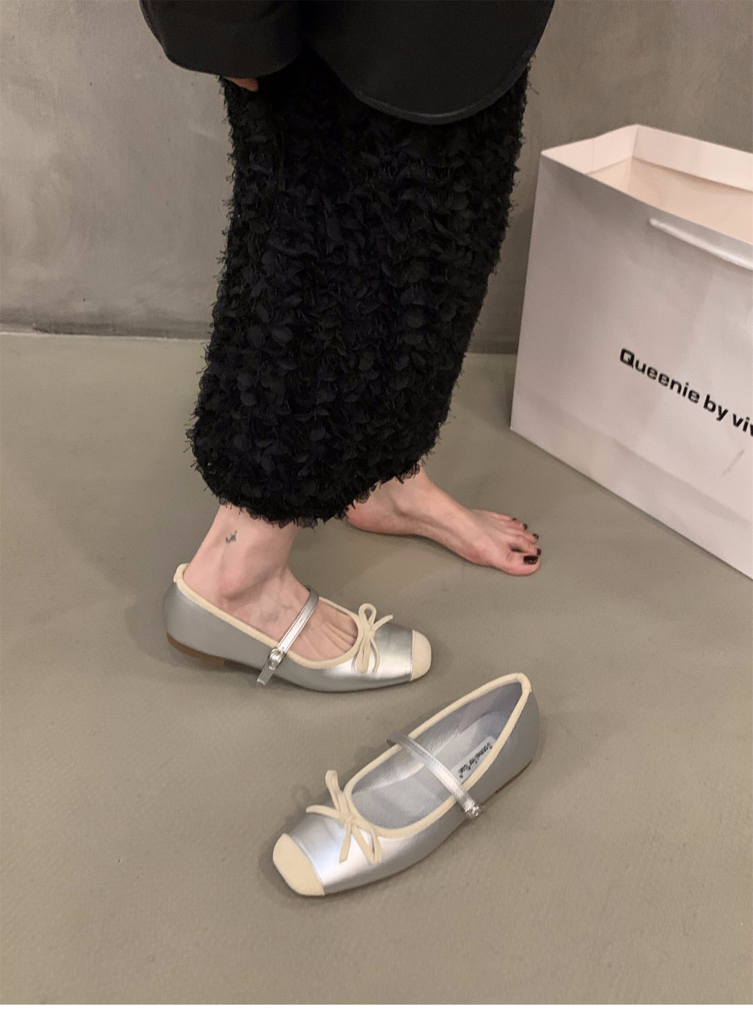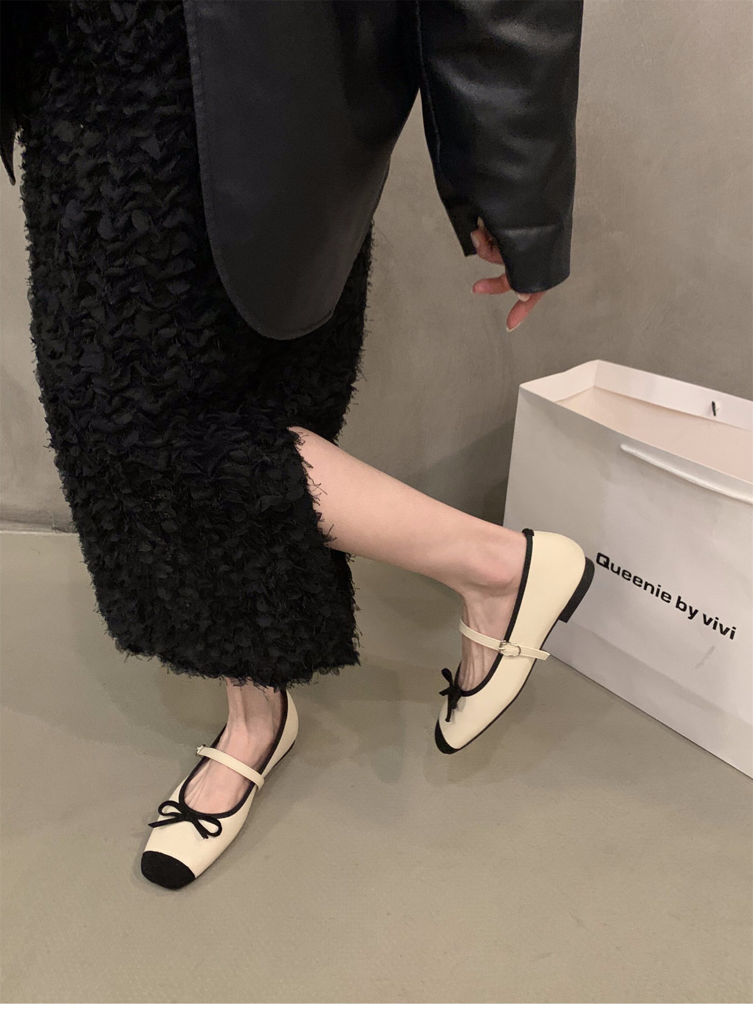 2025년 봄/가을 신상 플랫 프렌치 스타일 샤넬풍 메리제인 여성화 스퀘어토 발레 슈즈