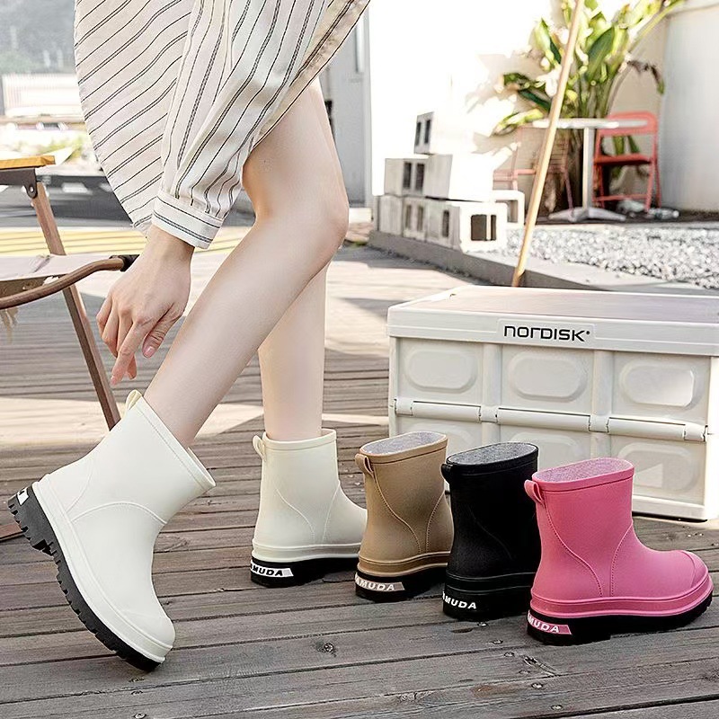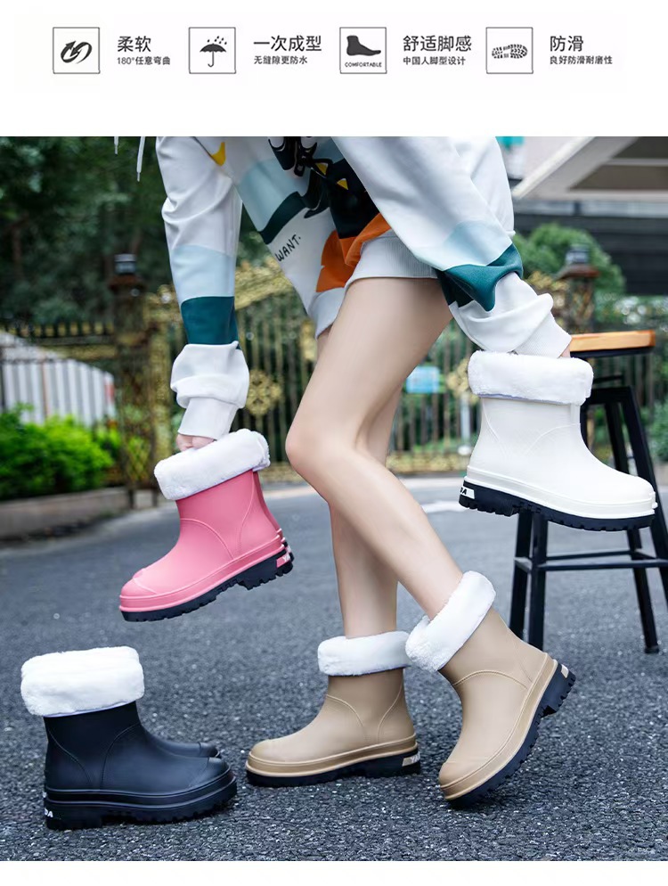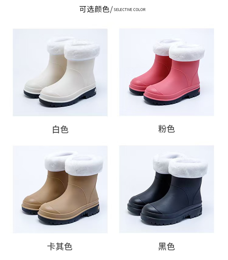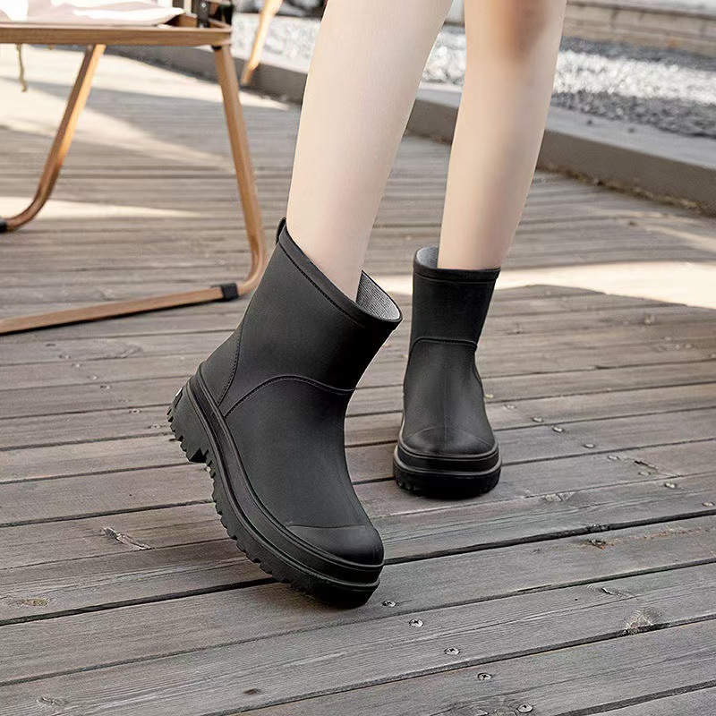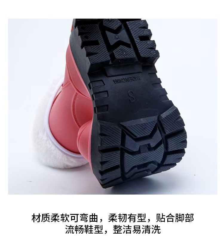 2024 새로운 여성 부츠 방수 마틴 부츠 패션 장화 여성 그물 붉은 두꺼운 바닥면 기모 따뜻한 장화