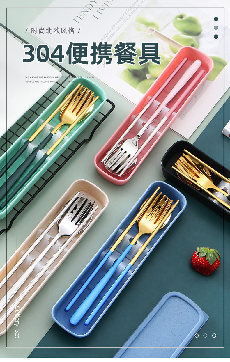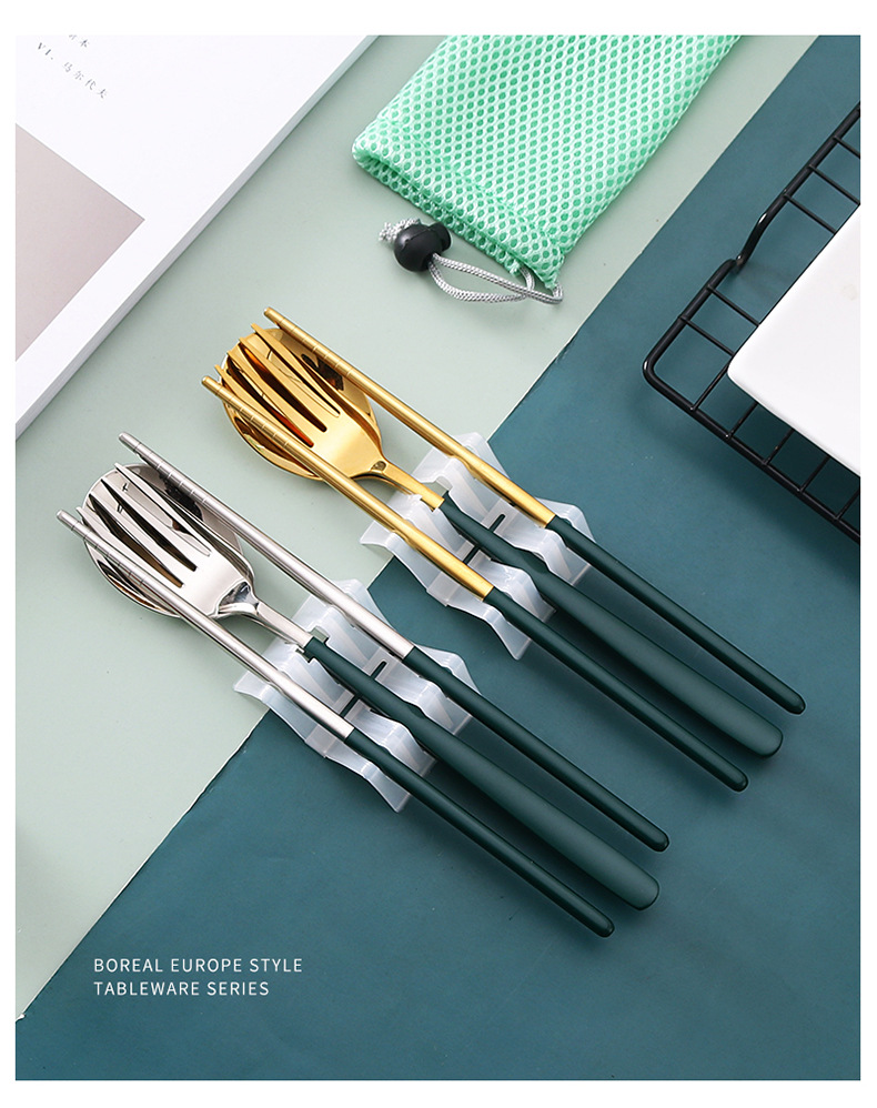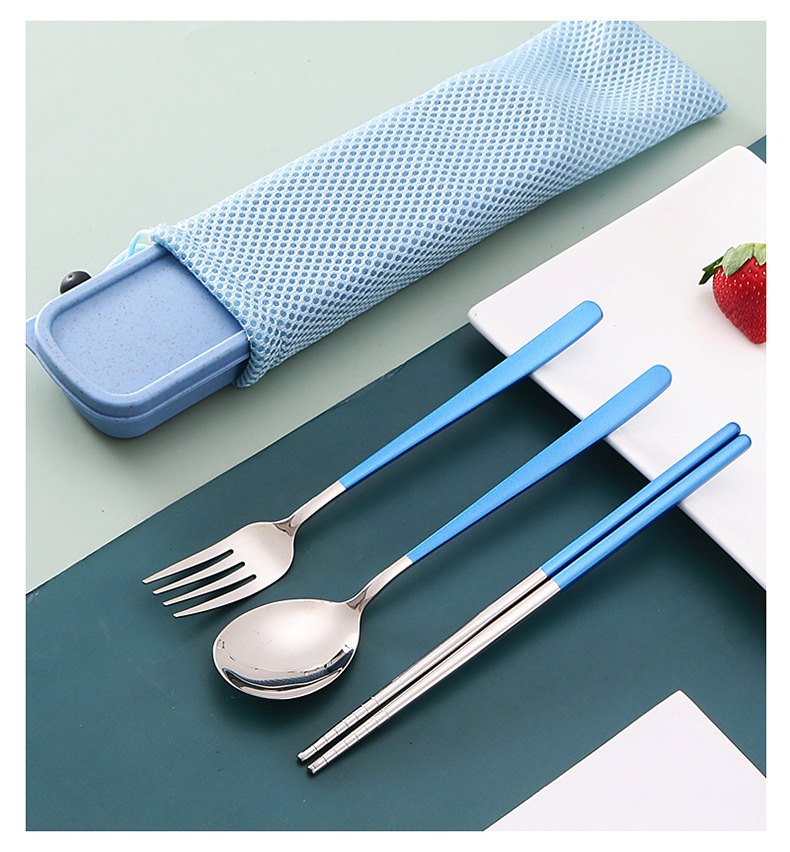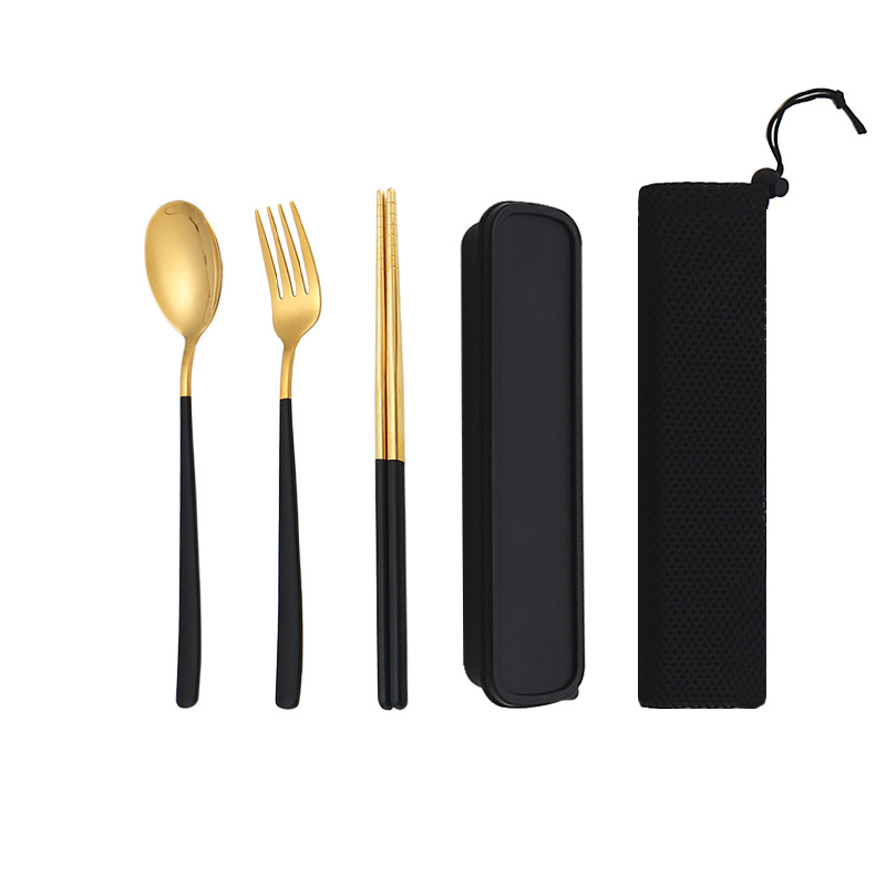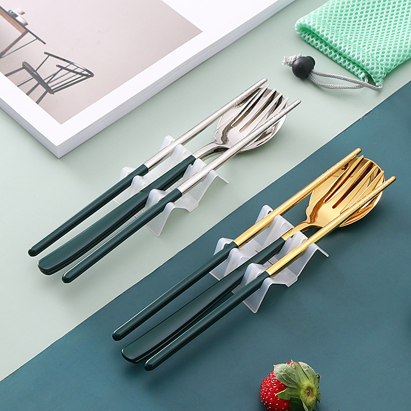 두꺼운 스테인레스 스틸 휴대용 식기 스푼 포크 젓가락 3 종 세트 학생 사무실 노동자 한국식 선물 식기