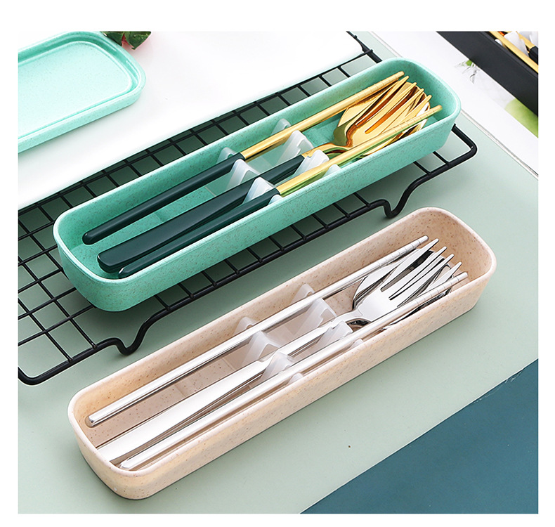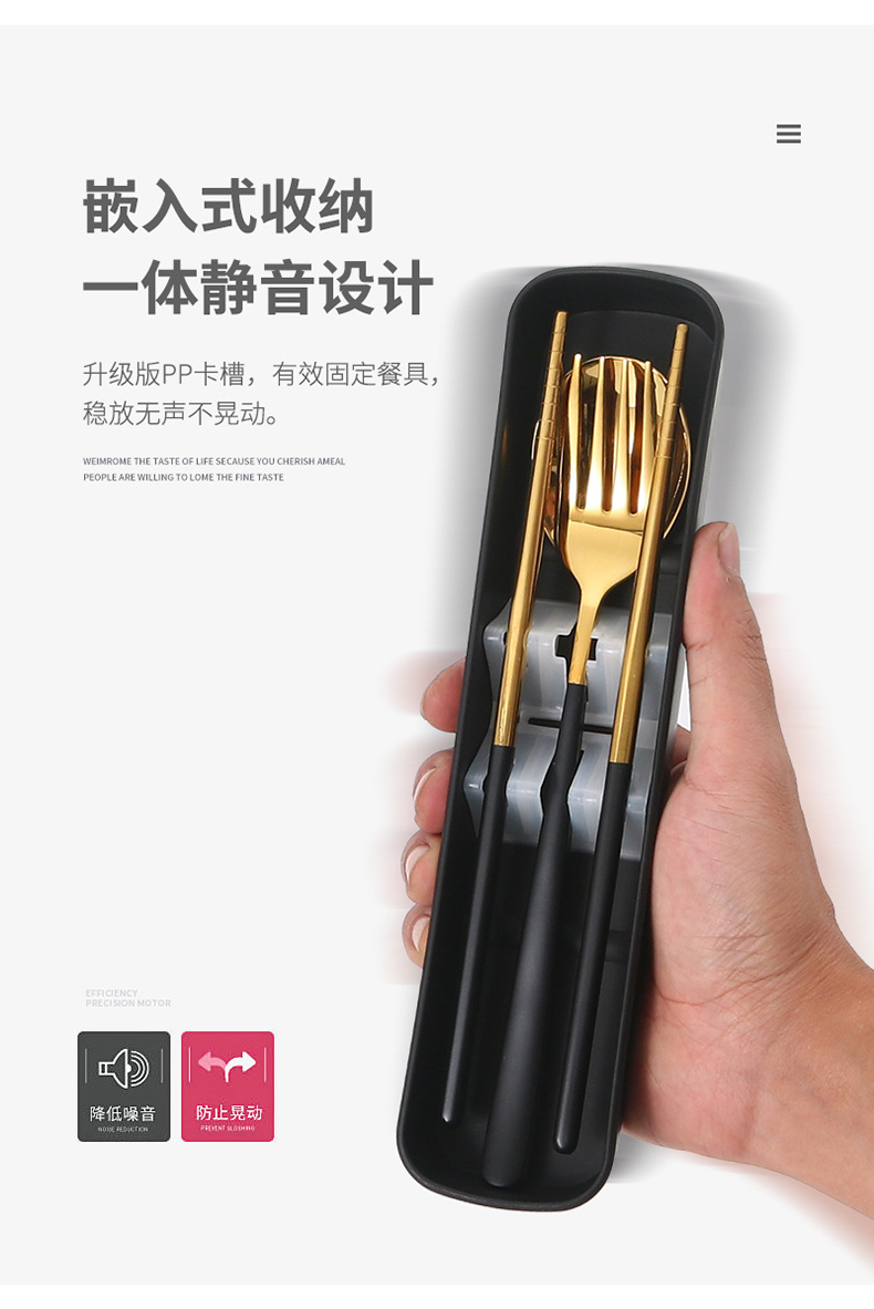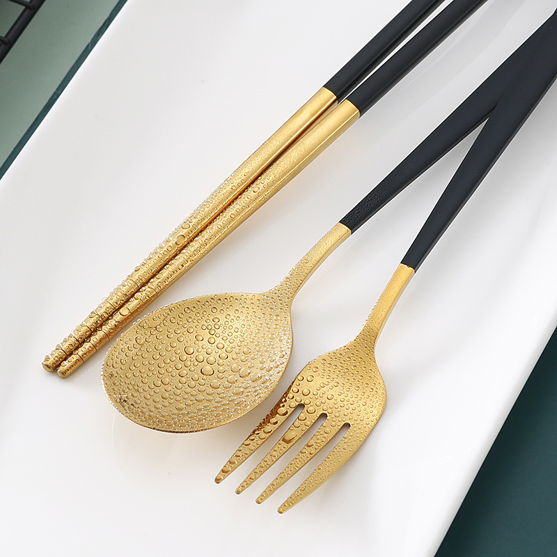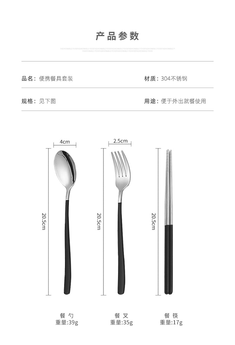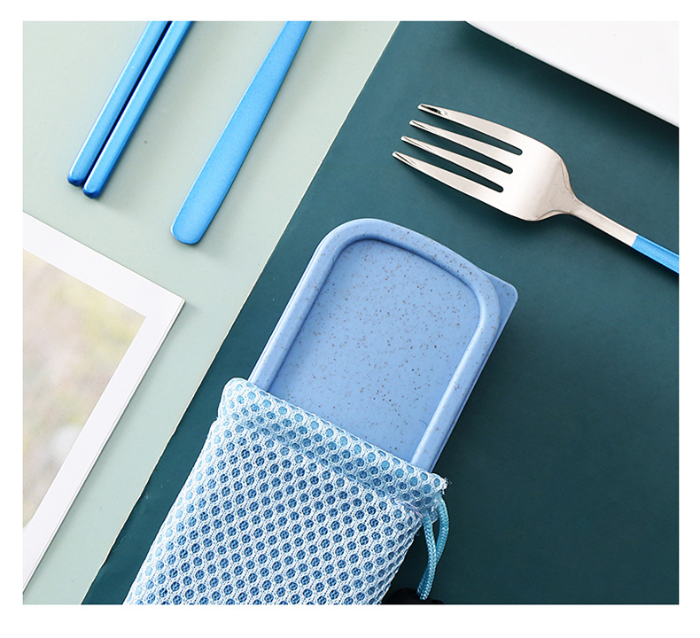두꺼운 스테인레스 스틸 휴대용 식기 스푼 포크 젓가락 3 종 세트 학생 사무실 노동자 한국식 선물 식기