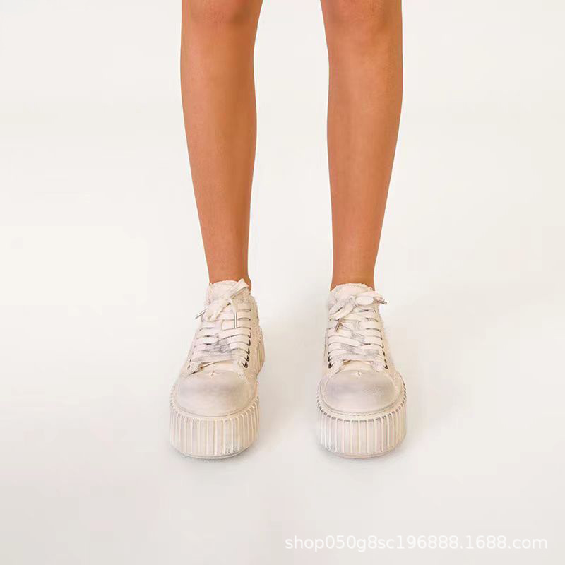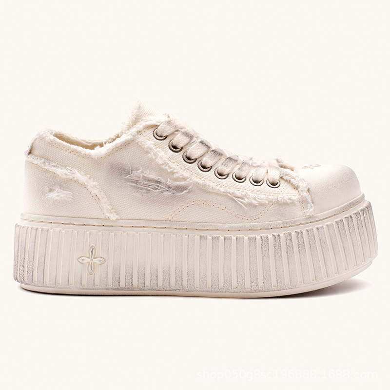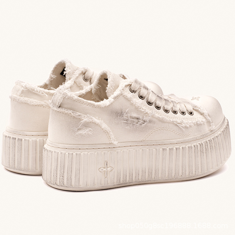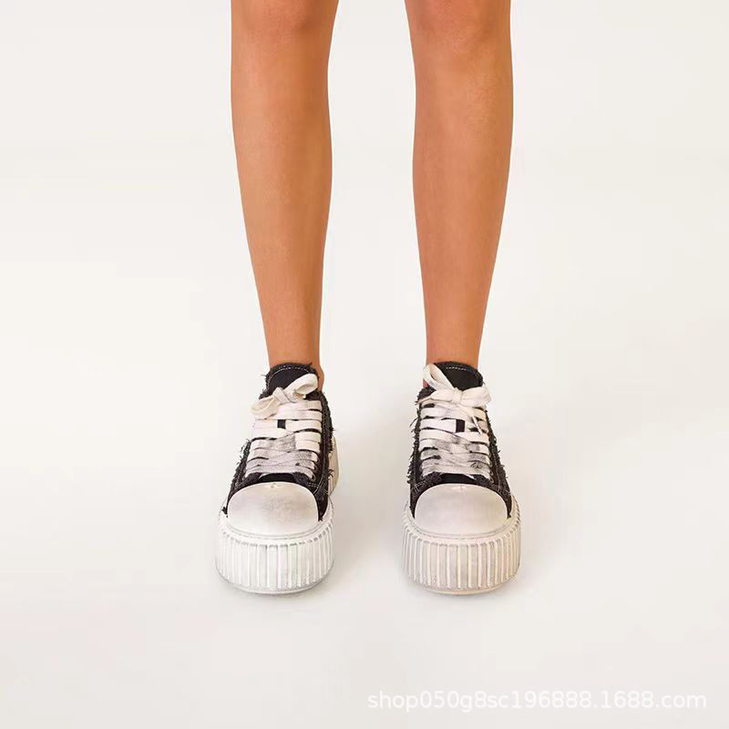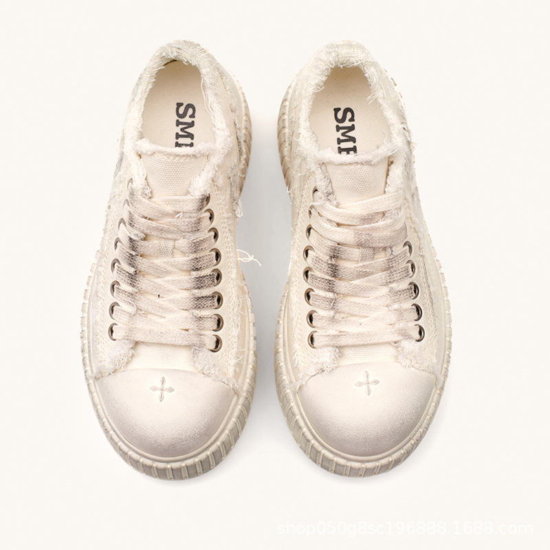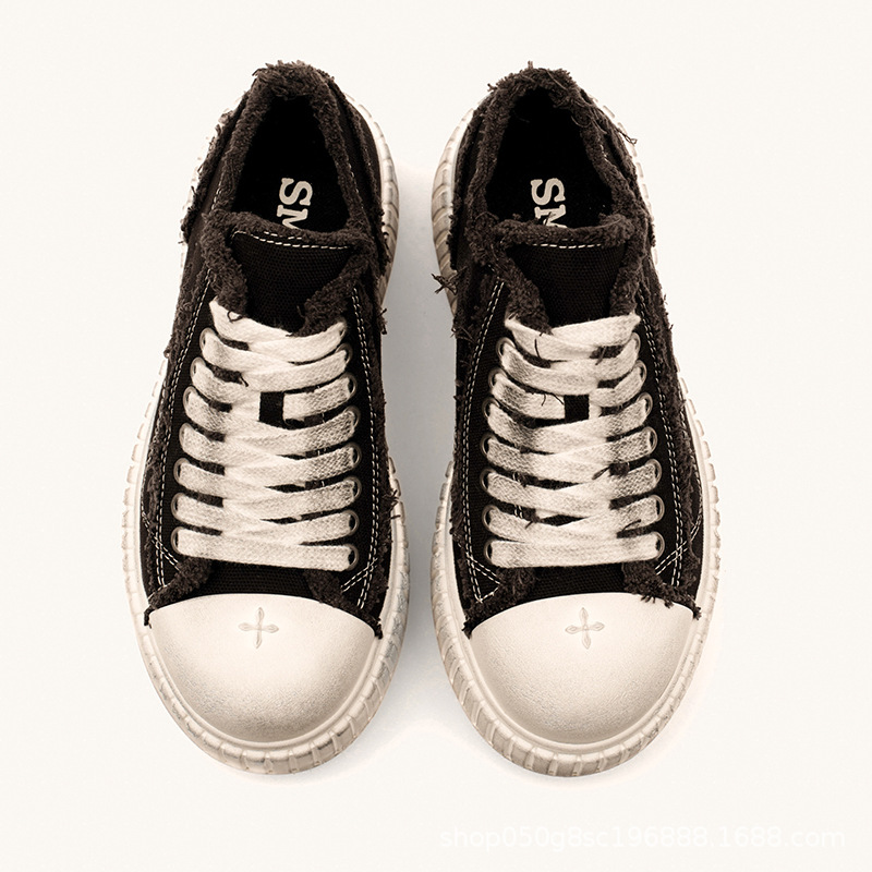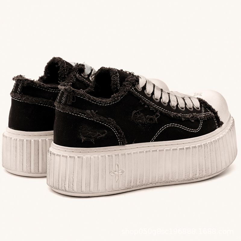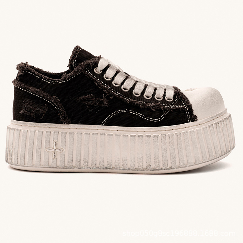 Spot SK 방랑 스케이트 보드 신발 캐주얼 여성 신발 손으로 찢어진 대비 색상 두꺼운 밑창 캔버스 신발 작은 더러운 신발 2024 여름