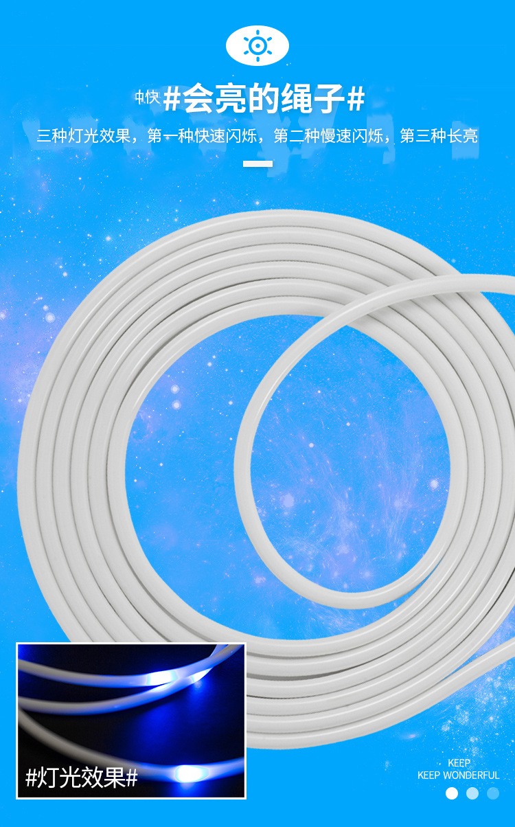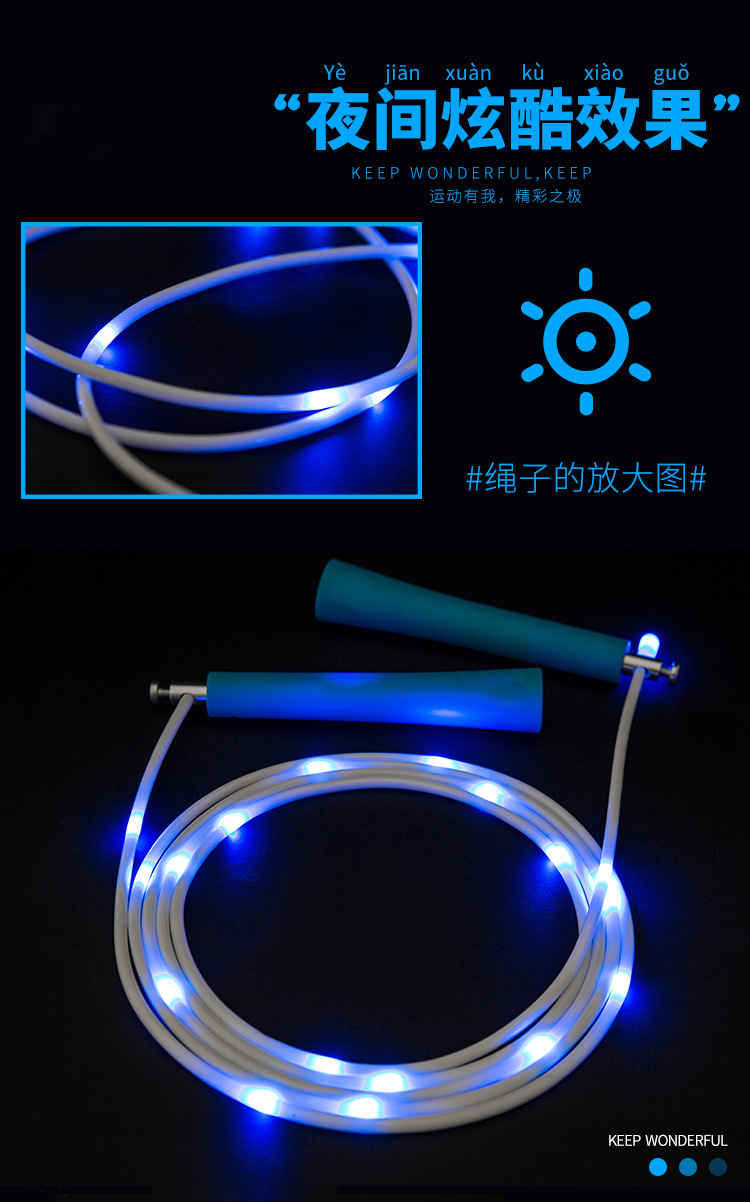 LED 조절 가능한 다채로운 빛 충전 발광 로프 도매 스포츠 용품으로 어린이 빛나는 로프 건너 뛰기