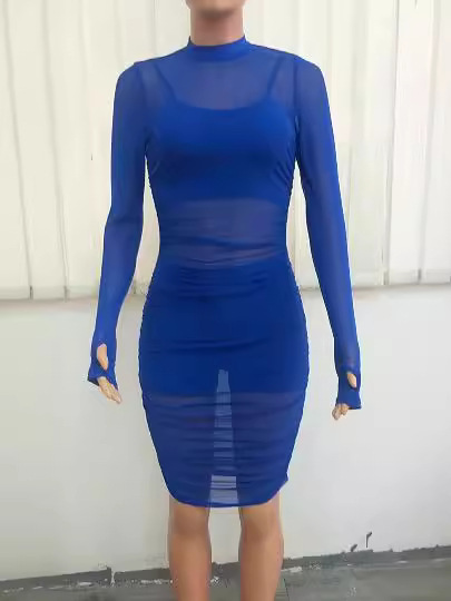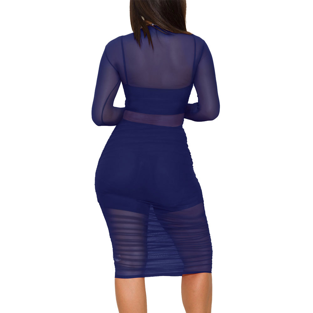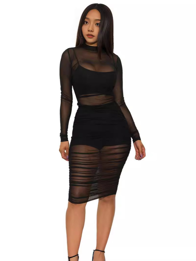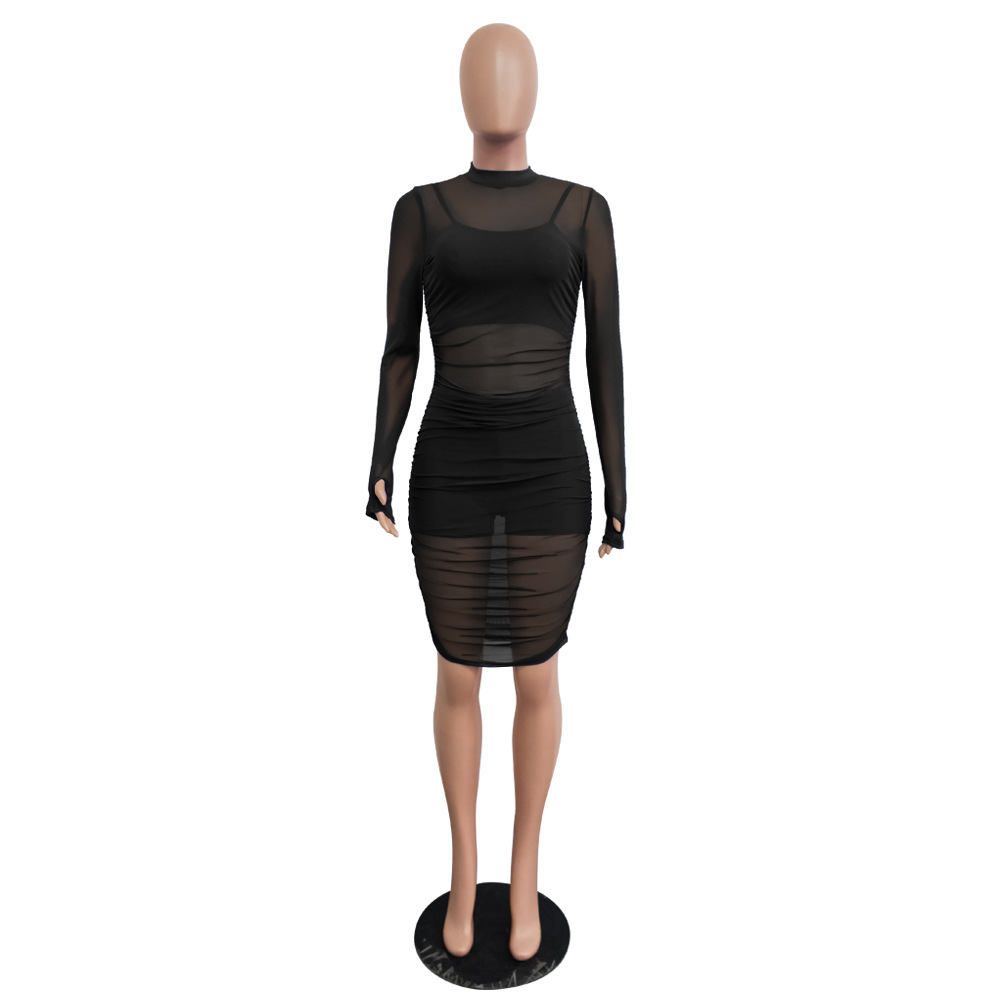 유럽과 미국의 나이트 클럽 메쉬 드레스 + 작은 조끼 + 반바지 3피스 세트 AliExpress Amazon New