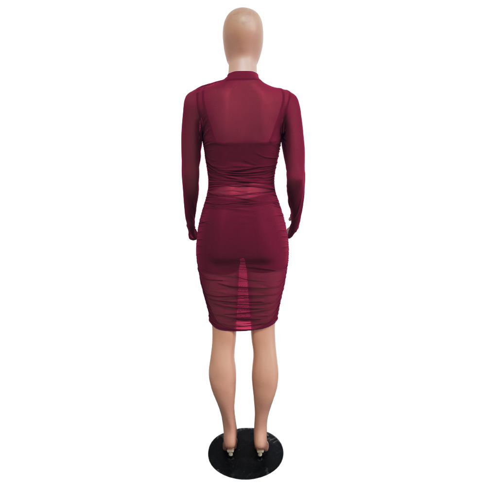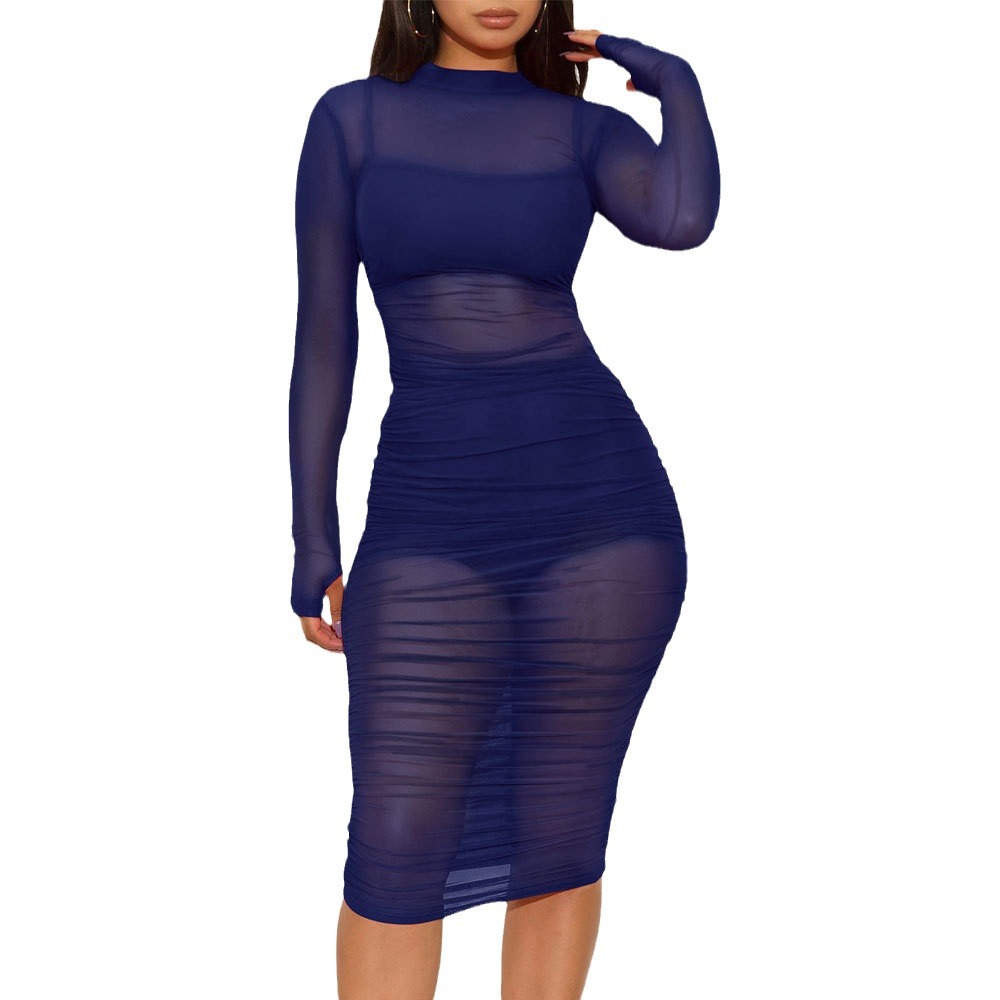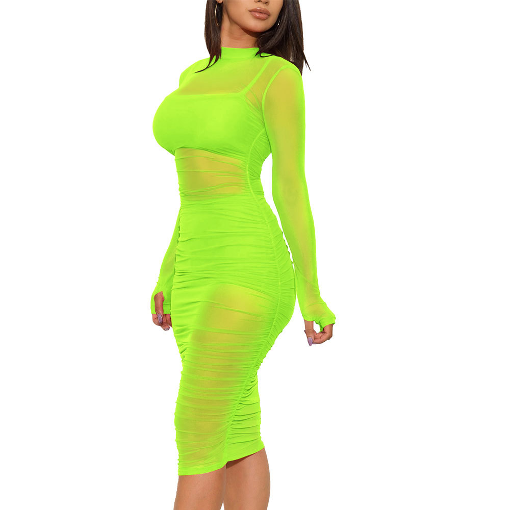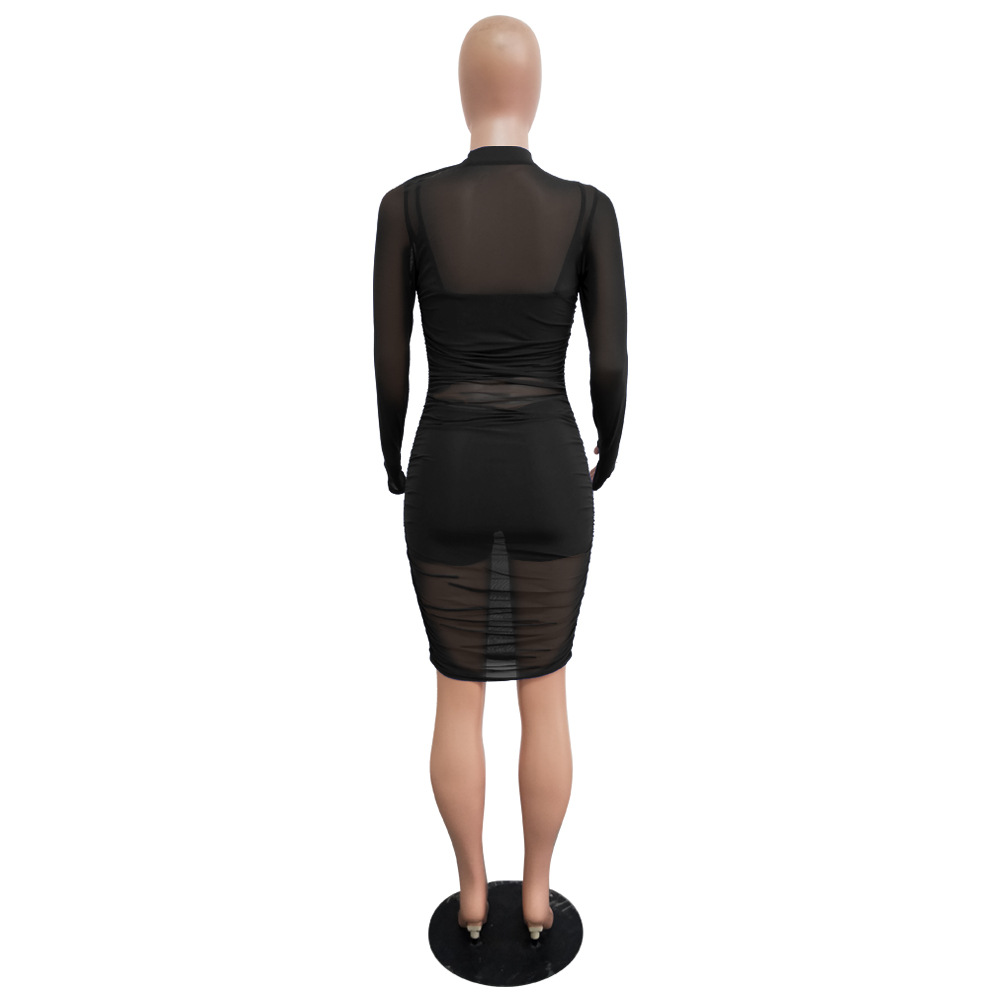유럽과 미국의 나이트 클럽 메쉬 드레스 + 작은 조끼 + 반바지 3피스 세트 AliExpress Amazon New