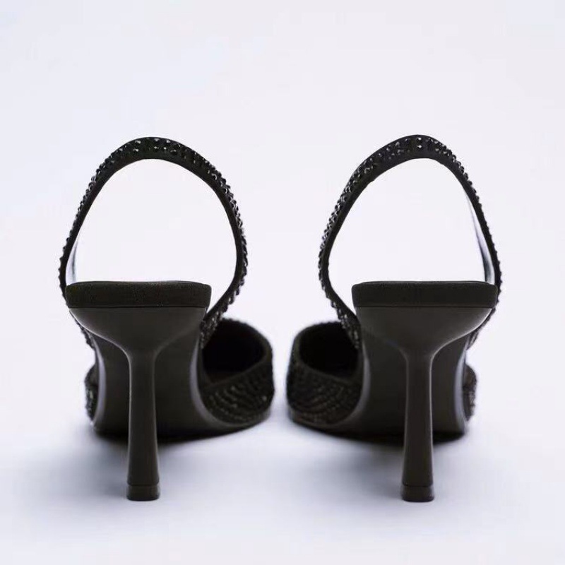 ZA2022 가을 새 봄과 가을 샌들 여성용 하이힐을 가리키며 뒷발 빈 하이힐 다이아몬드 브라이트 뮬러 여성용 신발