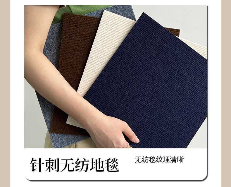 我们的地毯背面自带胶层,为满足家装级别的粘贴牢固性,胶性较强,长期铺设后可能在地面上留有少量胶印。