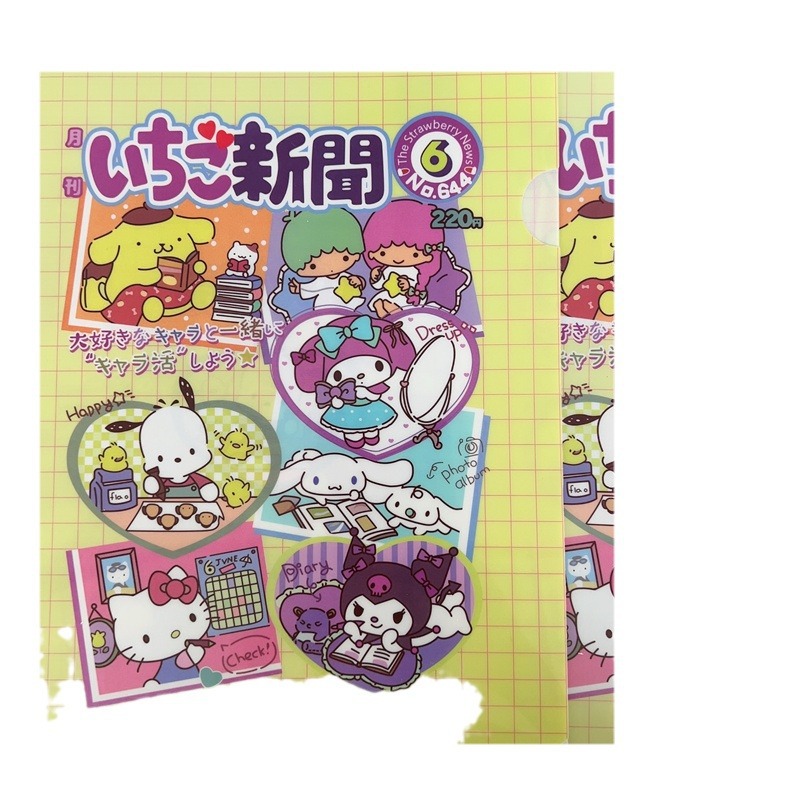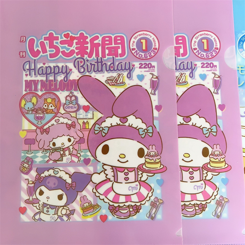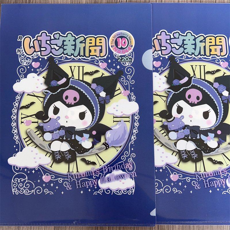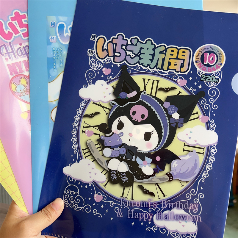 귀여운 산리오 L 자형 폴더 파일 가방 단층 두꺼운 쿨로 미 만화 종이 클립 대형 양면 가방