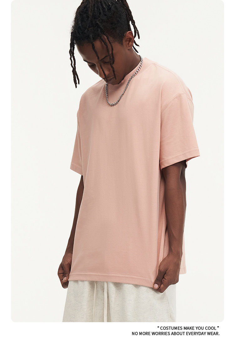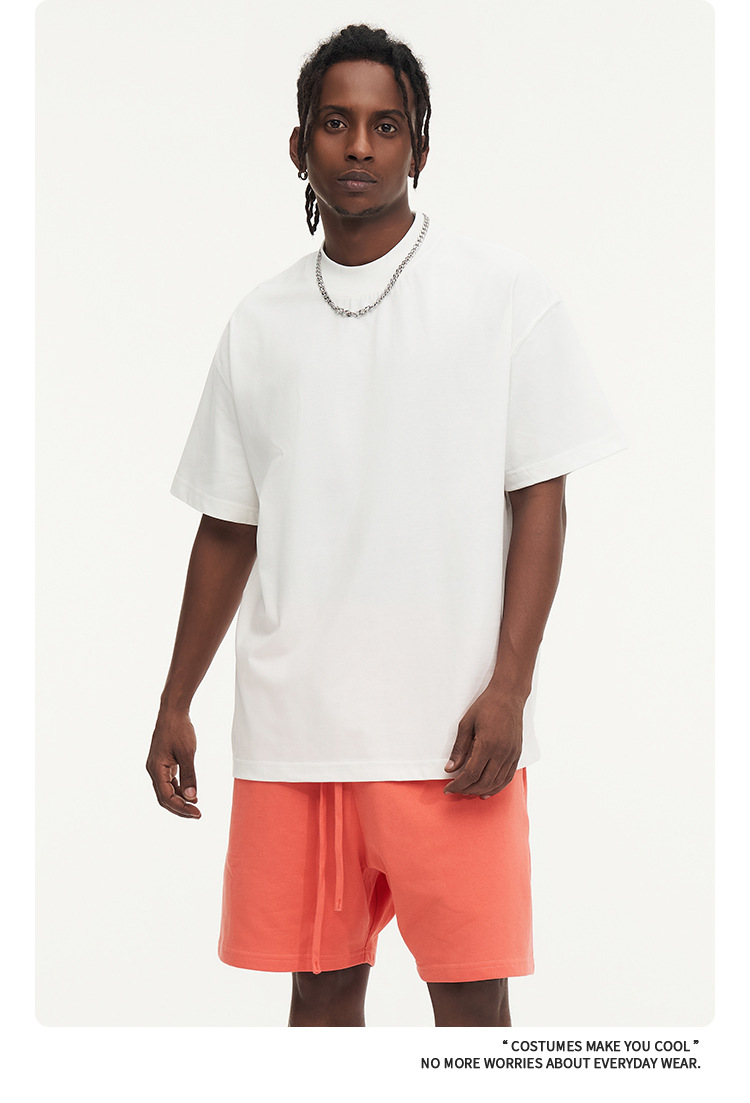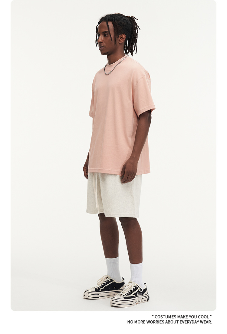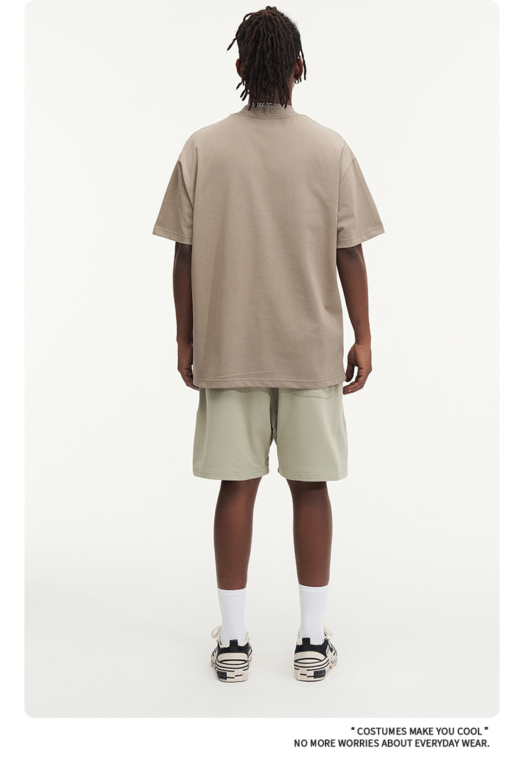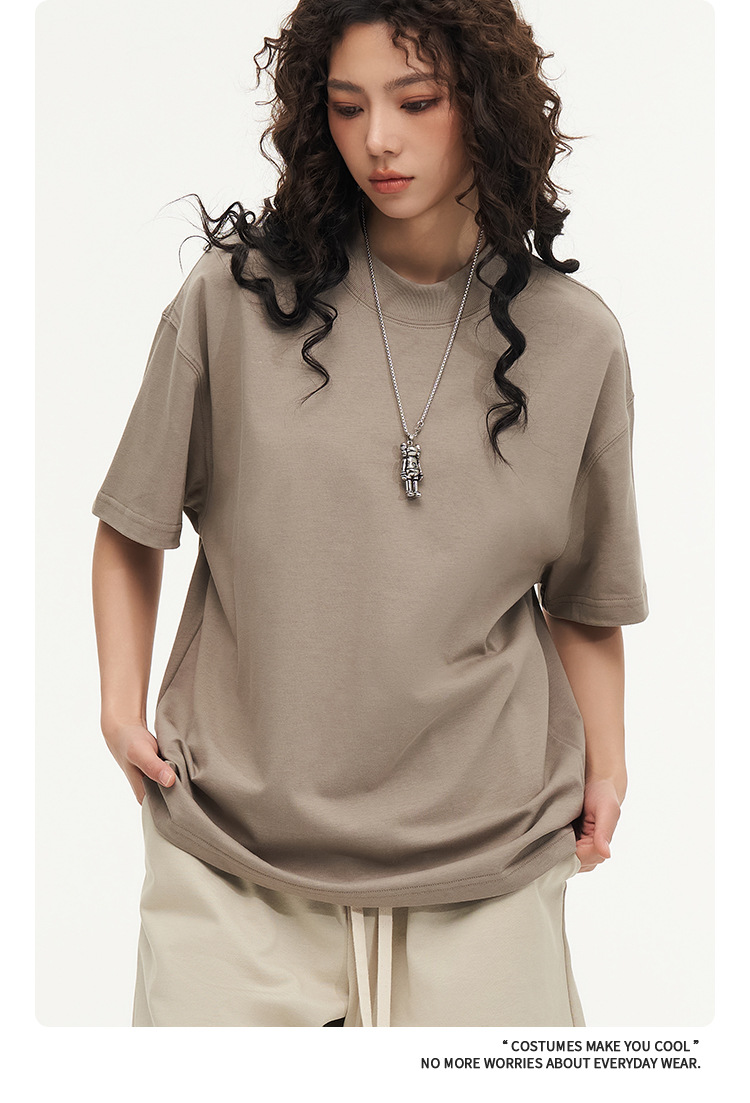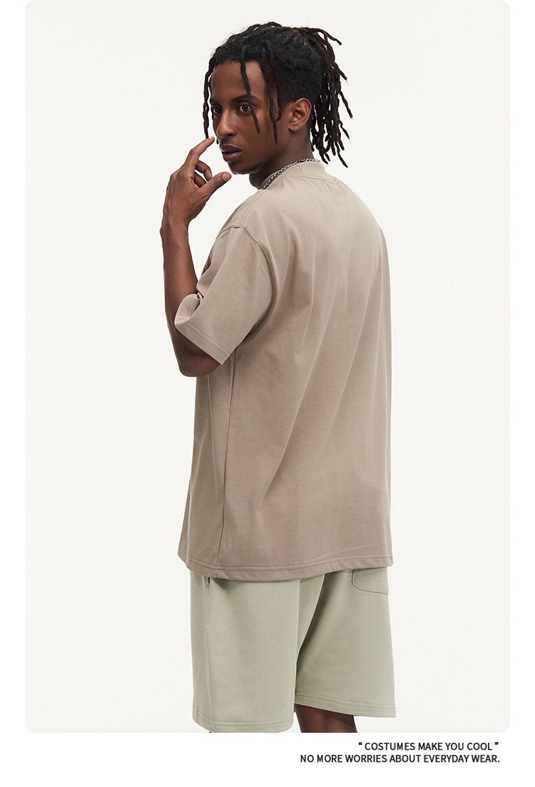 280G 더블사 소형 칼라 반팔 티셔츠 남성용 루즈핏 순면 하이넥 반팔 미국 트렌디 브랜드 티셔츠 다용도 라운드넥
