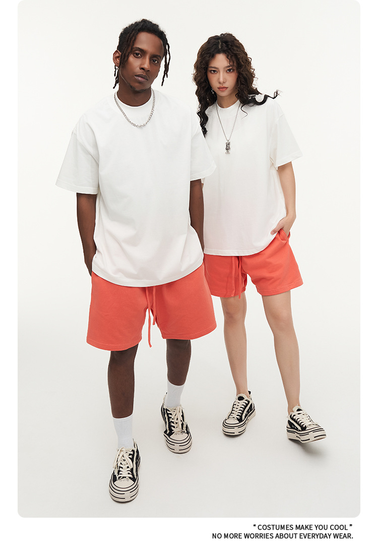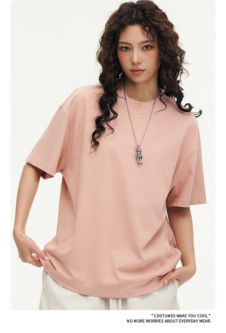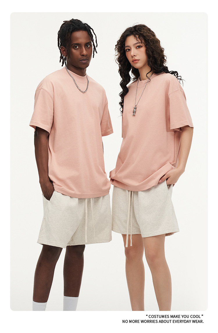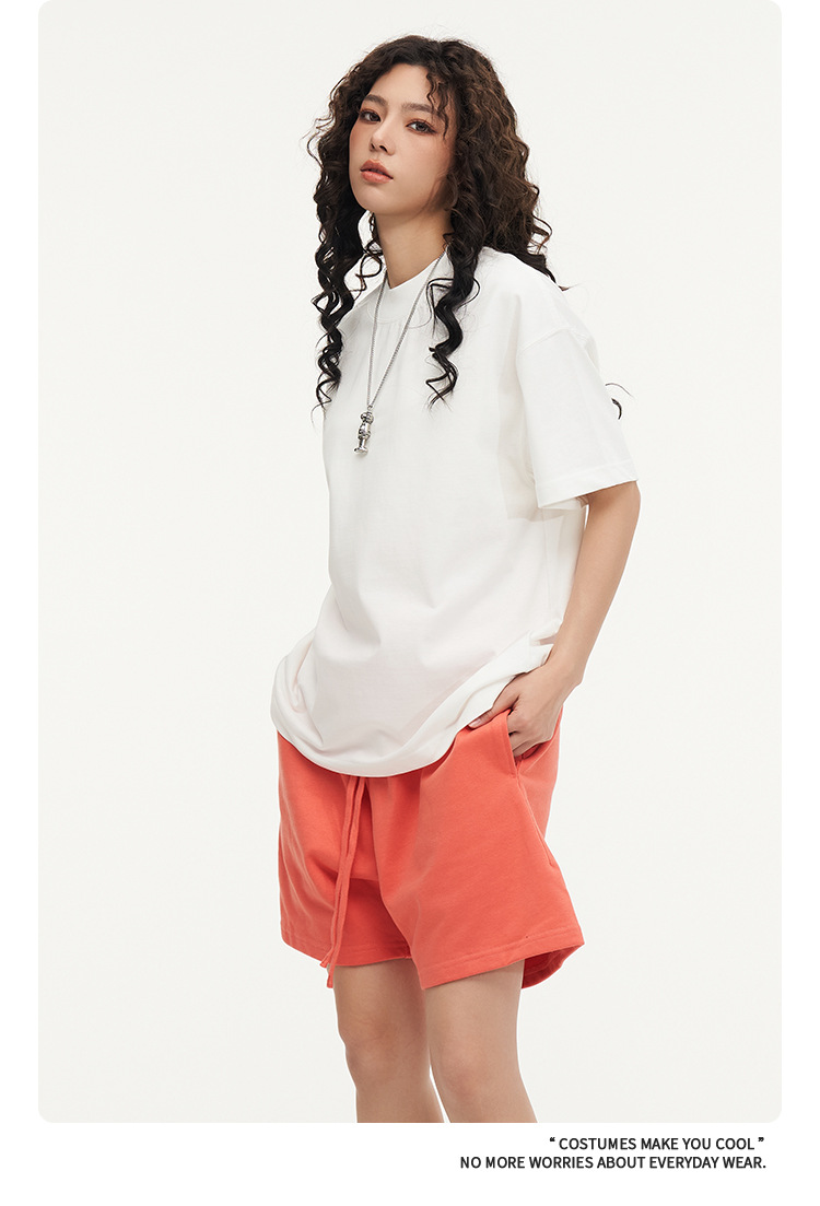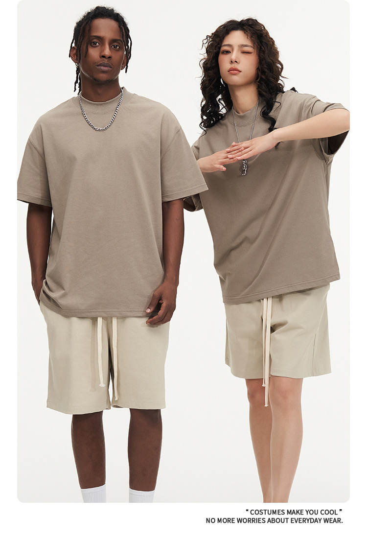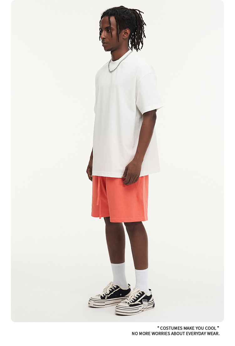 280G 더블사 소형 칼라 반팔 티셔츠 남성용 루즈핏 순면 하이넥 반팔 미국 트렌디 브랜드 티셔츠 다용도 라운드넥