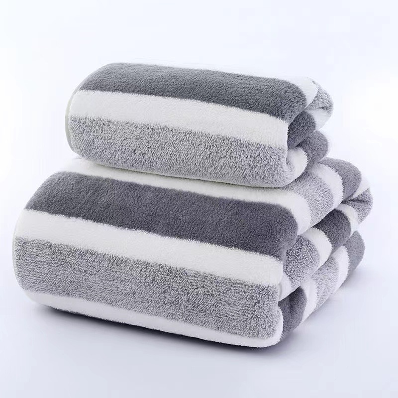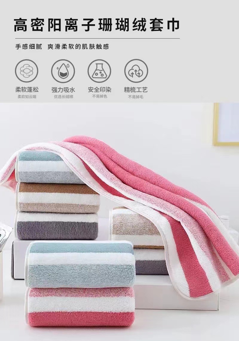 3 색 줄무늬 수건 목욕 타월 세트 조합 가정용 두꺼운 산호 양털 비치 타월 흡수성 빠른 건조 머리카락을 잃기 쉽지 않음