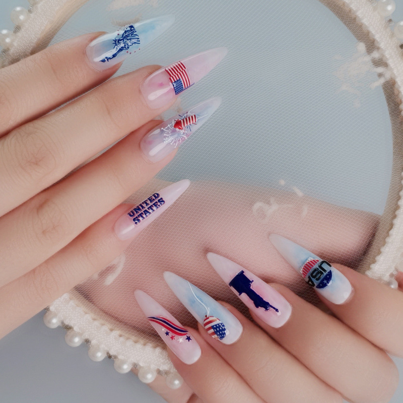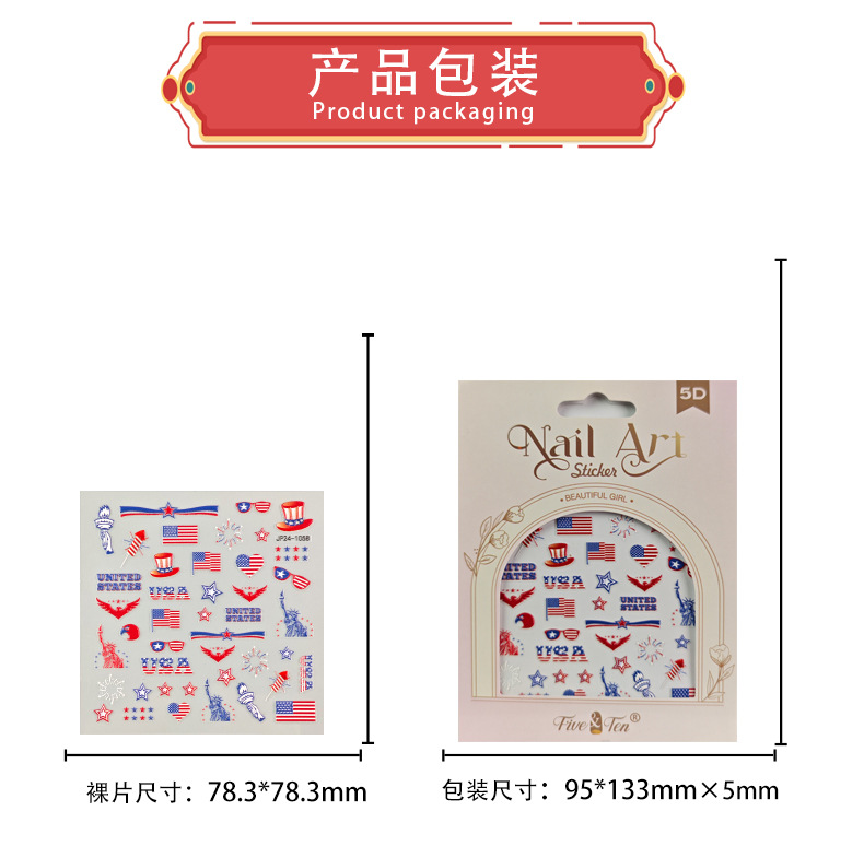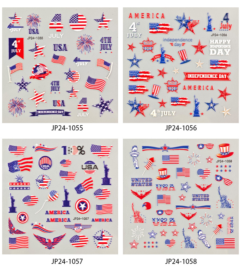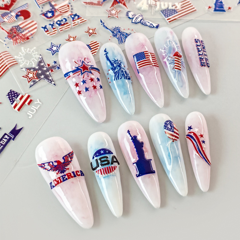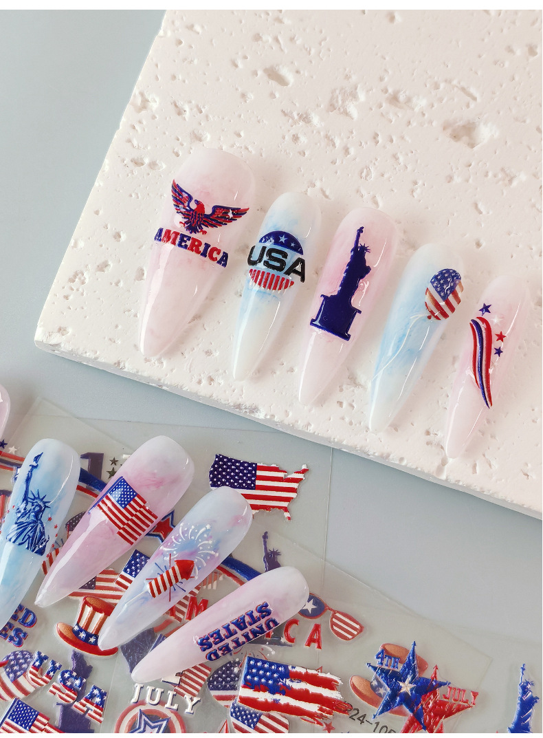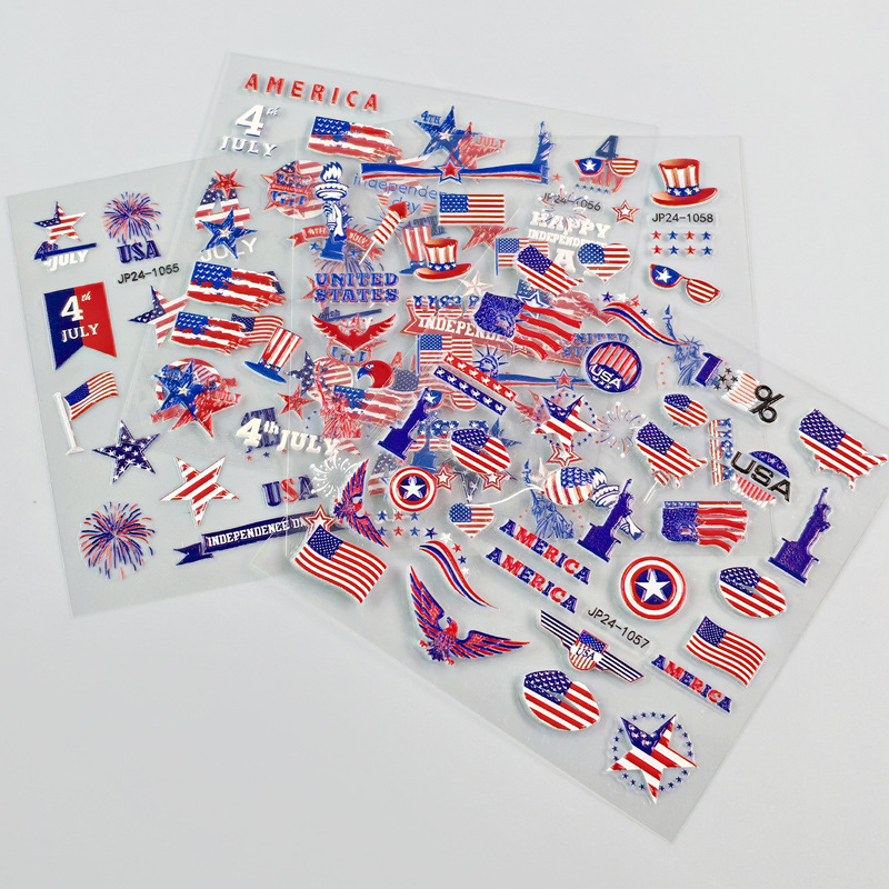 소스 제조업체 네일 스티커 방수 미국 독립 기념일 깃발 네일 스티커 5D 구호 DIY 매니큐어 스티커