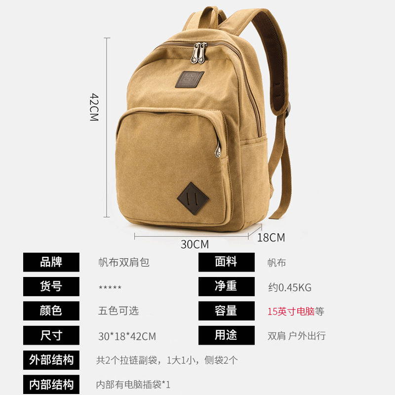 남성과 여성을위한 국경 간 배낭 가방 내마모성 캔버스 통근 초등학생 중학생 여행 컴퓨터 가방
