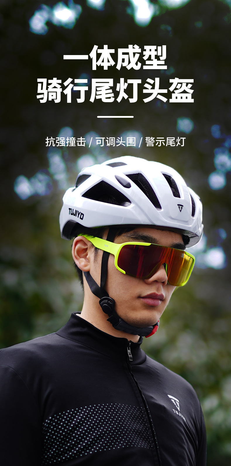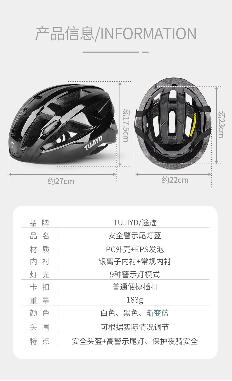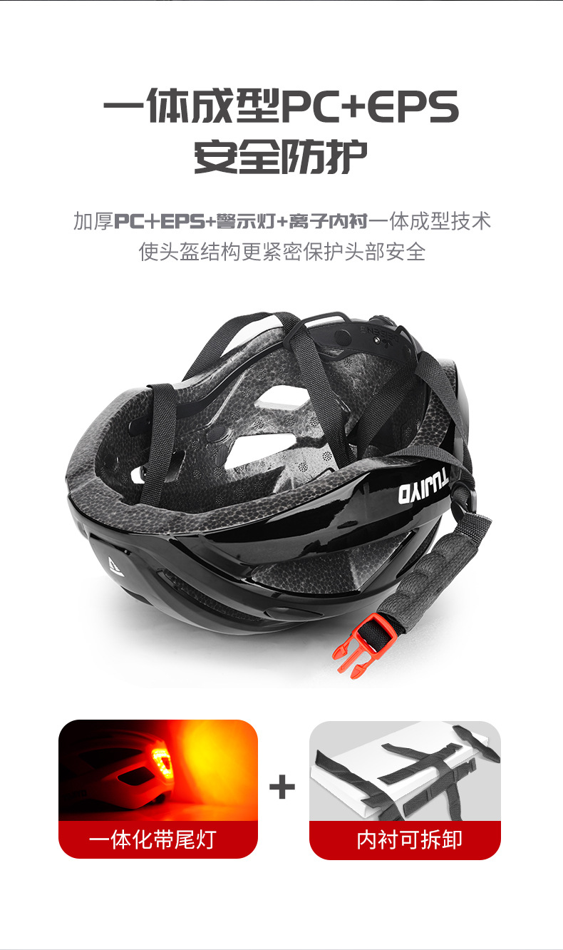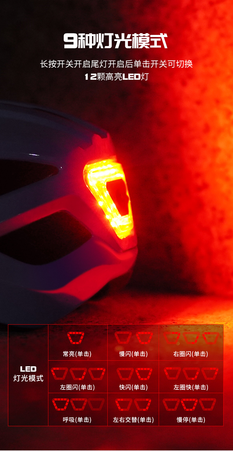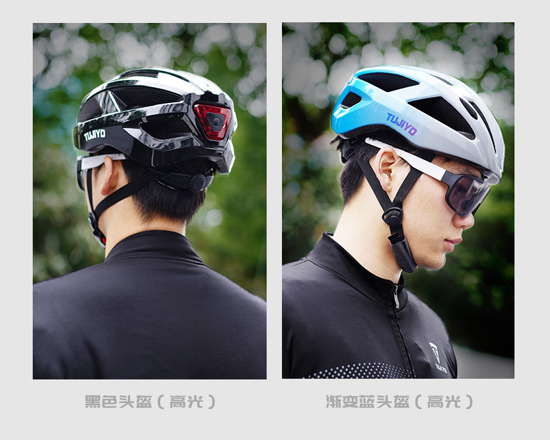 TUJIYD 자전거 오토바이 헬멧 사이클링 벨트 테일 라이트 충전 발광 산악 도로 자전거 장비 남성용