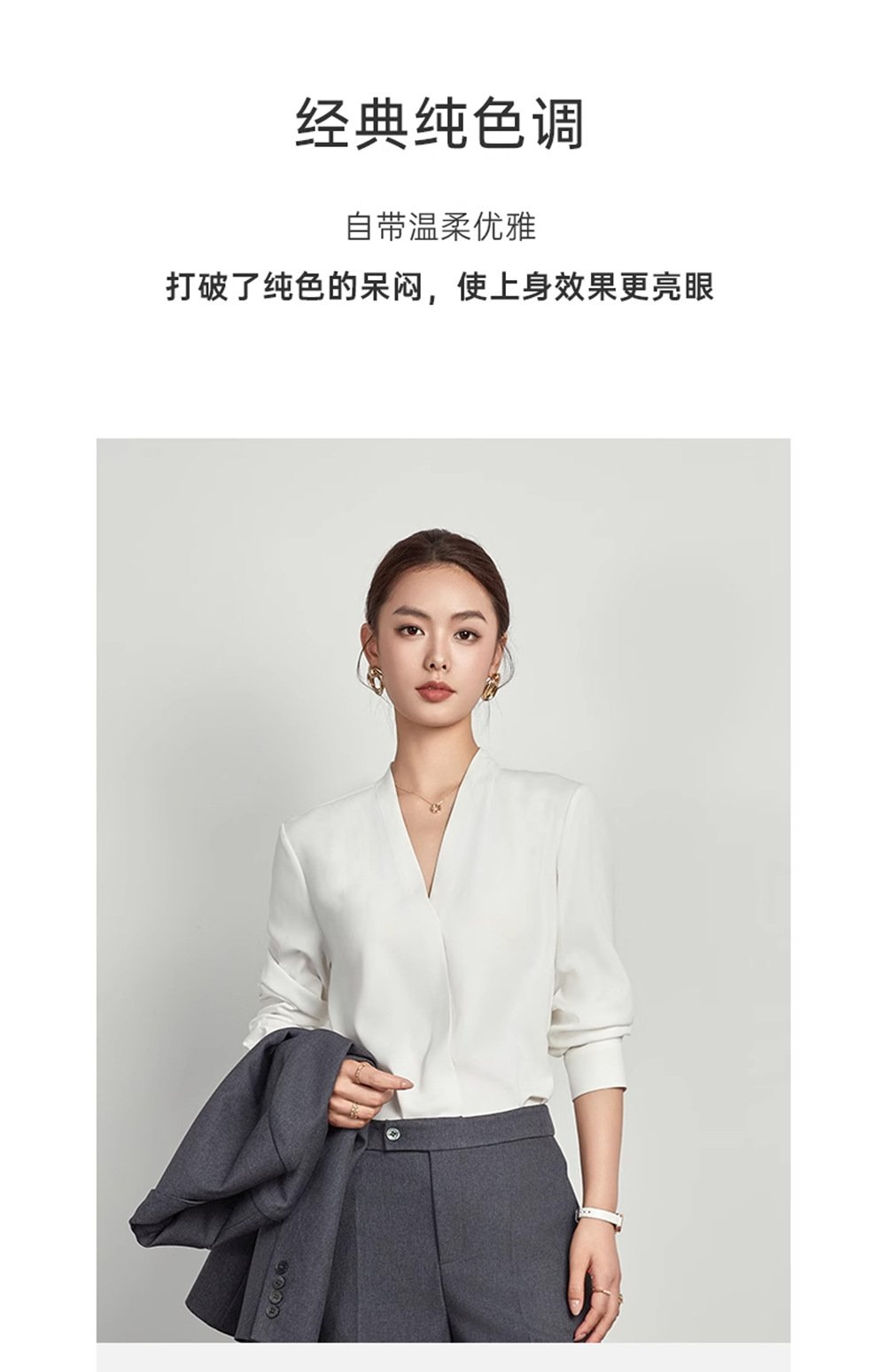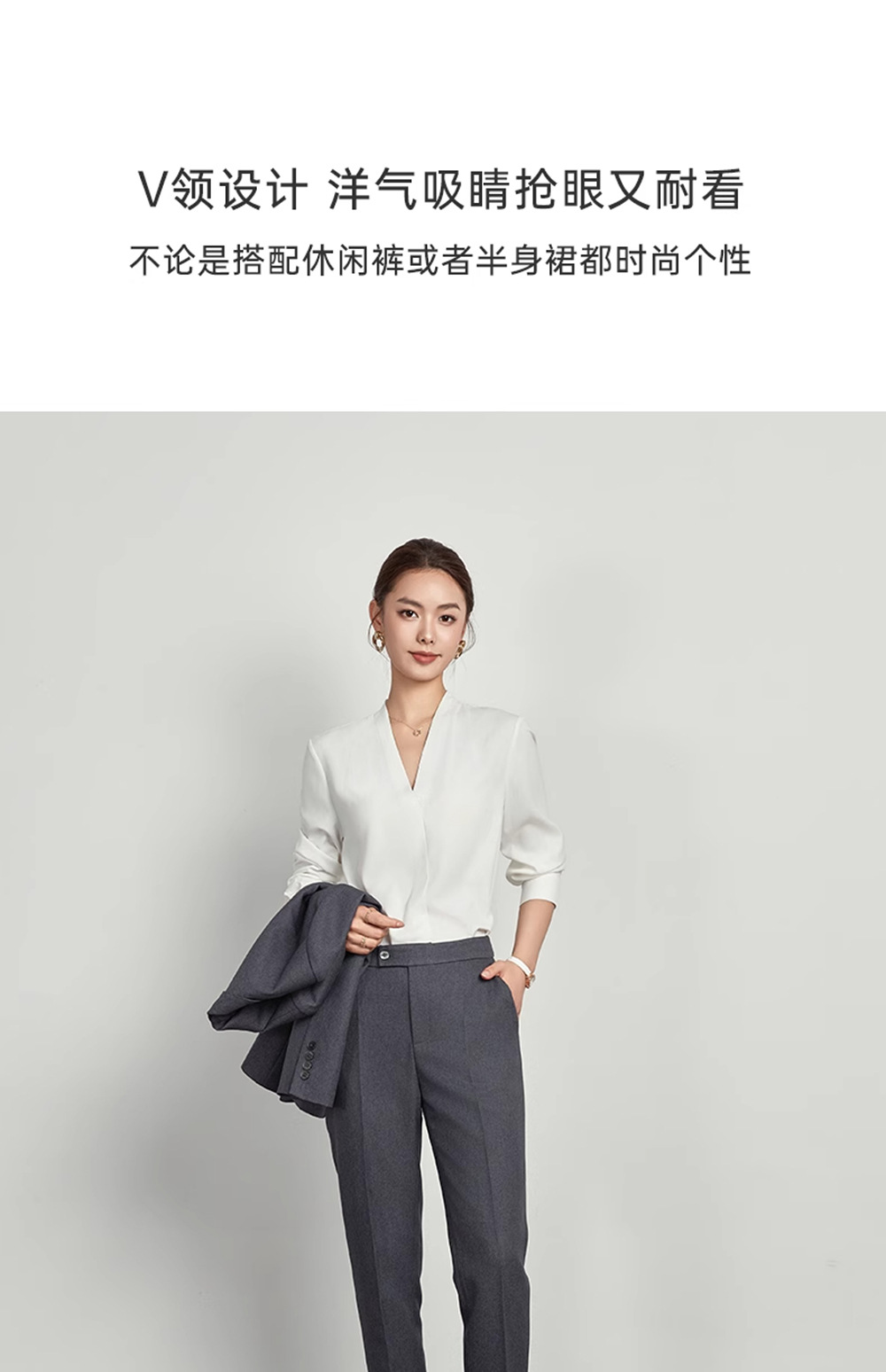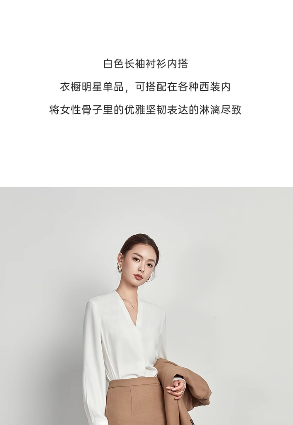 [불투명] 두껍게 쉬폰 긴팔 셔츠 여성 OL 기질 올매치 통근 사업 브이넥 이너 셔츠 착용