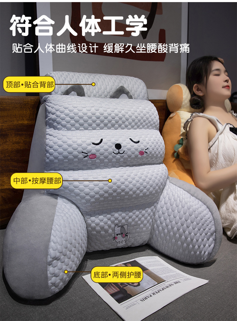 아이스 두두 침대 옆 쿠션 허리 보호 베개 휴대 전화 기숙사 학생 목 보호 허리 베개 재생 대형 등받이 소파 침대