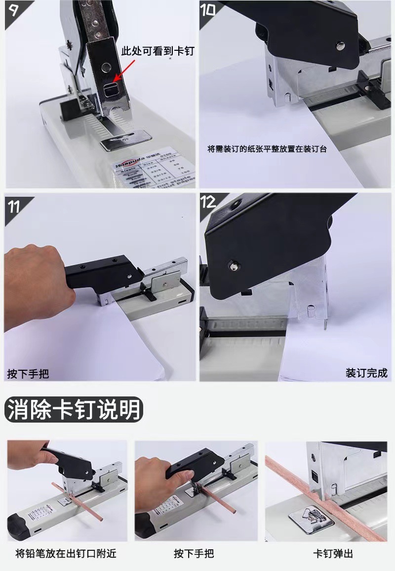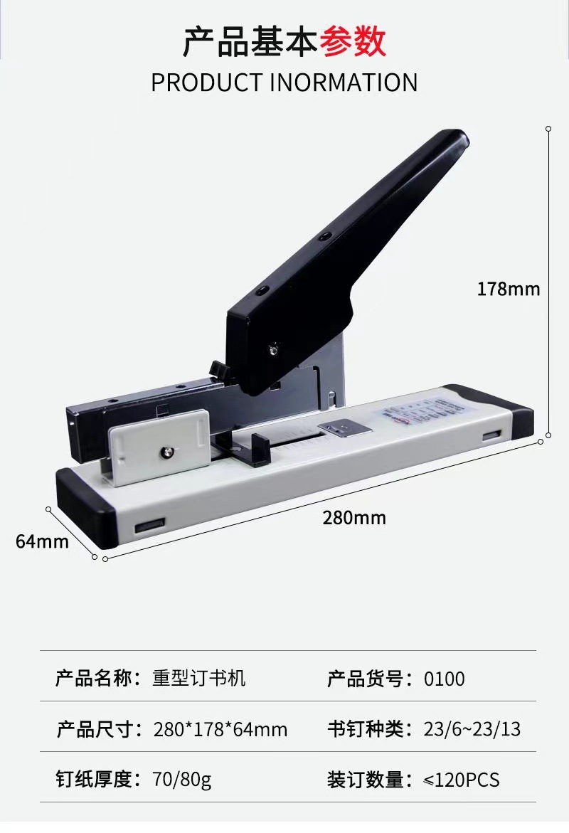 Huapuda 0100 무거운 스테이플러 사무실 노동 절약 큰 120 페이지 바인딩 머신 바우처 패브릭 유니버설