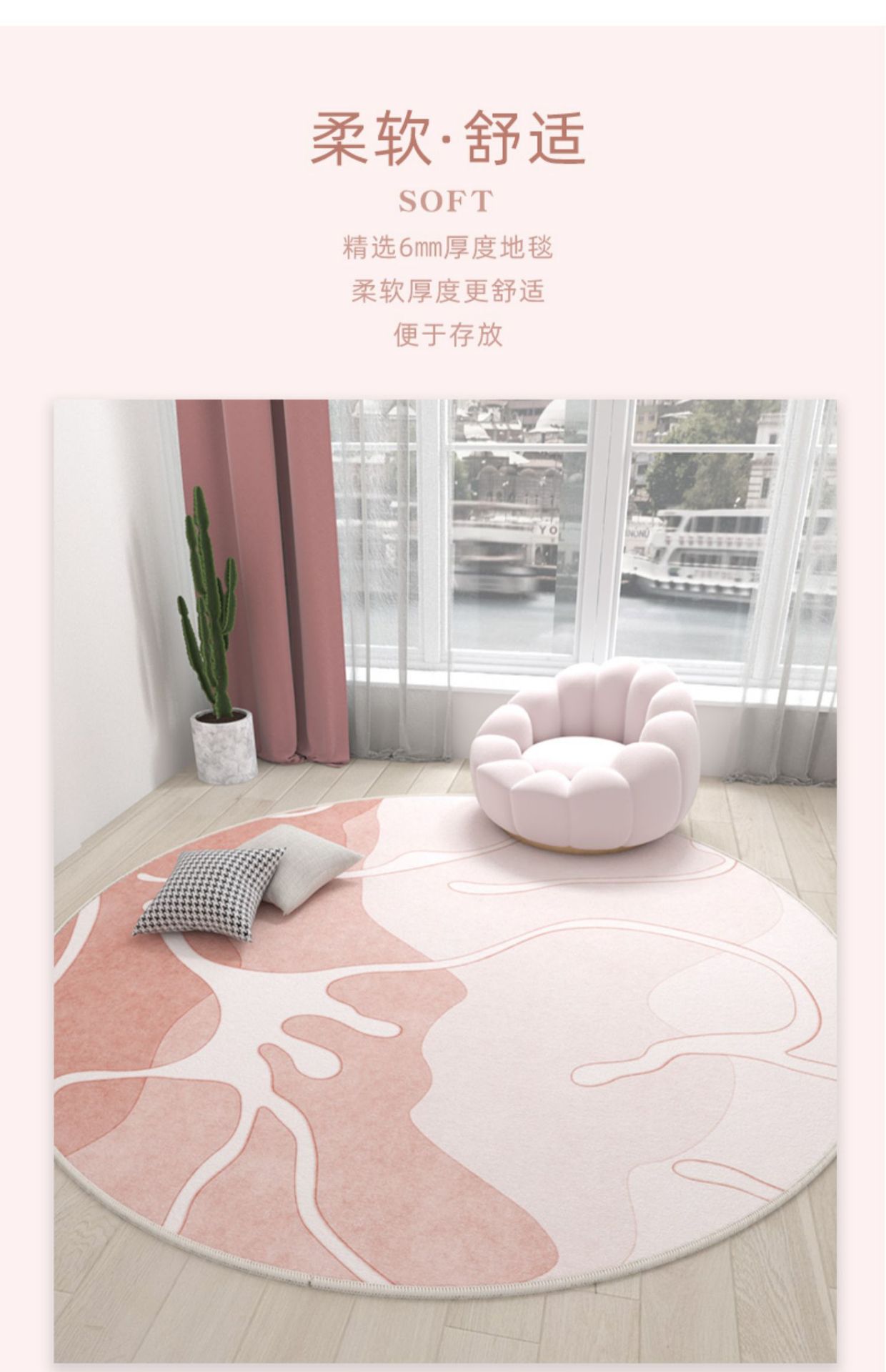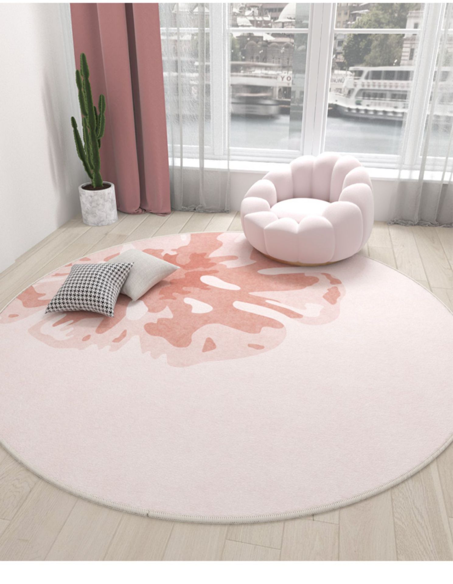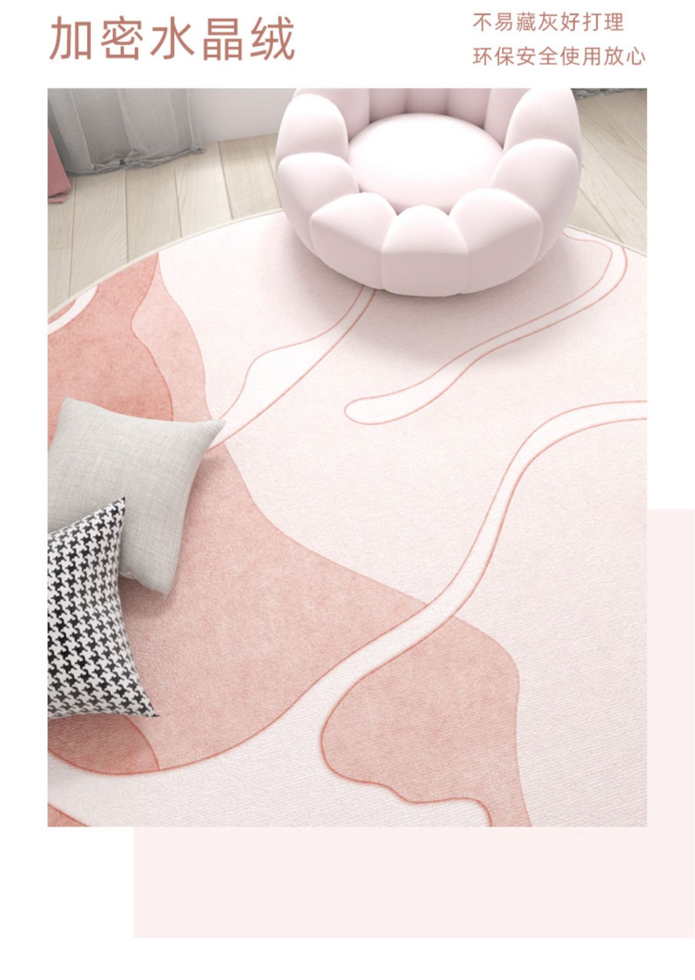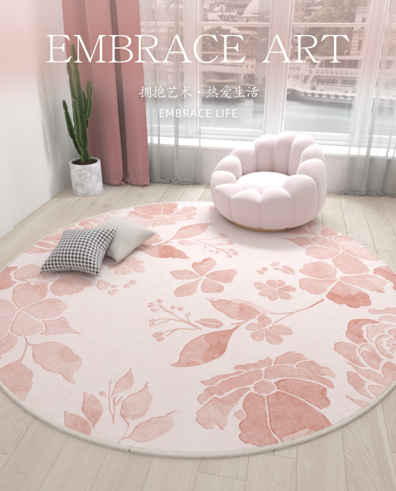 Ins 스타일 라운드 카펫 핑크 소녀의 심장 침실 침실 침실 컴퓨터 의자 회전 의자 드레싱 테이블 미끄럼 방지 매트
