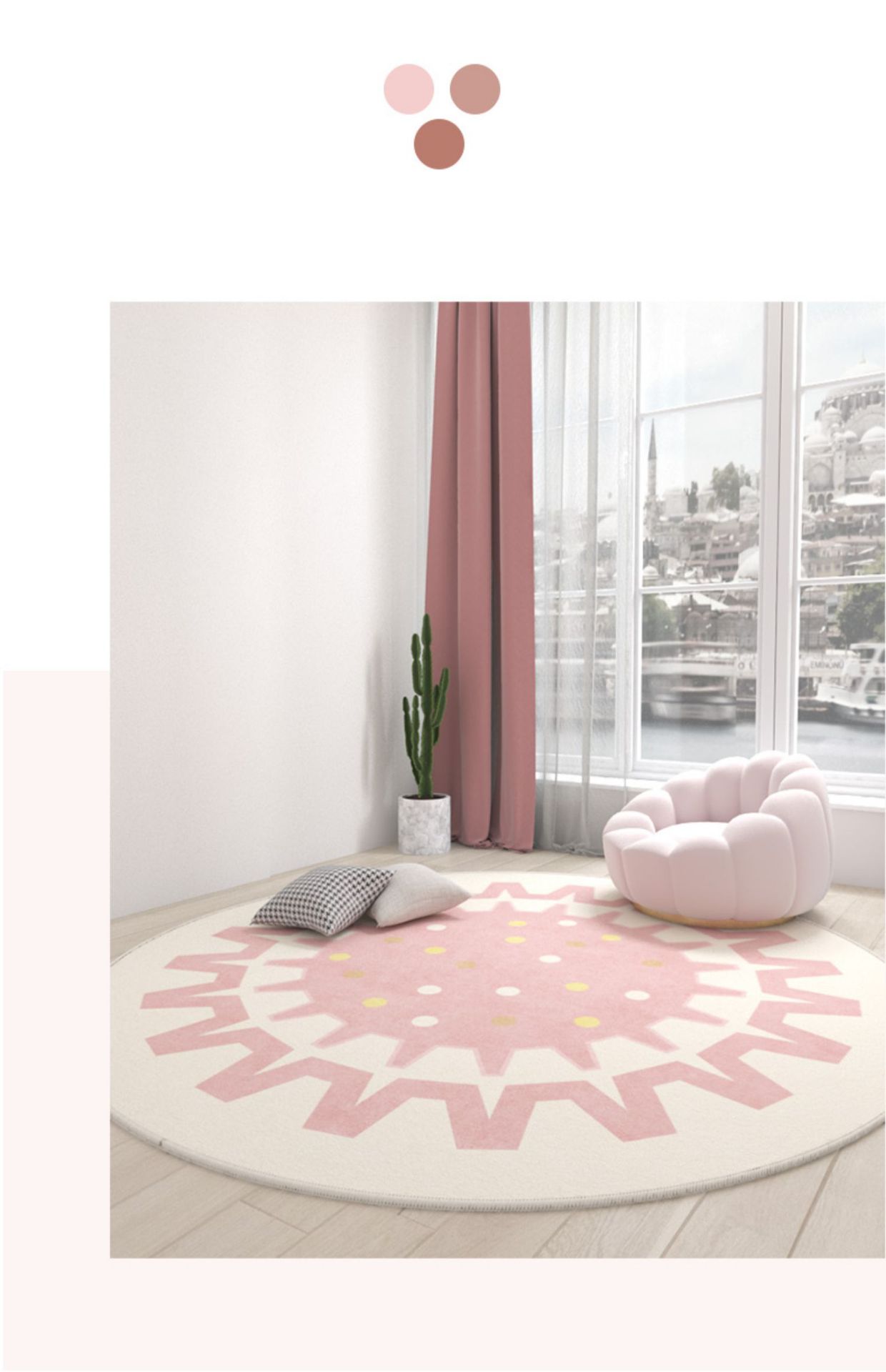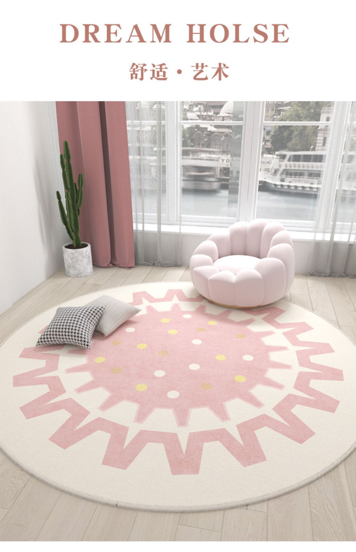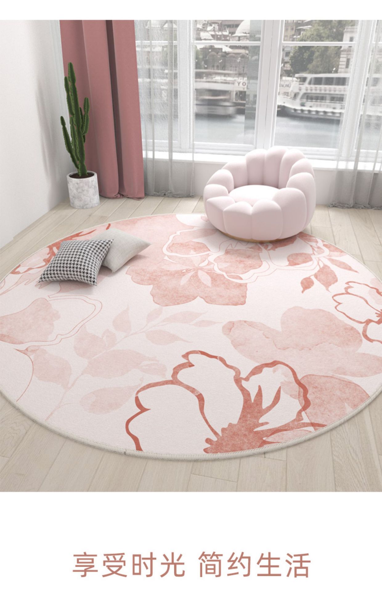Ins 스타일 라운드 카펫 핑크 소녀의 심장 침실 침실 침실 컴퓨터 의자 회전 의자 드레싱 테이블 미끄럼 방지 매트