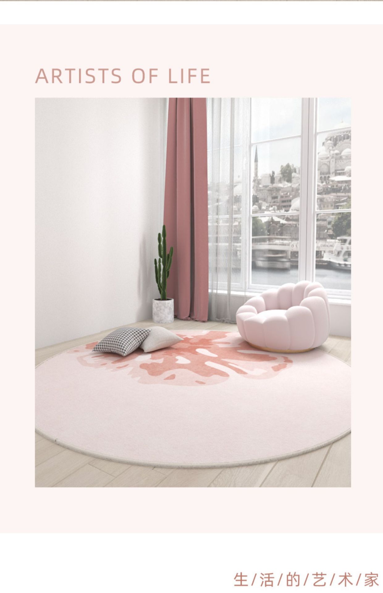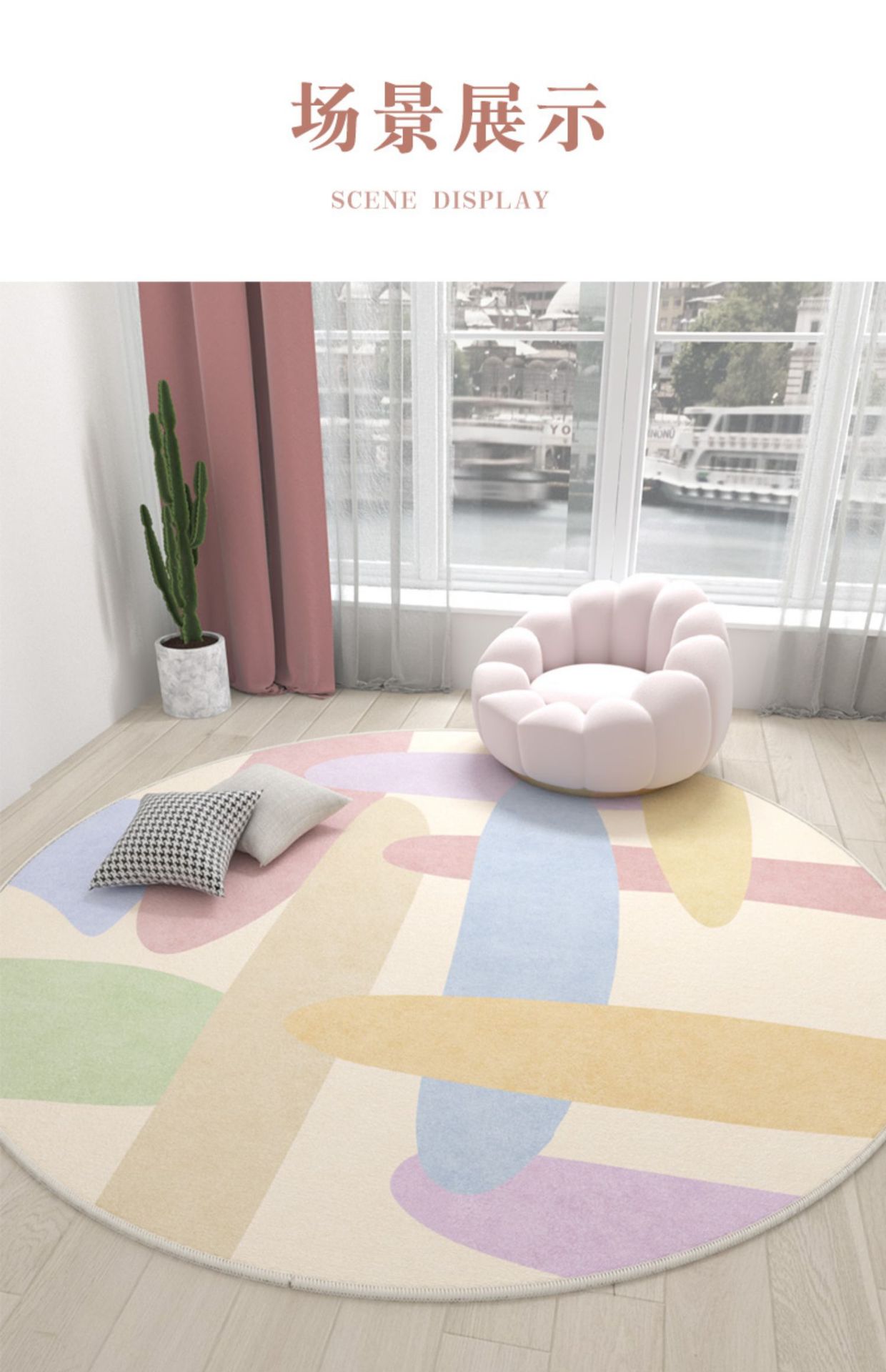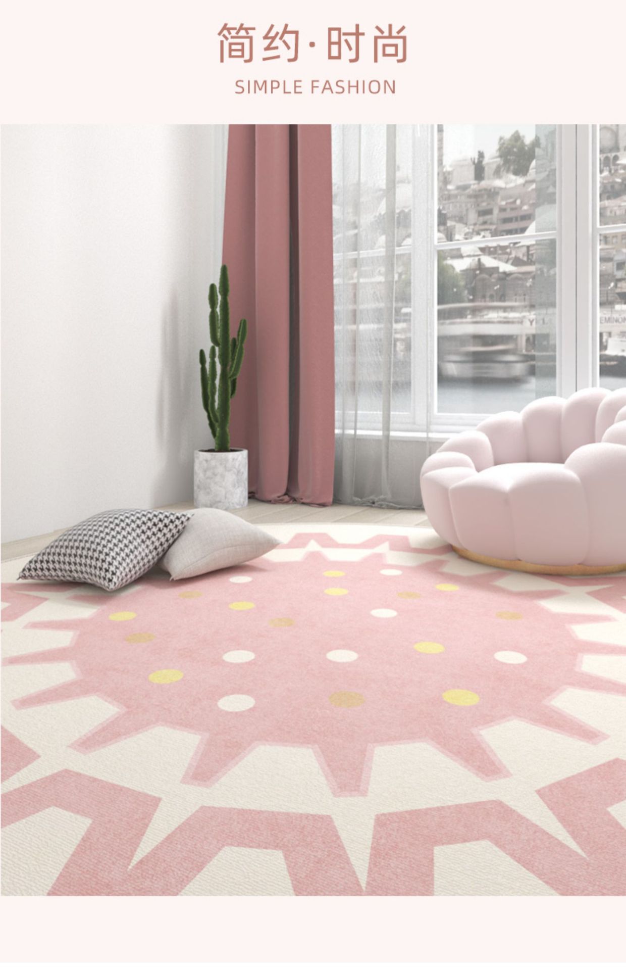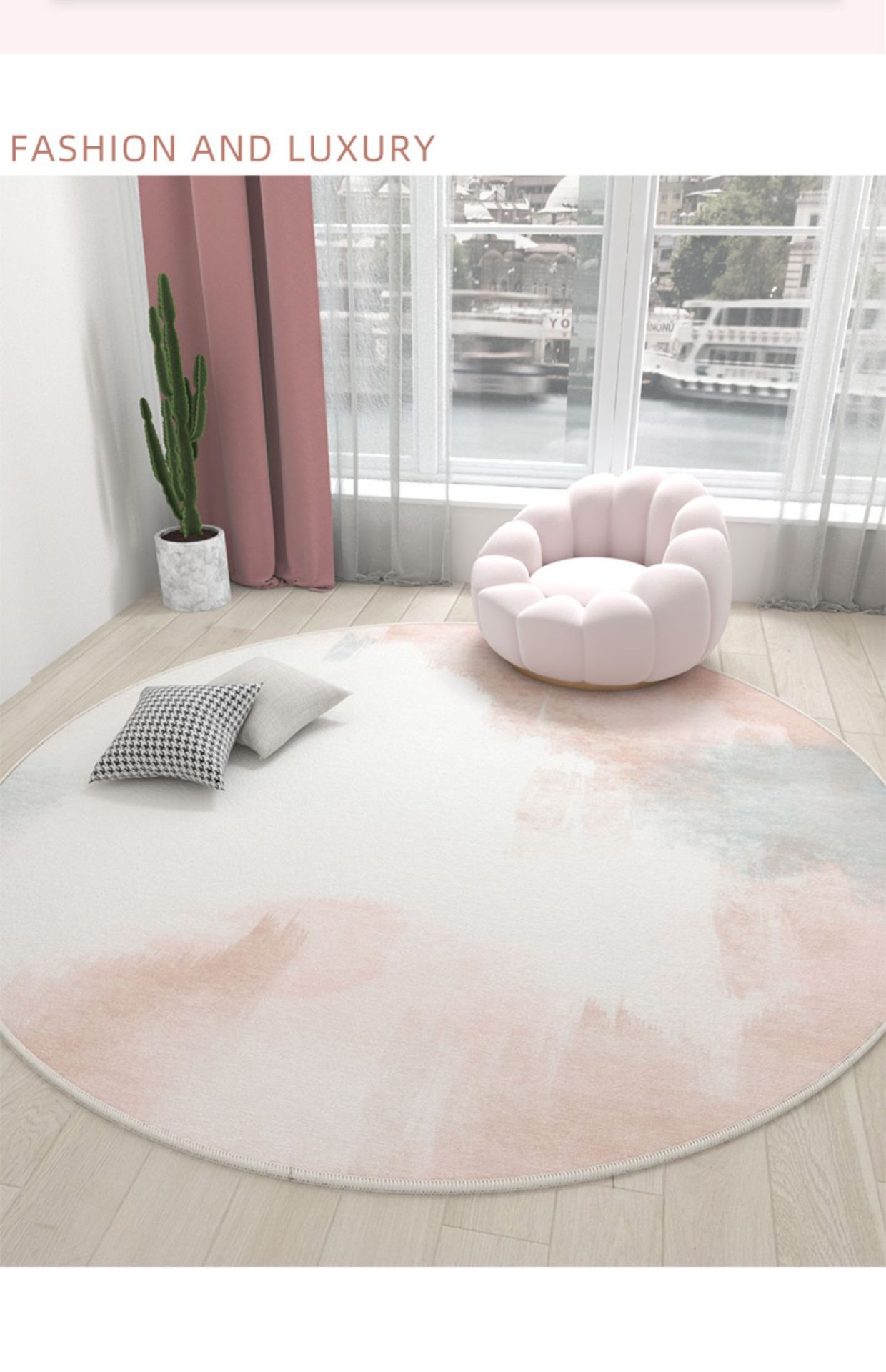Ins 스타일 라운드 카펫 핑크 소녀의 심장 침실 침실 침실 컴퓨터 의자 회전 의자 드레싱 테이블 미끄럼 방지 매트