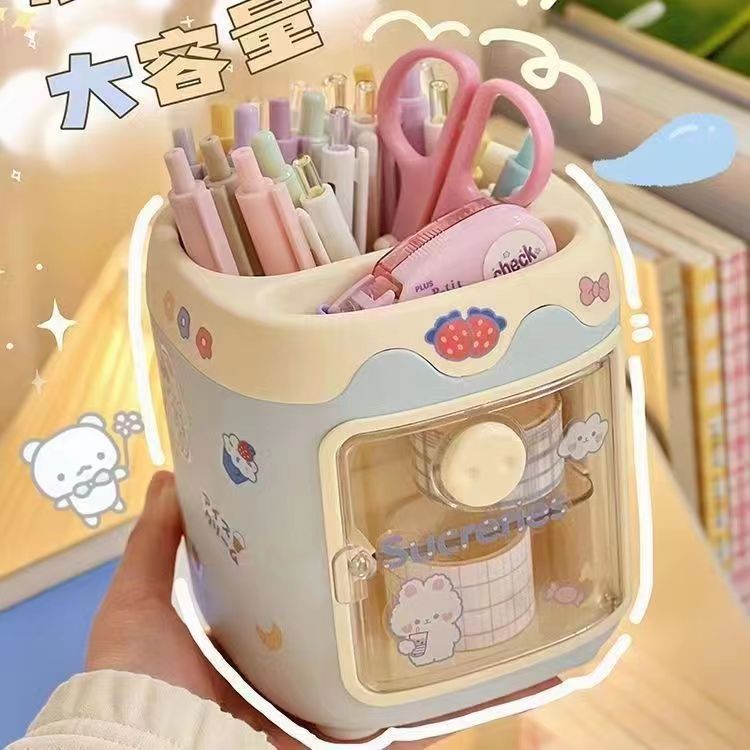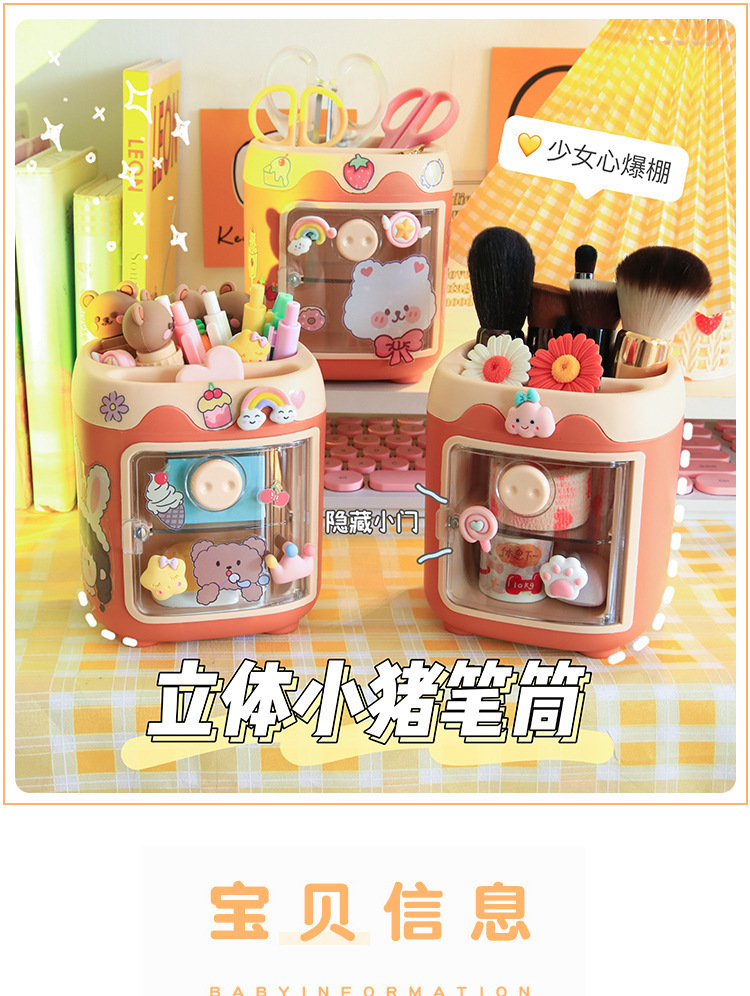 만화 돼지 펜 홀더 높은 색상 값 플라스틱 귀여운 저장 상자 펜 버킷 사무실 용품 어린이 diy 선물