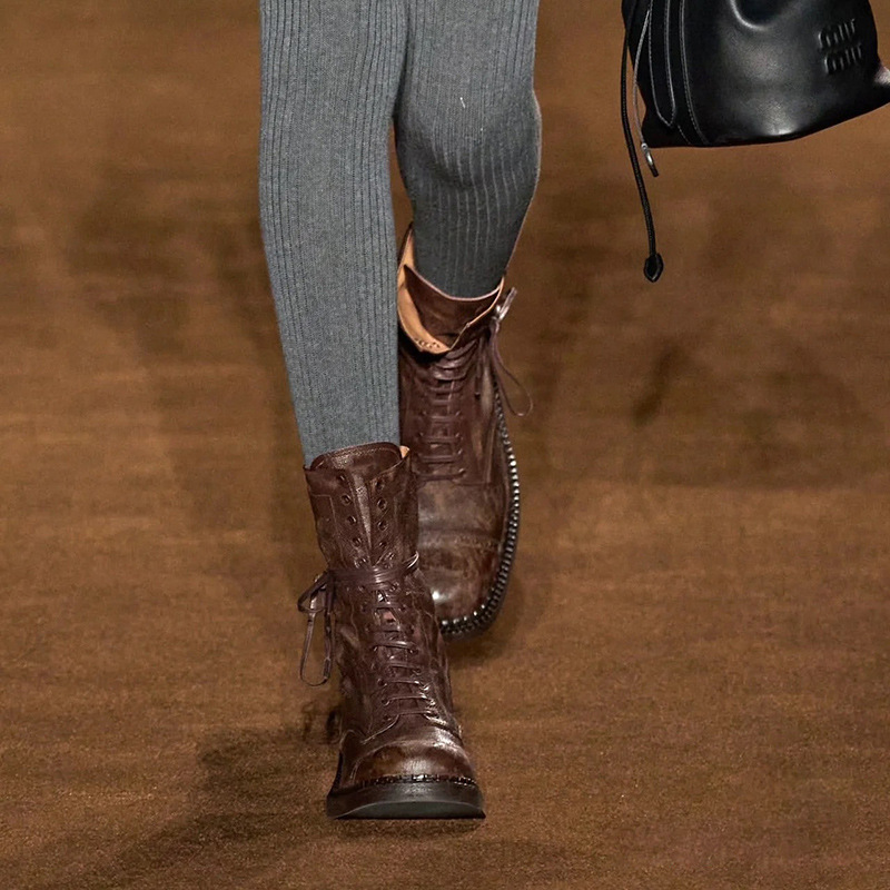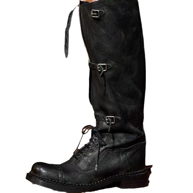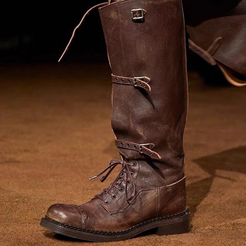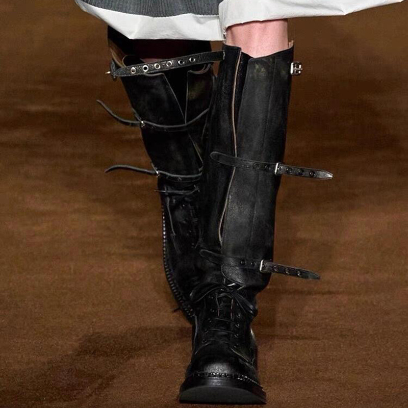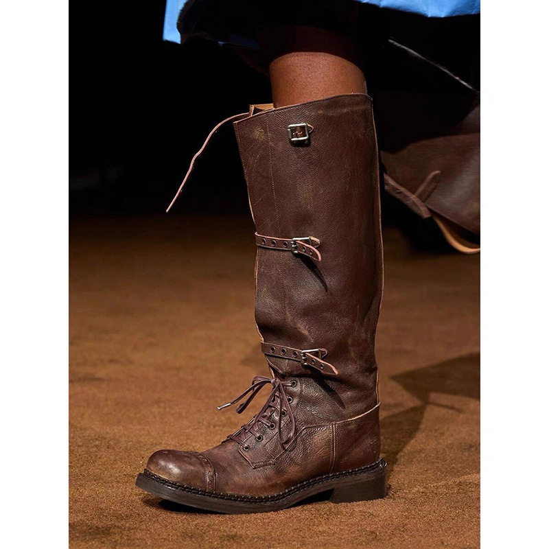 재고 있음 레트로 수제 패션 부츠 여성용 2025 신상 빈티지 스타일 기사 부츠 벨트 버클 롱부츠 해외 직구
