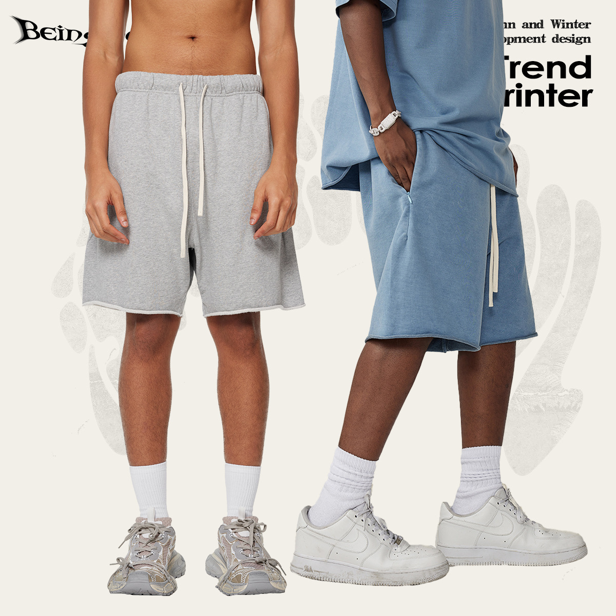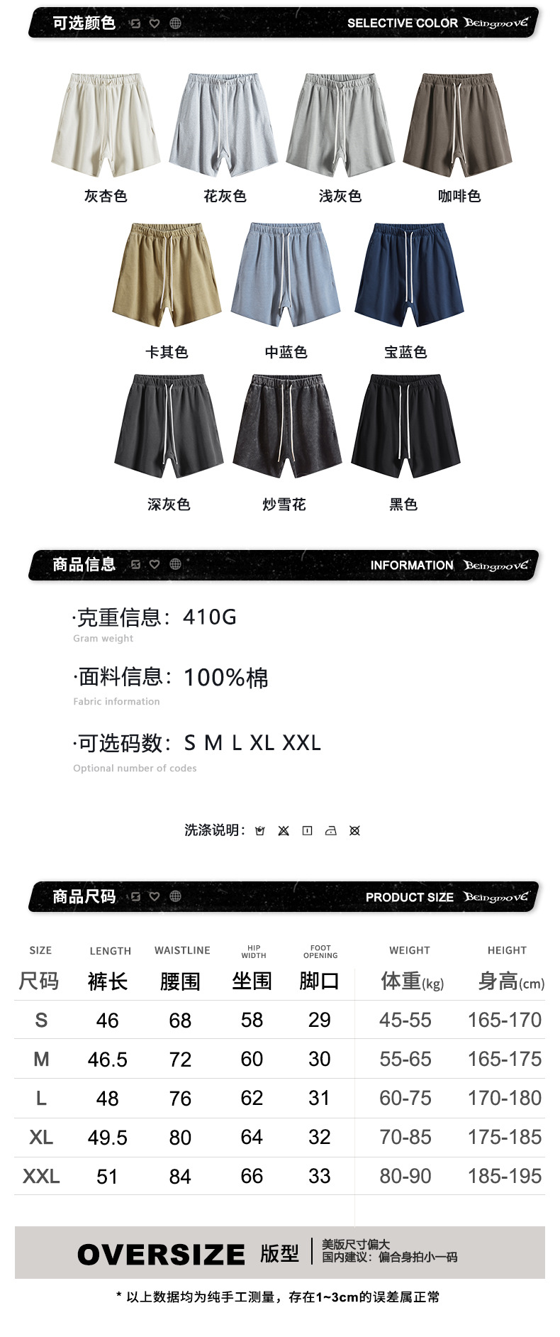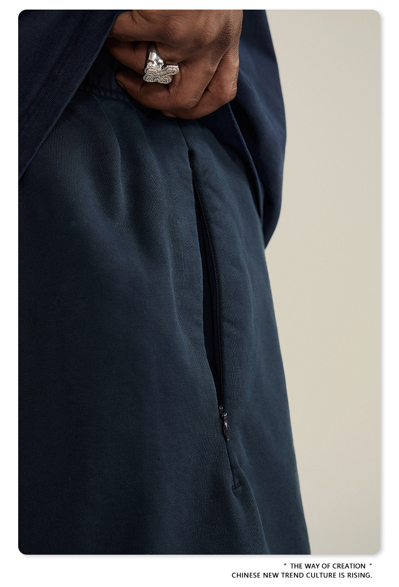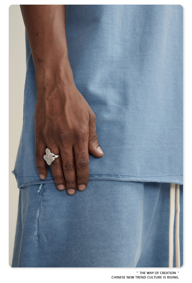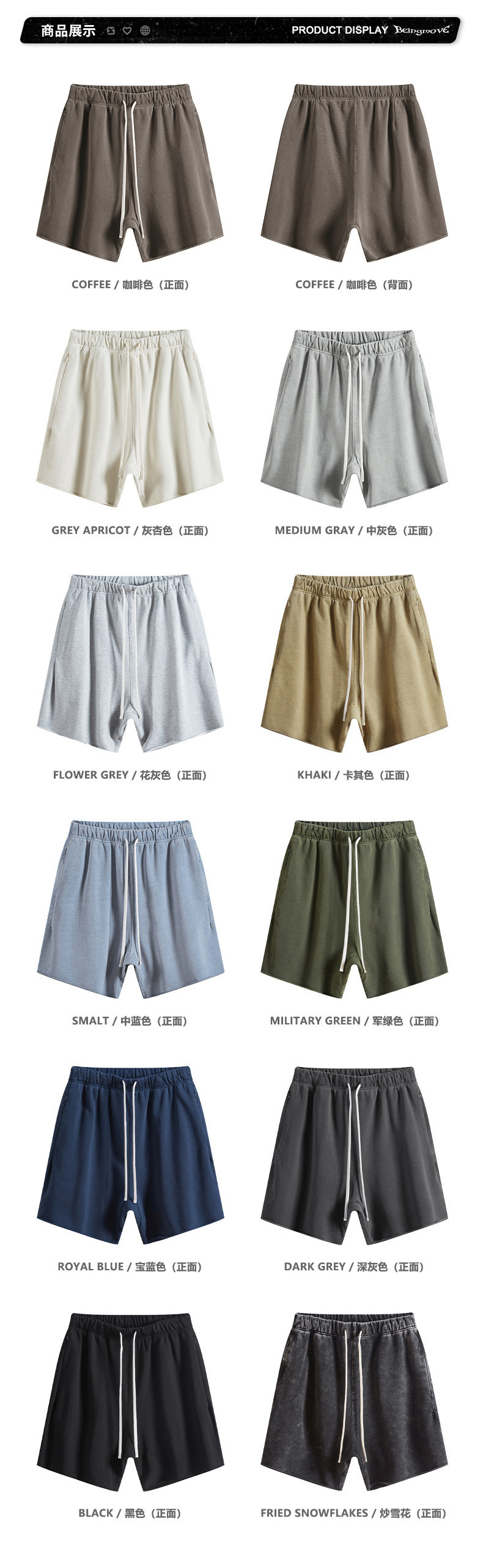 남성용 여름 복고풍 스타일 스포츠 반바지 410G 피트니스 트레이닝 솔리드 컬러 루즈 에지 헤비 워시 디스트레스드 5부 바지