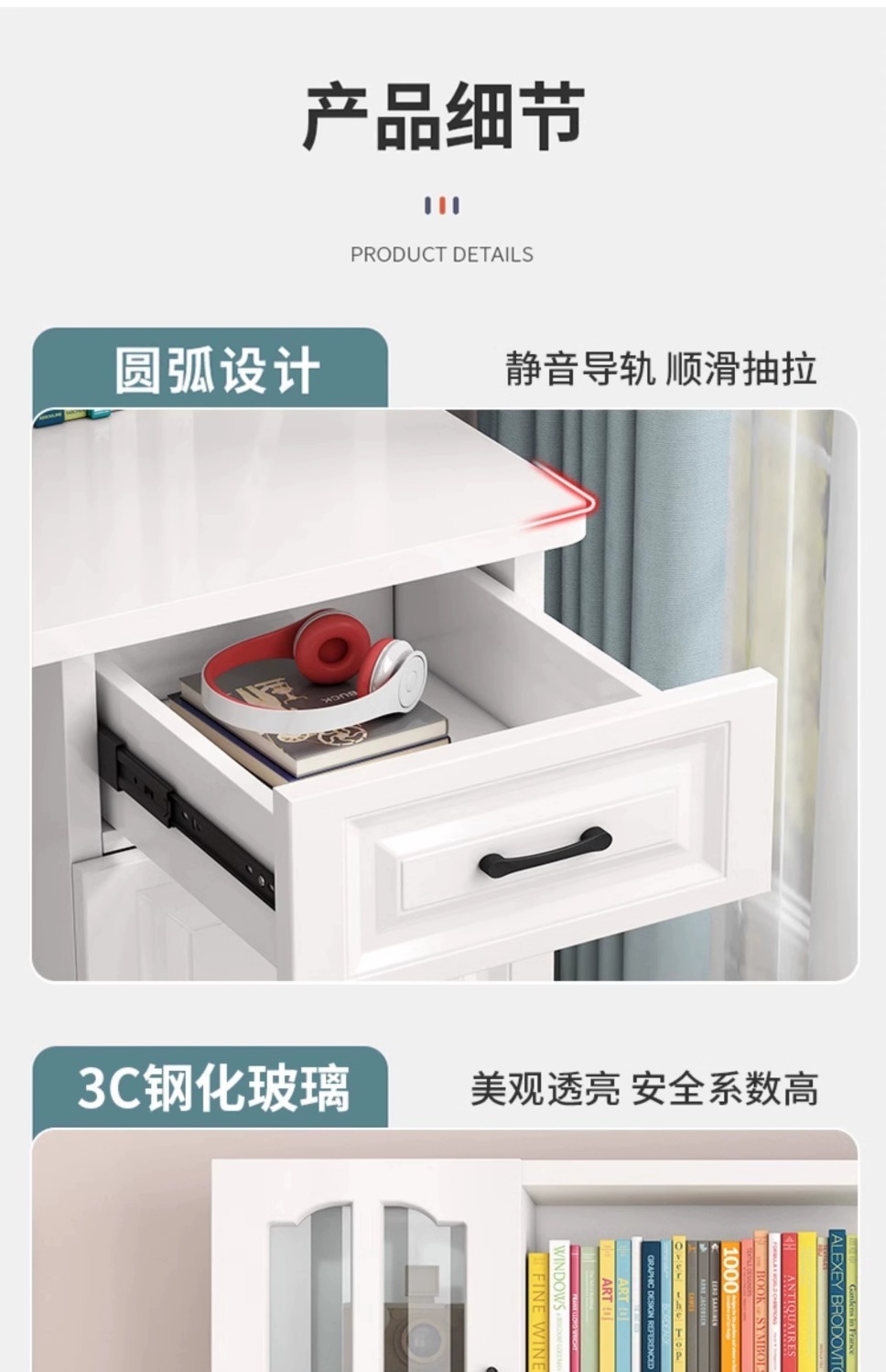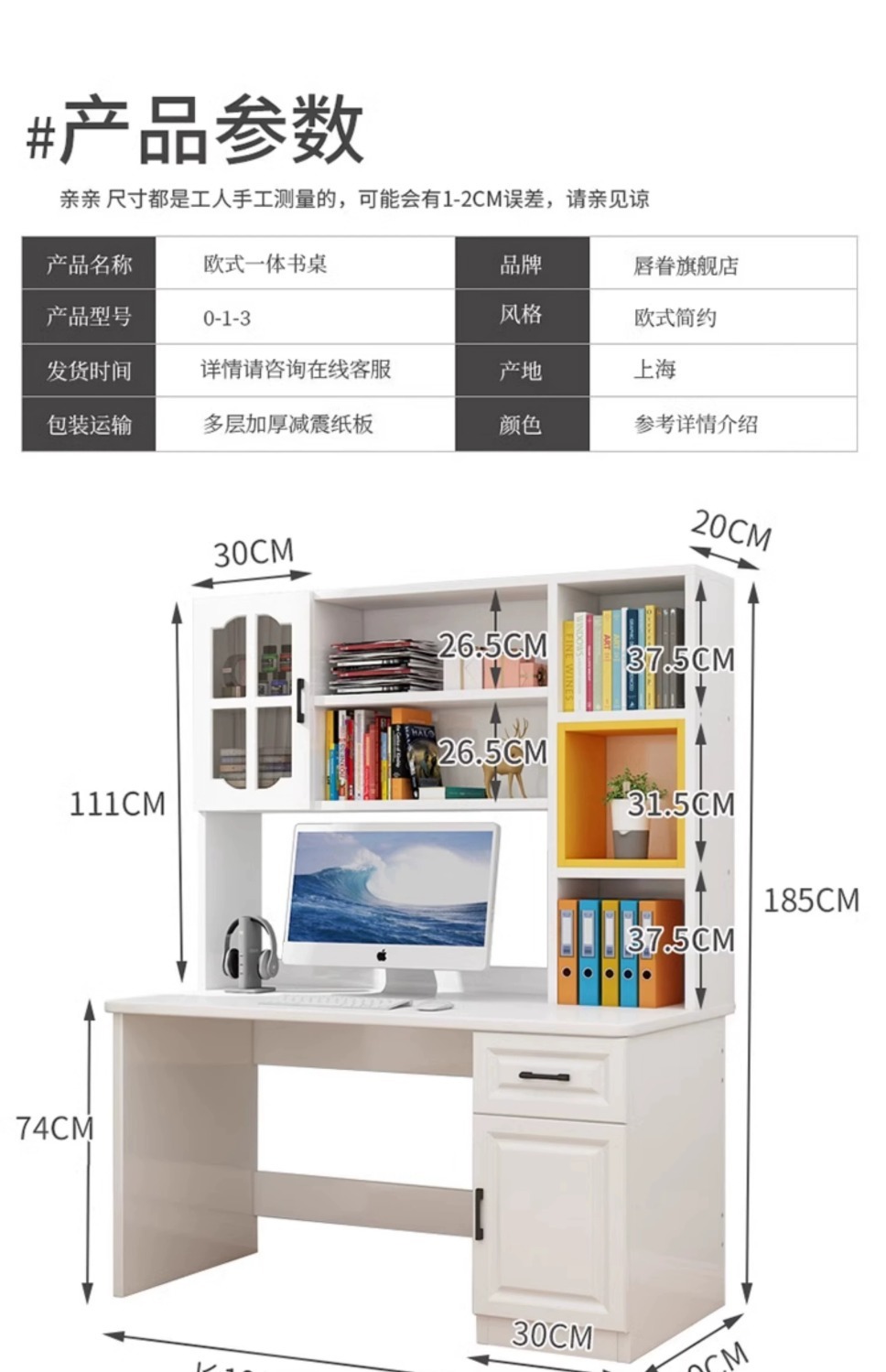 책장이 포함된 80cm 책상 [유리문 제외]
