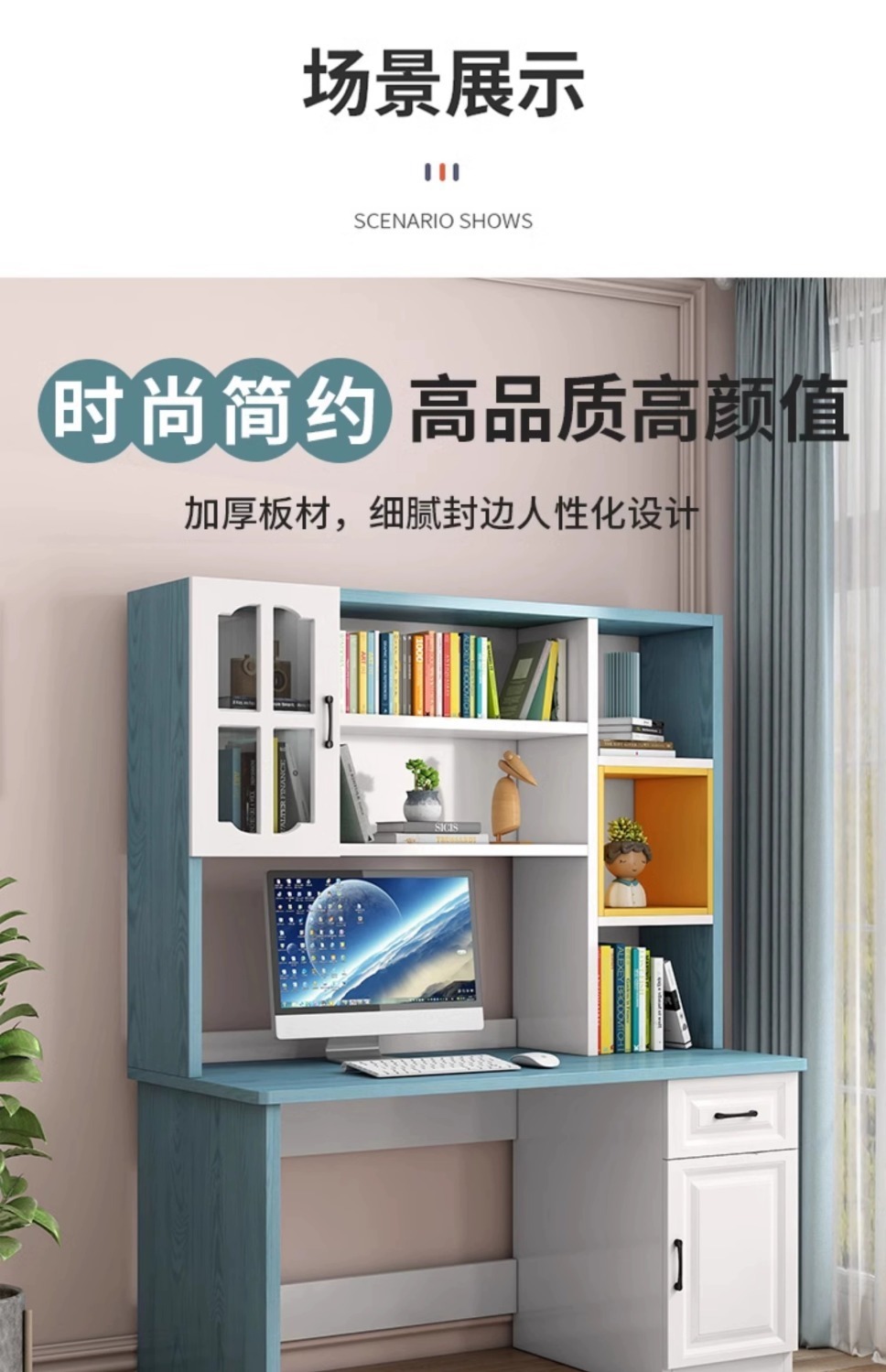 책상 책장 통합 테이블 학생 가정용 간단한 컴퓨터 책상 침실 조합 책장 어린이 글쓰기 학습 테이블