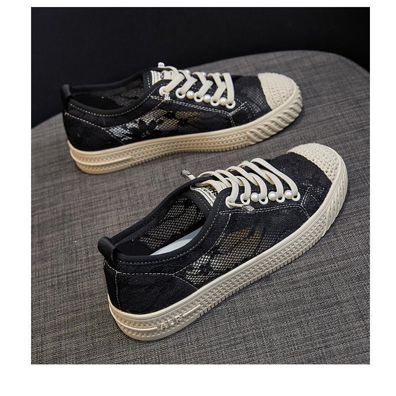 2025년 여름 여성을 위한 어부 신발 새로운 다용도 여름 통기성 메쉬 플랫 바닥 작은 향기로운 캔버스 게으른 슬립온