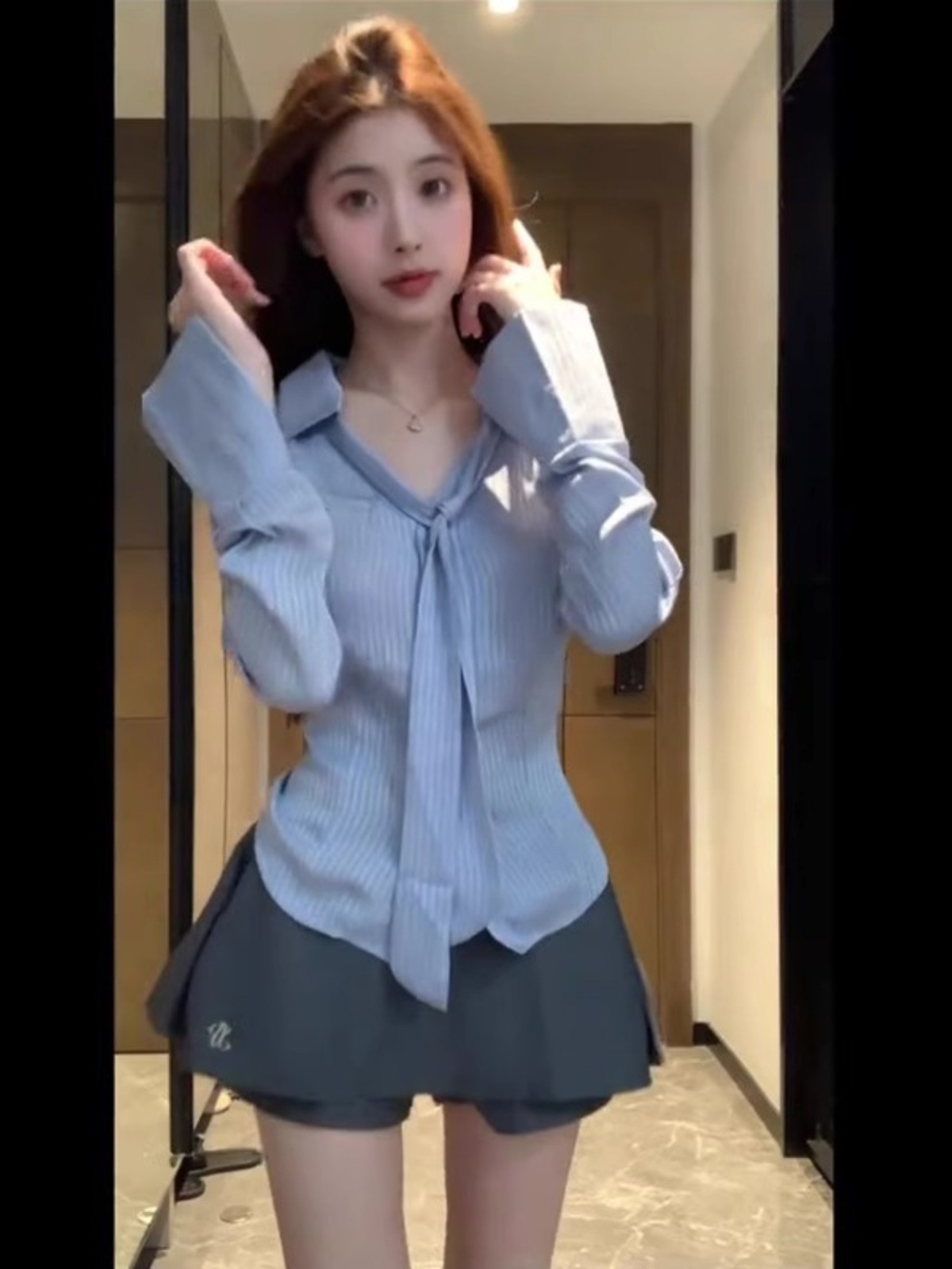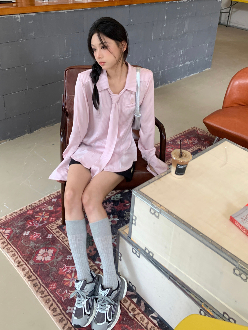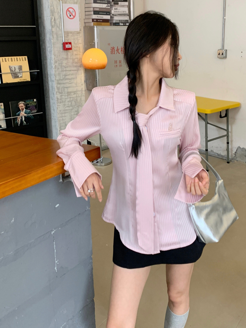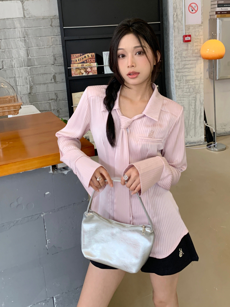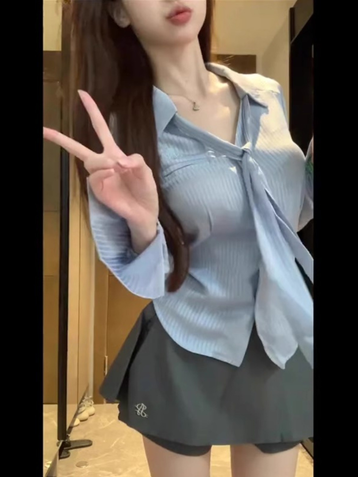 올해 인기있는 아름다운 여성 여름 소금 라인 라이트 요리 스타일 패션 스트라이프 셔츠 긴소매 여성용 넥타이 탑 태양 보호 캐주얼