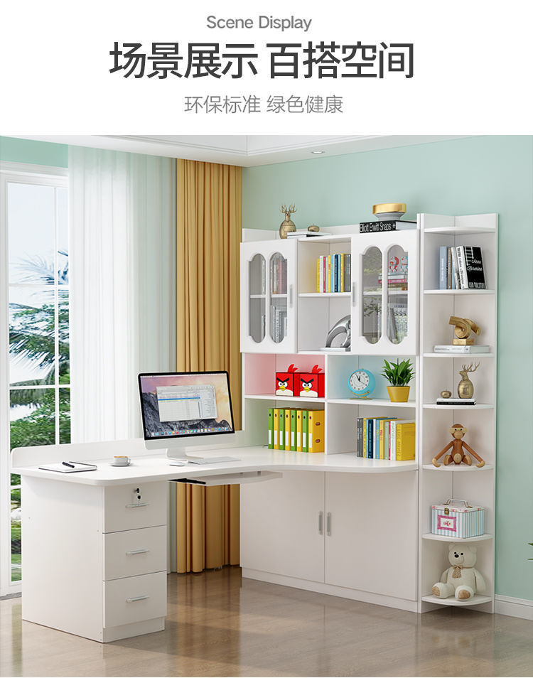 솔리드 우드 데스크 책장 조합 코너 컴퓨터 데스크 데스크탑 책장 통합 어린이 침실 코너 학습 책상