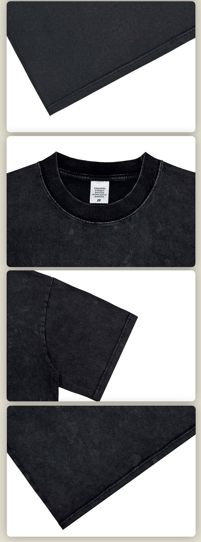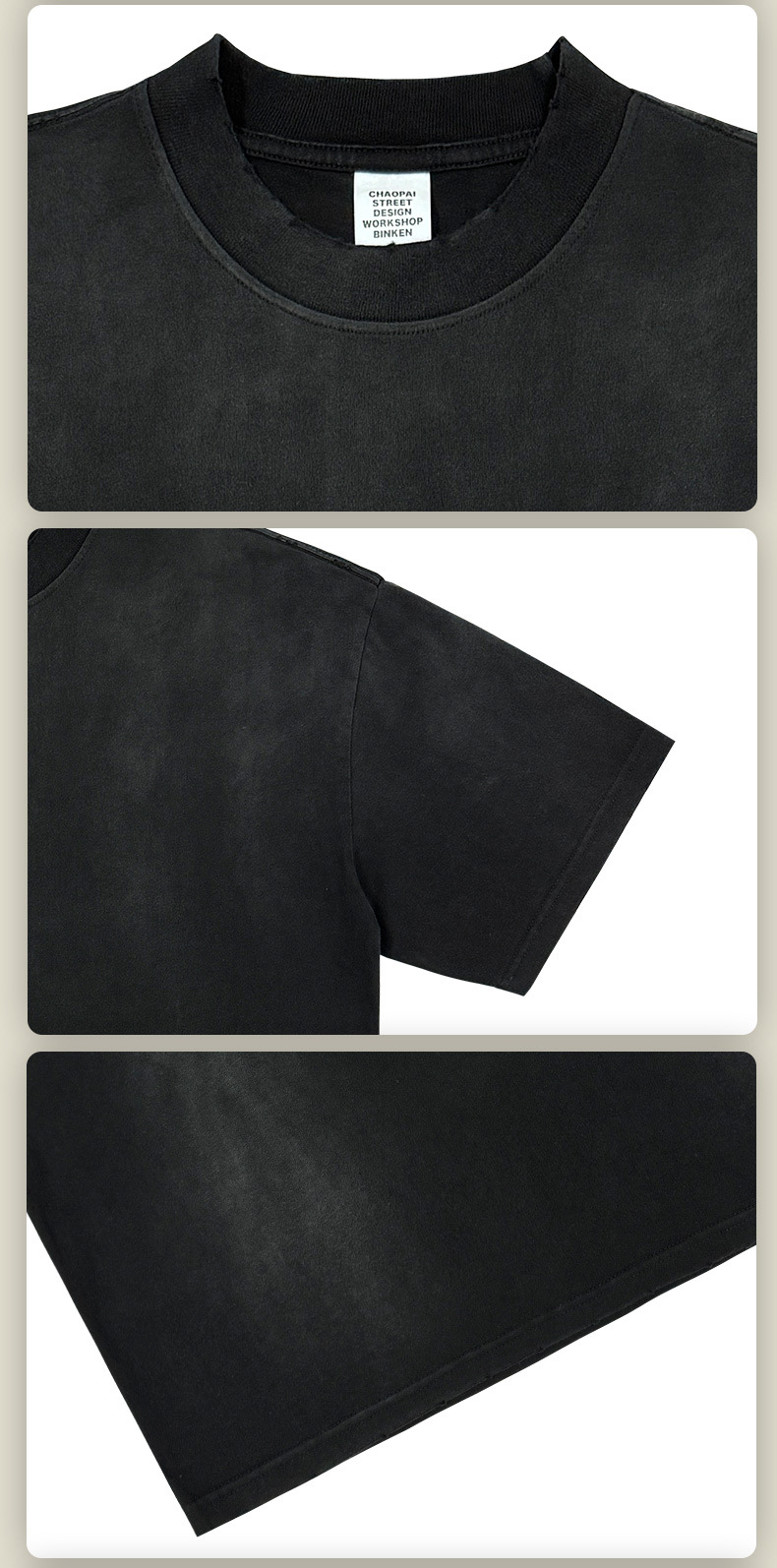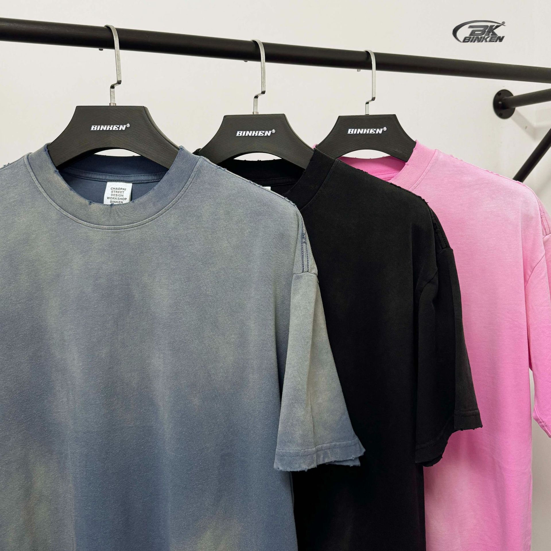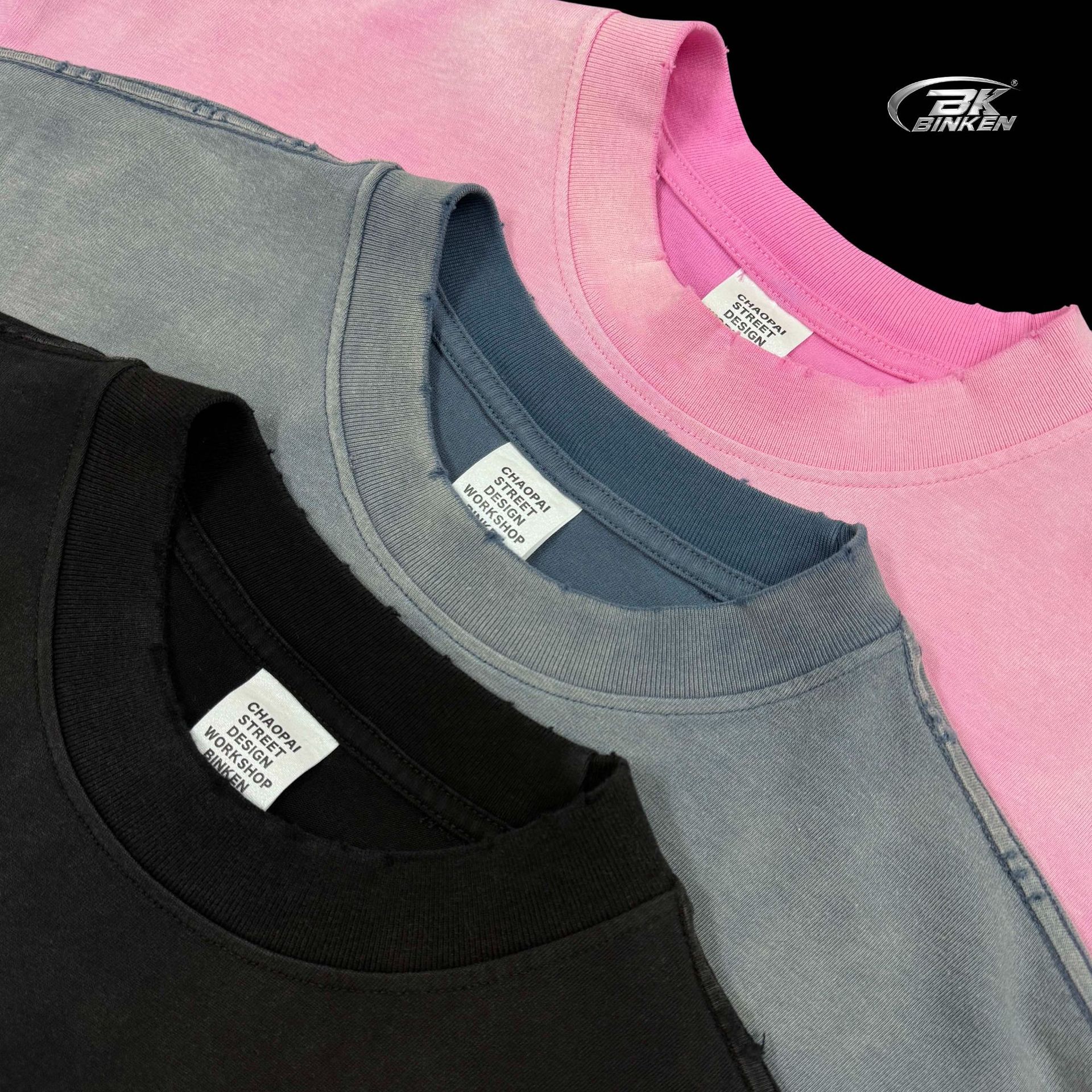 BK 남성복 270g 아메리칸 스타일 빈티지 워싱 데님 티셔츠 남성용 높은 목 라운드넥 루즈핏 트렌디 브랜드 남성 반팔 티셔츠