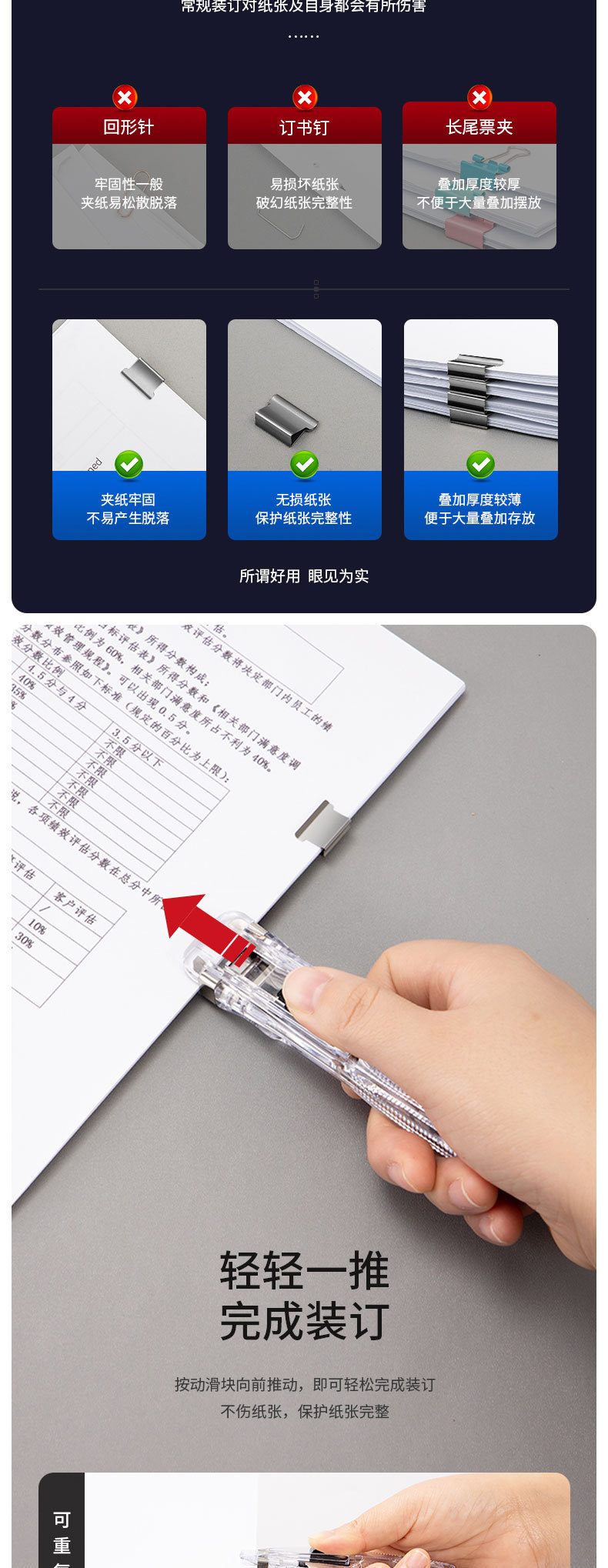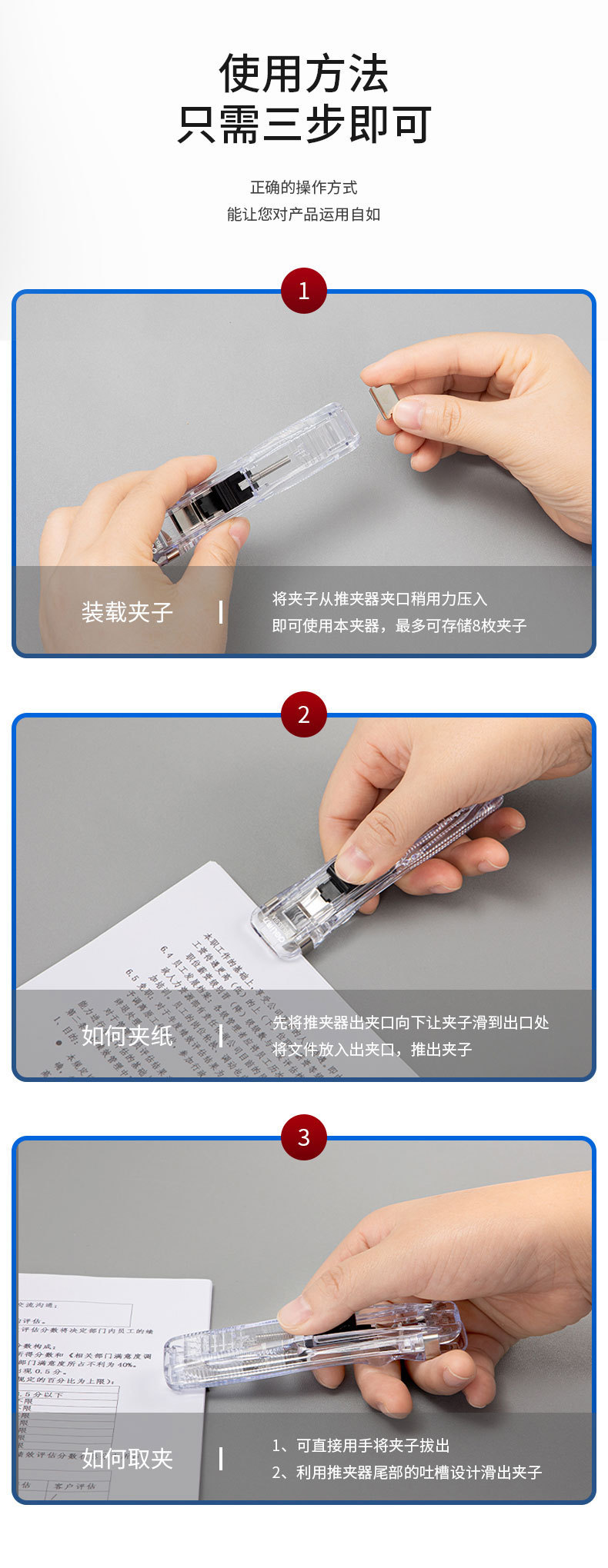 델리 푸셔 파일 작은 클립 문구 고정 테스트 용지 아티팩트 바인딩 금속 네일 빌 종이 푸시 클립
