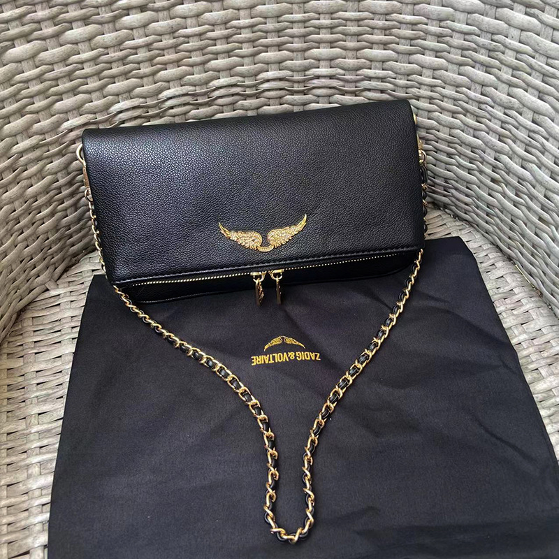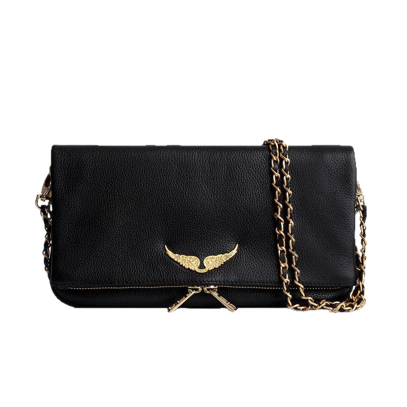 ZV 첫 번째 레이어 소가죽 체인 가방 블랙 숄더백 클러치 백 대각선 가방