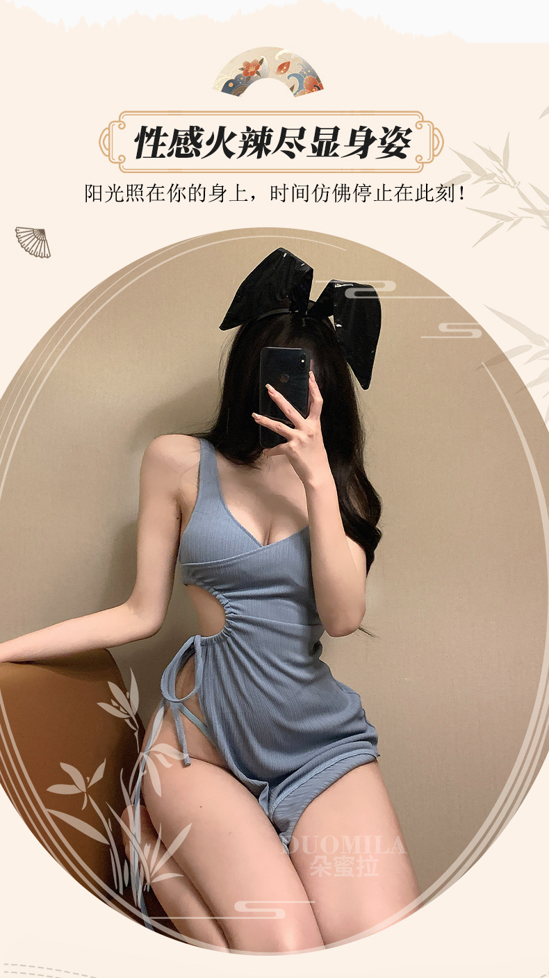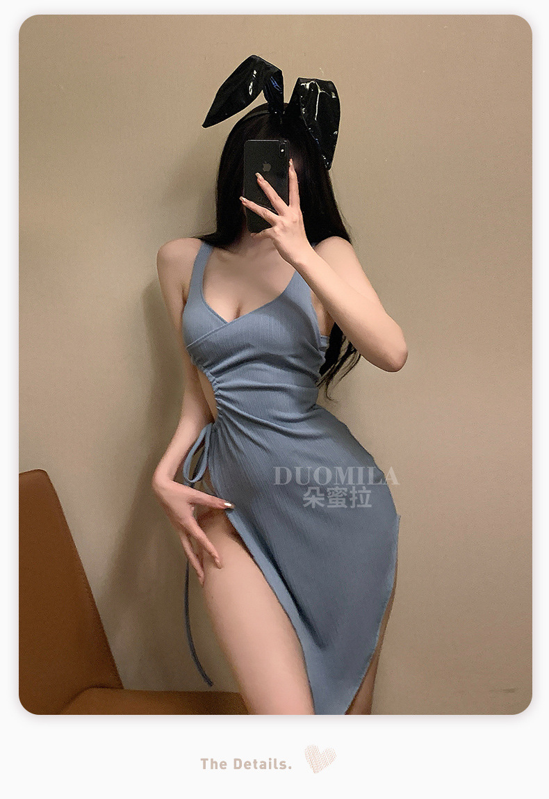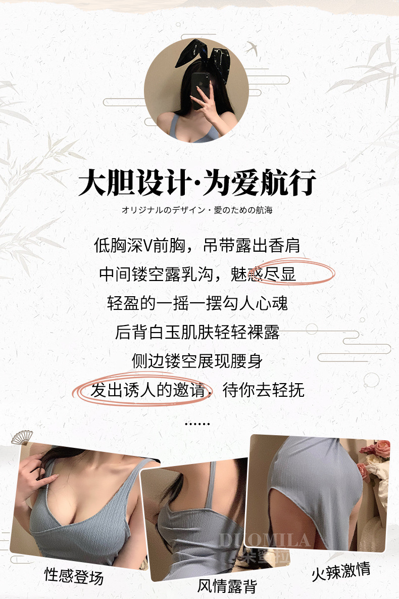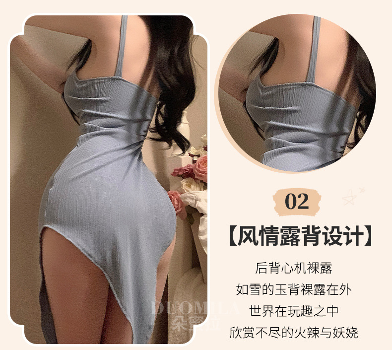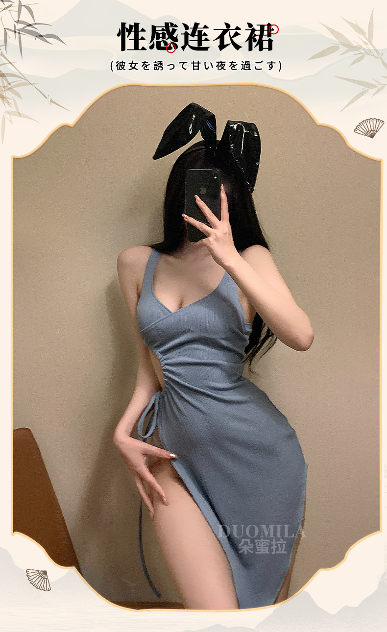 Domila 중공 주름 높은 허리 슬릿 원피스 6562 섹시한 속옷 성인 섹스 섹시 잠옷 F704