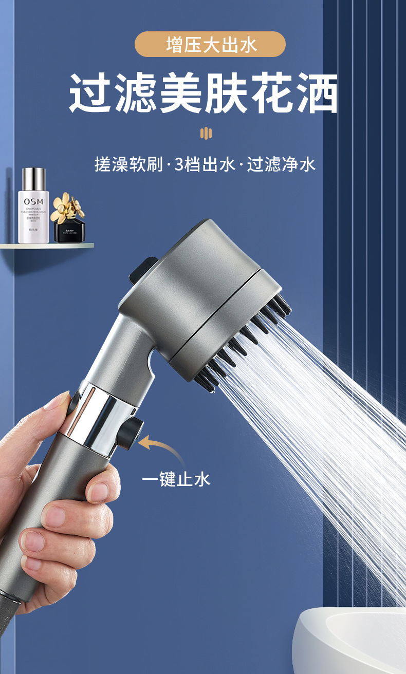착용 스프레이 강한 가압 샤워 세트 컬러 박스형 핸드 샤워 샤워 필터 3 욕실 샤워 헤드