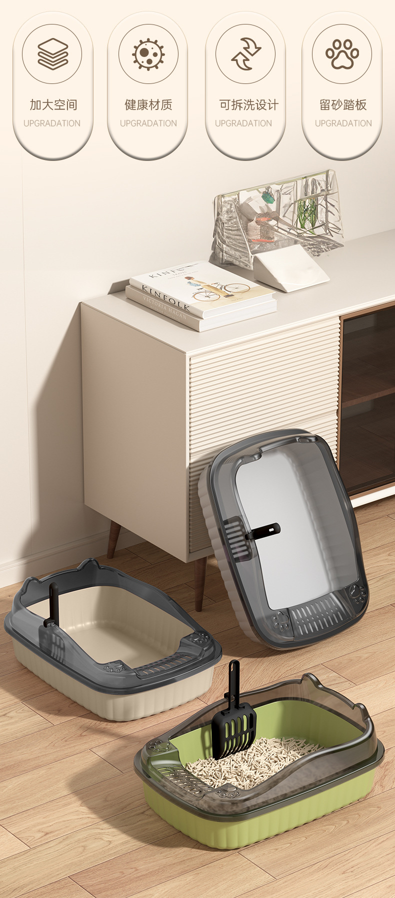 고양이 쓰레기 상자 반 폐쇄 오픈 스플래쉬 방지 고양이 쓰레기 상자 대형 고양이 화장실 스몰 사이즈 새끼 고양이 변기 탈취